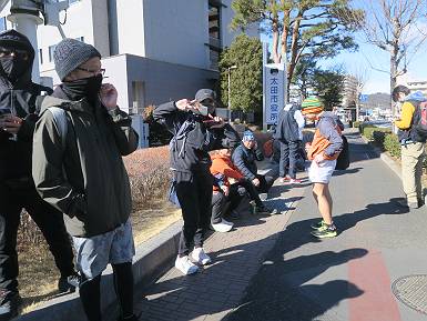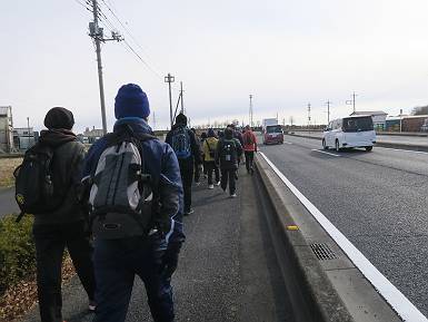 | 山行日 2024年2月8日 晴れ コース 伊勢崎市役所→R462→R354→R407→太田市役所(22km) ぐんま100kmウォーク勝手に練習会参加、今回は伊勢崎市役所から太田市役所まで約22km。集合時間は9時、9:30スタート、手続きを済ませると、風花が舞ってきたがスタート時には止んでいた。本日の参加者は65人とか。 太田駅8:13の列車で向かう 新伊勢崎駅から約1km先の伊勢崎市役所へ 手続きを済ませ、記念写真 歓迎の風花舞う伊勢崎市役所 9:30,スタート 広瀬川を渡って左折 R354を道なりに 信号待ち、ごみ収集しながら参加された方、ご苦労様です。 粕川を渡って 側道へ入る 東武伊勢崎線、列車通過待ち 境木島 境三ツ木、上武高架下を通過して 11:19、太田市に入る、正面に金山 12:13,東武線高架橋を越え 高林北町 左折してR407へ R407を2kmほどで 13:38,ゴール、太田市役所 総所要時間は、4時間08分、距離は22.0km、参加人員65人ほど。12:00前後に吹かれたが・・・・・。 8080221の雑記帳(続)へ 記録一覧へ |