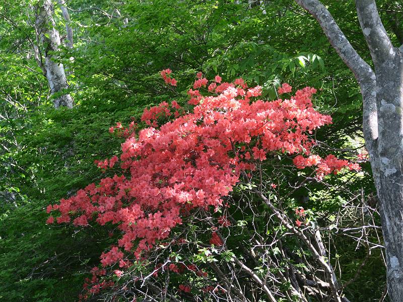 | 山行日 2025年6月19日 晴れ 単独 コース おのこ(P)→駒ヶ岳→黒檜山→猫岩→黒檜山登山口→おのこ(P) 久しぶりに赤城山を歩く、すっかり夏の佇まい、本日は駒ヶ岳、黒檜山と左回りで歩く。往路は早目だったので、誰にも会わず、帰路は20人ほどに合う。花はヤマツツジの残り株のみ、蒸し暑さは感じず快適な山歩きだった。 6:02、おのこ駐車場 6:04,駒ヶ岳登山口 6:20,下の鉄階段 6:37,上の鉄階段 6:41,ベンチ、鳥居峠分岐 関東ふれあいの道碑 6:52,駒ヶ岳 駒ヶ岳山頂より大沼 7:04,大タルミ 小ピークから黒檜山 ヤマツツジ 振り返って地蔵岳 7:34,花見ケ原分岐 7:37,黒檜大神 7:40-7:57,黒檜山 ビューポイント、祠 上越の山々、雲多く遠望利かず 山頂より下る 黒檜大神分岐 地蔵岳&大沼 赤城神社 サラサドウダン 8:28,富士山展望台 8:48,猫岩 猫岩から地蔵岳&大沼 カッター 9:05,黒檜山登山口 赤城神社 9:19,おのこ駐車場 総所要時間は、3時間17分、距離はおよさ5.0km、標高差は550mほど、会った人20人ほど。 8080221の雑記帳(続)へ 記録一覧へ |
