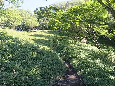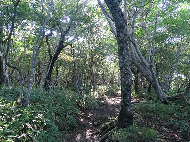 | 山行日 2024年9月5日 ほぼ晴れ 単独 コース 鍋割山登山口→鍋破不動分岐→鍋割山→荒山高原→荒山→休憩所(赤城温泉分岐)→ 休憩所(荒山高原分岐)→荒山森林公園駐車場→(林道鍋割相吉線)→鍋割山登山口(総距離12km、標高差7920m) 5:44,鍋割相吉線の鍋割山登山口出発、山頂まで約1.5km ここからしばらく岩場を急登 標高1000m地点が緩やかになって草原化している、鍋割高原 マルバダケブキ 再び樹林帯の中を急登する 岩場を抜けると、平坦な落葉樹林となり、 鍋割不動からの道を合わせ 丸太段を急登して 7:20.鍋割山山頂1332m着 少し進んで竈山不院から北方向に武尊山、鈴ケ岳 東方向に地蔵岳、荒山 火起こ山付近から鈴ケ岳、地蔵岳、荒山 地蔵岳、荒山 鈴ケ岳、地蔵岳、荒山 この先で荒山を正面に木段の急坂を下る 7:59,荒山高原着 アザミの残り花 箕輪コースを合流 松の大木の横を抜けて 緩やかな灌木の道を進む 間もなく樹林帯に入って岩の間を急登する 8:55,抜けると荒山山頂である、しばらく休憩 南に下って避難小屋 緩やかに荒山の南面を下り9:46,十字路着 ここから荒山登山口に下山する 10:18,荒山登山口駐車場着 林道を4-5km歩き 11:02,出発点の駐車場へ戻る ![]() 総所要時間は、5時間18分、暑いばかりで何もない季節だった。 8080221の雑記帳(続)へ 記録一覧へ |