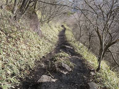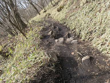 | 山行日 2026年3月2日 晴れ 単独 コース 鍋割山登山口→鍋破不動分岐→鍋割山→荒山高原→荒山→休憩所(赤城温泉分岐)→ 休憩所(荒山高原分岐)→荒山森林公園駐車場→(林道鍋割相吉線)→鍋割山登山口 (総距離12km、標高差970mm) 着時外気温 5:55,鍋割山登山口出発 しばらく急斜面が続く 緩やかになって鍋割高原 正面に山頂部 鍋割山山頂部 急登j後半 ここから平坦な道 西側を巻いて 7:18,鍋割地蔵分岐を過ぎ丸太階段を急登 左手に浅間山、榛名山 急坂中間から振り返る 階段を抜け 7:30-7:45,鍋割山 ガスっている浅間山、榛名山 小休止して荒山に向かう 点々と残雪 鈴ケ岳左手に上越の山 武尊山 巻機山方面 笠ケ岳、朝日岳 巻機山方面 谷川岳 七ツ小屋山、朝日岳、巻機山方面 万太郎山、谷川岳方面 平標山・仙ノ倉山、万太郎山、谷川岳方面 平標山・仙ノ倉山、万太郎山、谷川岳方面 苗場山、 平標山・仙ノ倉山方面 竈山方面まで上越ノ山がくっきり見えていた 画像クリック拡大 左から苗場山、平標山・仙ノ倉山、万太郎山、谷川岳、七ツ小屋山、笠ケ岳、朝日岳、巻機山 火起山を過ぎると急下降して荒山高原に下る 8:29,荒山高原 枝間から鍋割山方面 箕輪方面分岐 ここを過ぎると岩場を急登 抜けると荒山山頂 9:30-9:42 山頂から地蔵岳、黒檜山・駒ヶ岳 苗場山方面 ゴロゴロした岩場を南方向に下る 途中ひさし岩から地蔵岳、長七郎山方面の山並みを展望する その先で避難小屋へ、ここから緩やかに巻いて十字路に出る 十字路から荒山登山口に向かう 11:05,荒山登山口に下る 11:50,林道を4kmほど歩き出発点に戻る 総所要時間は、5時間55分、距離はおよさ12.0km、標高差は約980m、会った人2人だけ。 8080221の雑記帳(続)へ、 記録一覧へ |