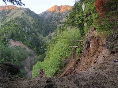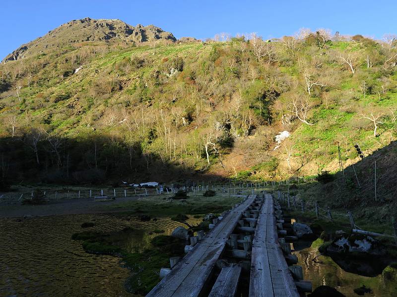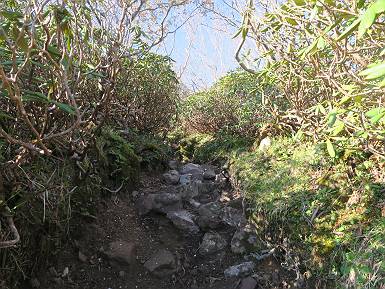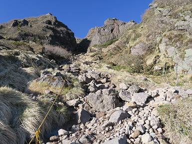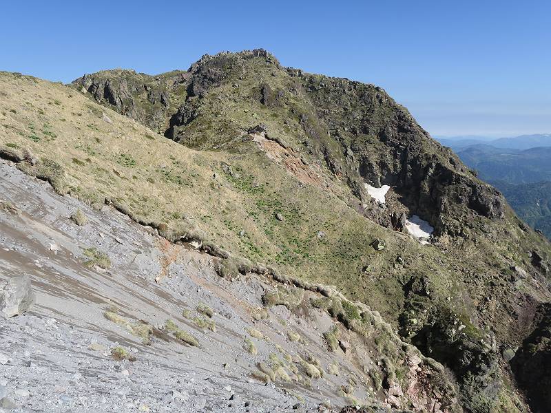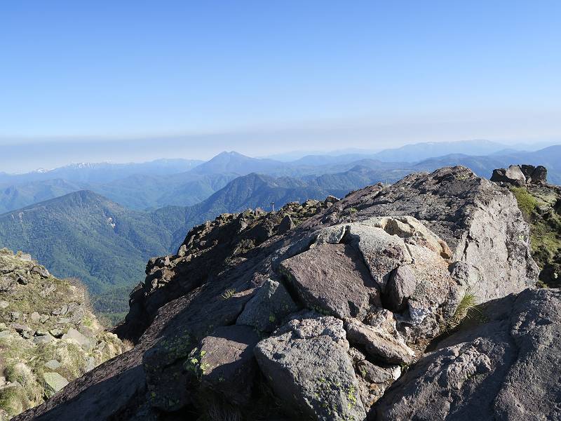| 山行日 2024年6月11日 晴れ 単独 コース 菅沼登山口駐車場→弥陀ケ池→日光白根山→避難小屋→弥陀ケ池→菅沼登山口駐車場 距離、9km 標高差1000m 高気圧に囲まれ絶好の行楽日和とか。夜中走って、駐車場で仮眠、明るくなるのを待って出発、花を期待したが、弥陀ケ池までにツツジがたったの1本、この上はミネザクラと日光白根山、十分楽しめた。 4:00,菅沼登山口駐車場 最奥駐車場分岐 山間登山道に入る、ジグザグ急登の連続 出発30分ほどで谷側が開ける、根名草山、 温泉ケ岳、金精山の眺望あり、道は少々緩やかに 再び急登、突き当たって左カーブ、岩場が連続 真っ赤なツツジ(ミツバツツジ?) 菅沼プレート 続いて、5:10,弥陀ケ池 0.9km道標 残雪を右手斜面に、回り込んで5:30,弥陀ケ池へ 弥陀ケ池から日光白根山 5:40,弥陀ケ池西側分岐 柵に沿って進み5:50,稜線合流 ショウジョウバカマ ミネザクラ 登山道から座禅山、弥陀ケ池 急斜面から至仏山、平ケ岳、燧ケ岳展望 燧ケ岳、手前は燕巣山 平ケ岳 至仏山 芽吹き前のダケカンバ ミネザクラ 日光白根山山頂部とミネザクラ、登山道はガレ場から岩場 四郎岳と燕巣山の間に平ケ岳、燧ケ岳 森林限界に近づいてきた 菅沼、弥陀ケ池方向を振り向く 矢印に従って安全第一で一歩一歩 北方向を振り向く、燧ケ岳、会津駒ケ岳 岩場は続く 岩間から燧ケ岳 平ケ岳、燧ケ岳、会津駒ケ岳と手前に四郎岳、燕巣山 太郎山、女峰山、大真名子山 丸沼、菅沼方面 6:55,東側のピーク着 山頂の溶岩ドーム 鞍部へ、男体山 太郎山、女峰山、大真名子山、男体山 日光白根山山頂 7:05-7:25 平ケ岳、燧ケ岳、会津駒ケ岳と手前に四郎岳、燕巣山 男体山&中禅寺湖 赤城山、錫ケ岳 袈裟丸山、皇海山 奥白根神社 奥白根神社から日光白根山山頂 避難小屋方面へ下り 袈裟丸山、皇海山、赤城山、右手前は錫ケ岳 南東方向から日光白根山山頂部 ガレ場がしばらく続く 五色山&五色沼 ツガザクラ タテヤマリンドウ イワカガミ 樹林帯へ 左カーブして避難小屋へ 8:24,避難小屋 雪渓の残る登山道 8:36五色沼 東方向から日光白根山 シロハナヘビイチゴ 分岐点 弥陀ケ池へ登り返し 平坦なピークからミネザクラと座禅山 東側から日光白根山 分岐点 日光白根山とミネザクラ 少々下って、9:15,弥陀ケ池へ 弥陀ケ池から日光白根山 足元に注意しながら往路を下る 9:38,登山口まで2.0km道標 10:30,菅沼登山口駐車場、¥1000投函して家路に 総所要時間は、6時間30分、ミネザクラと日光白根山、これはなかなかビューティフルだったが、高山植物はこれから。会った人10人ほどで好天でも少なかった。 8080221の雑記帳(続)へ 記録一覧へ |