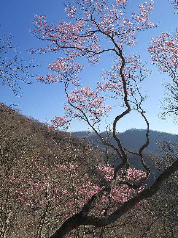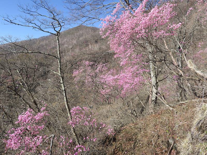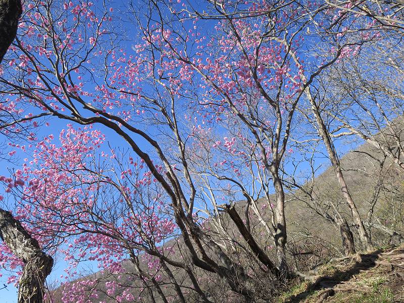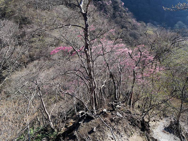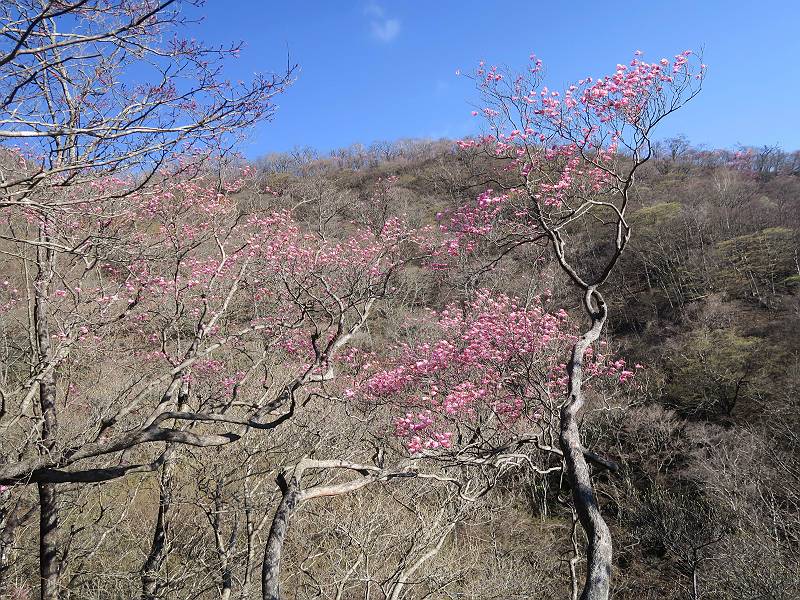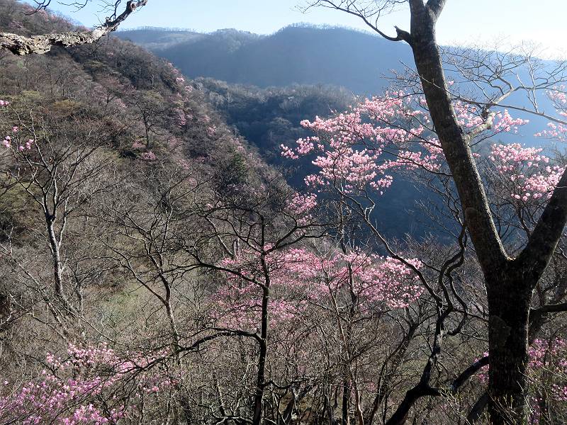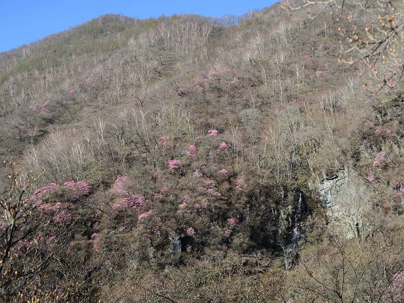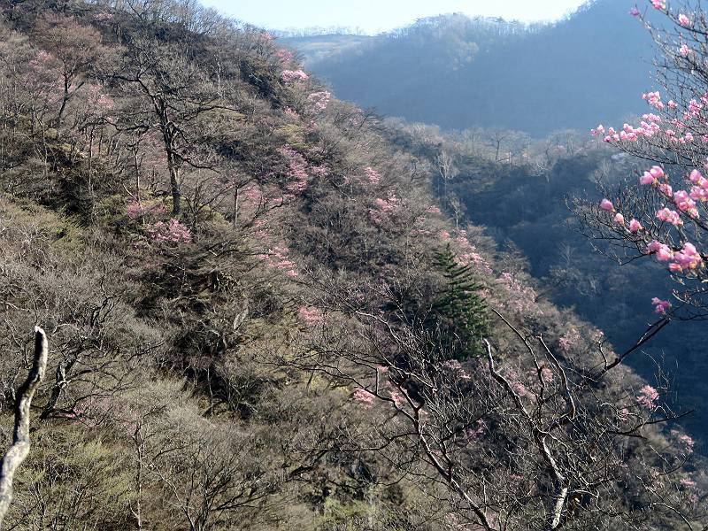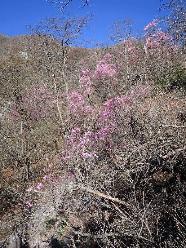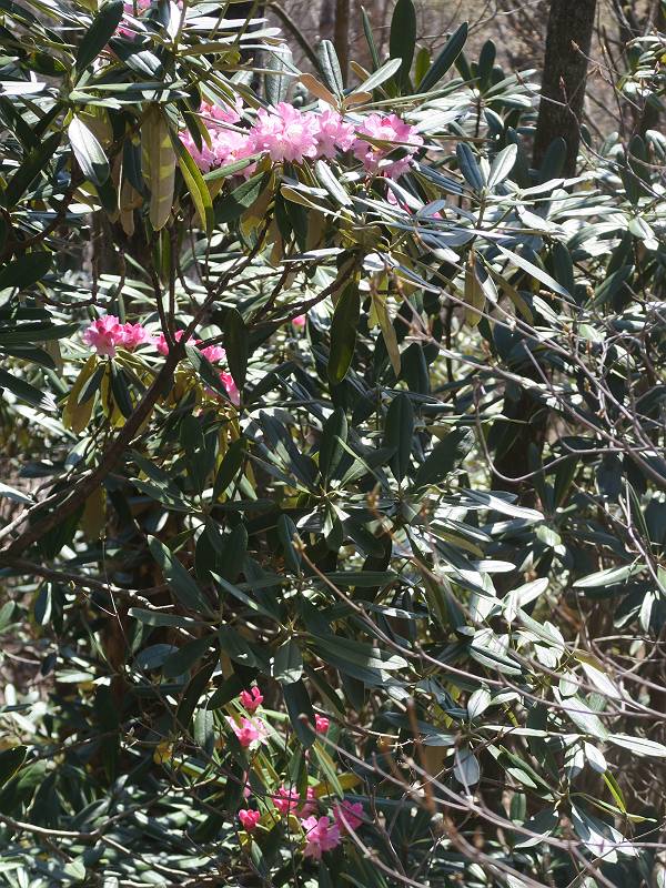 | 山行日 2025年4月30日 晴れ風つよし 単独 コース 利平茶屋森林公園駐車場→山崖の滝→猿川北尾根→キャンプ場→利平茶屋森林公園 利平茶屋周辺のアカヤシオが満開だと聞く、花も今年はアタリのようだ。今日の天気予報は晴れ、風が2〜5m/s、花見日和である。利平茶屋駐車場着5:30、気温5℃、10m/sの強風が吹きまくっていた。寒い、ヤッケを持ってきて良かった。駐車してる車は5-6台、でも日中は満車だろう? 5:41,駐車場を出発。すっかり陽が昇り木々の枝間から尾根筋のアカヤシオを眺めながらキャンプ場を抜ける。時々突風で落ち葉が舞い上がり、攻撃してくる、足元もぐらつく。 キャンプ場を抜ける 強風を避けて」川沿いを上る 吊り橋を渡って」山間へ 北側」斜面のアカヤシオ 山崖の滝 しばらく斜面にへばりつきながら、写真を撮りながら前進する シャクナゲも花数は少ないが、咲きだしていた 駒ヶ岳方面 7:15,利平茶屋の南尾根に出る、下降点まで尾根を辿る 長七郎山 アズマシャクナゲ、強風を避けながらシャッターを 対岸のアカヤシオ、滝付近 7:52,下降点 芽吹きが始まっていた ヤマザクラ 8:20,駐車場着、ほぼ満車 総所要時間は、2時間39分、距離はおよさ4.0km、会った人は0人でした。 8080221の雑記帳(続)へ 記録一覧へ |