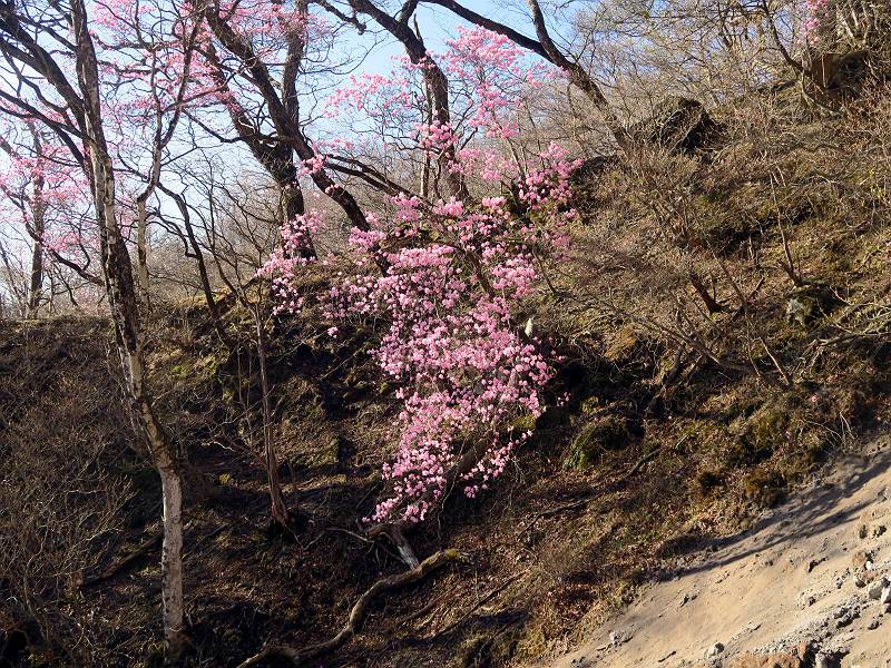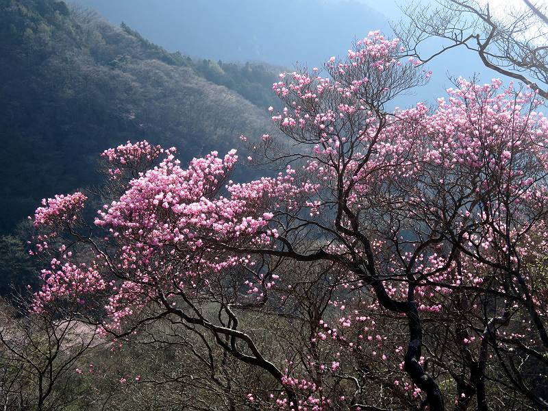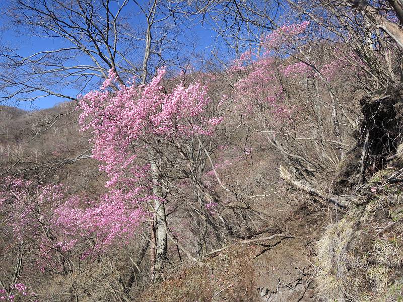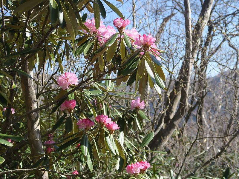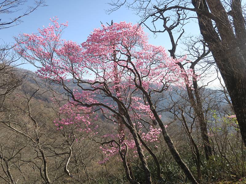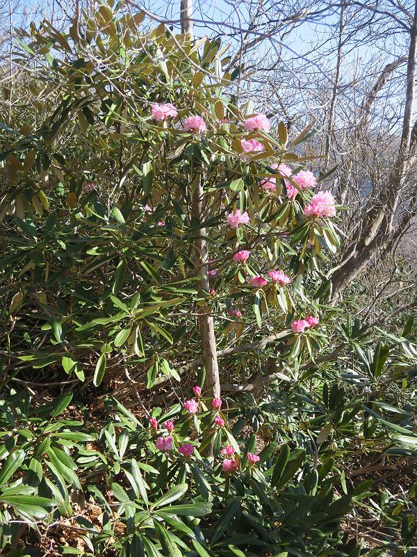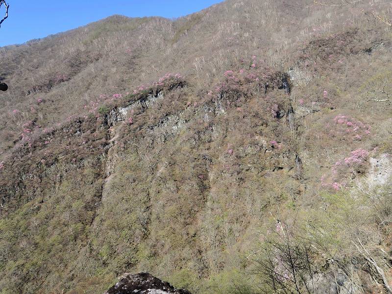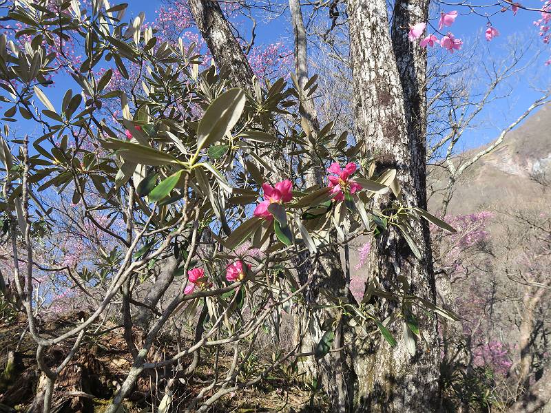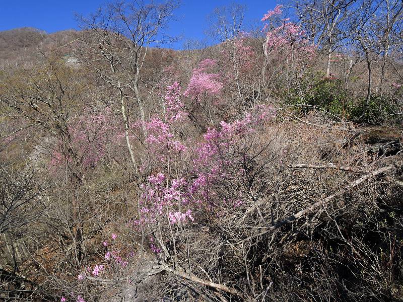 | 山行日 2025年4月30日 晴れ風つよし 単独 コース 利平茶屋森林公園駐車場→山崖の滝→猿川北尾根→キャンプ場→利平茶屋森林公園 利平茶屋周辺のアカヤシオが満開だと聞く、花も今年はアタリのようだ。今日の天気予報は晴れ、風が2〜5m/s、花見日和である。利平茶屋駐車場着5:30、気温5℃、10m/sの強風が吹きまくっていた。寒い、ヤッケを持ってきて良かった。駐車してる車は5-6台、でも日中は満車だろう? 5:41,駐車場を出発。すっかり陽が昇り木々の枝間から尾根筋のアカヤシオを眺めながらキャンプ場を抜ける。時々突風で落ち葉が舞い上がり、攻撃してくる、足元もぐらつく。 キャンプ場を抜ける 強風を避けて」川沿いを上る 吊り橋を渡って」山間へ 北側」斜面のアカヤシオ 山崖の滝 しばらく斜面にへばりつきながら、写真を撮りながら前進する シャクナゲも花数は少ないが、咲きだしていた 駒ヶ岳方面 7:15,利平茶屋の南尾根に出る、下降点まで尾根を辿る 長七郎山 アズマシャクナゲ、強風を避けながらシャッターを 対岸のアカヤシオ、滝付近 7:52,下降点 芽吹きが始まっていた ヤマザクラ 8:20,駐車場着、ほぼ満車 総所要時間は、2時間39分、距離はおよさ4.0km、会った人は0人でした。 8080221の雑記帳(続)へ 記録一覧へ |