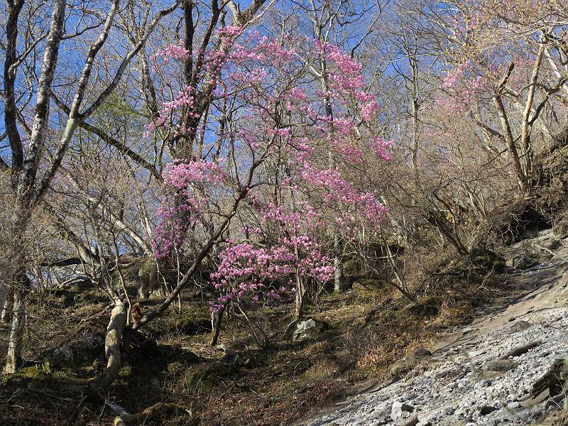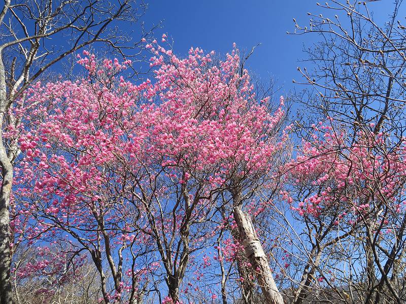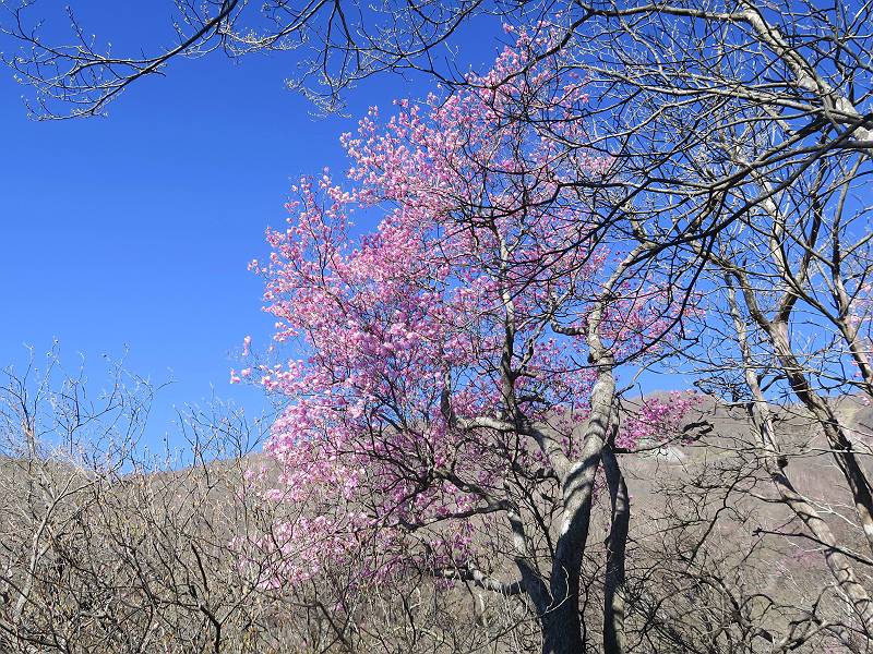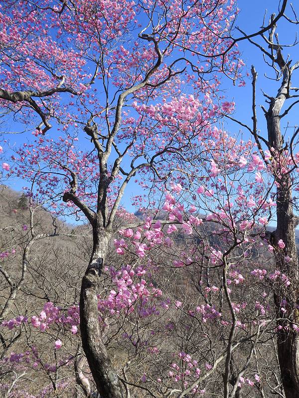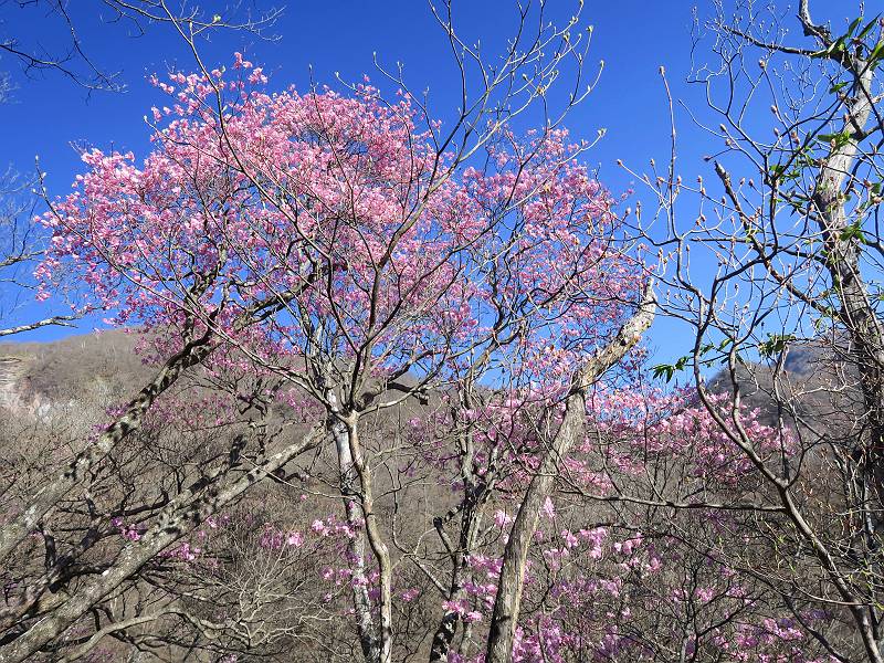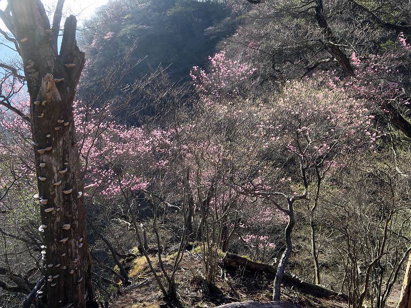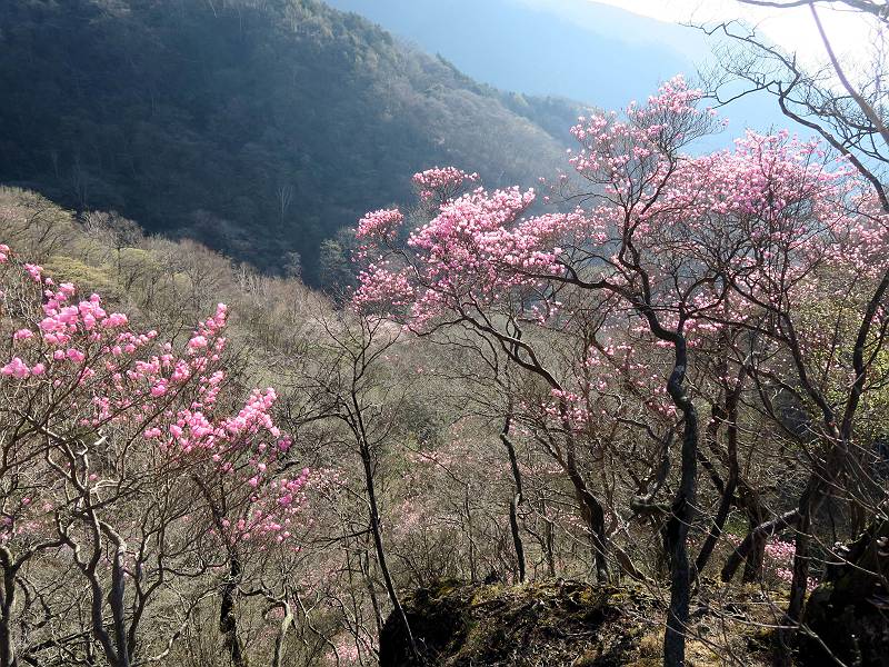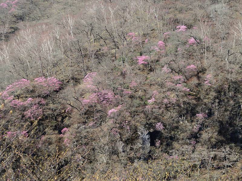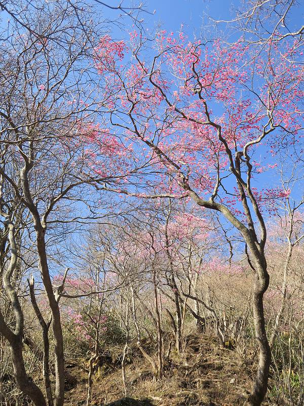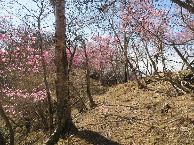 | 山行日 2025年4月30日 晴れ風つよし 単独 コース 利平茶屋森林公園駐車場→山崖の滝→猿川北尾根→キャンプ場→利平茶屋森林公園 利平茶屋周辺のアカヤシオが満開だと聞く、花も今年はアタリのようだ。今日の天気予報は晴れ、風が2〜5m/s、花見日和である。利平茶屋駐車場着5:30、気温5℃、10m/sの強風が吹きまくっていた。寒い、ヤッケを持ってきて良かった。駐車してる車は5-6台、でも日中は満車だろう? 5:41,駐車場を出発。すっかり陽が昇り木々の枝間から尾根筋のアカヤシオを眺めながらキャンプ場を抜ける。時々突風で落ち葉が舞い上がり、攻撃してくる、足元もぐらつく。 キャンプ場を抜ける 強風を避けて」川沿いを上る 吊り橋を渡って」山間へ 北側」斜面のアカヤシオ 山崖の滝 しばらく斜面にへばりつきながら、写真を撮りながら前進する シャクナゲも花数は少ないが、咲きだしていた 駒ヶ岳方面 7:15,利平茶屋の南尾根に出る、下降点まで尾根を辿る 長七郎山 アズマシャクナゲ、強風を避けながらシャッターを 対岸のアカヤシオ、滝付近 7:52,下降点 芽吹きが始まっていた ヤマザクラ 8:20,駐車場着、ほぼ満車 総所要時間は、2時間39分、距離はおよさ4.0km、会った人は0人でした。 8080221の雑記帳(続)へ 記録一覧へ |