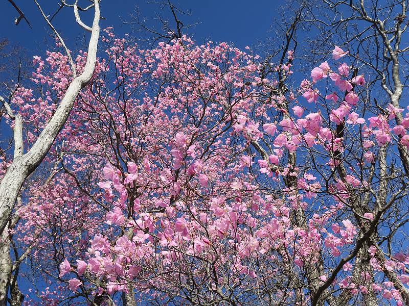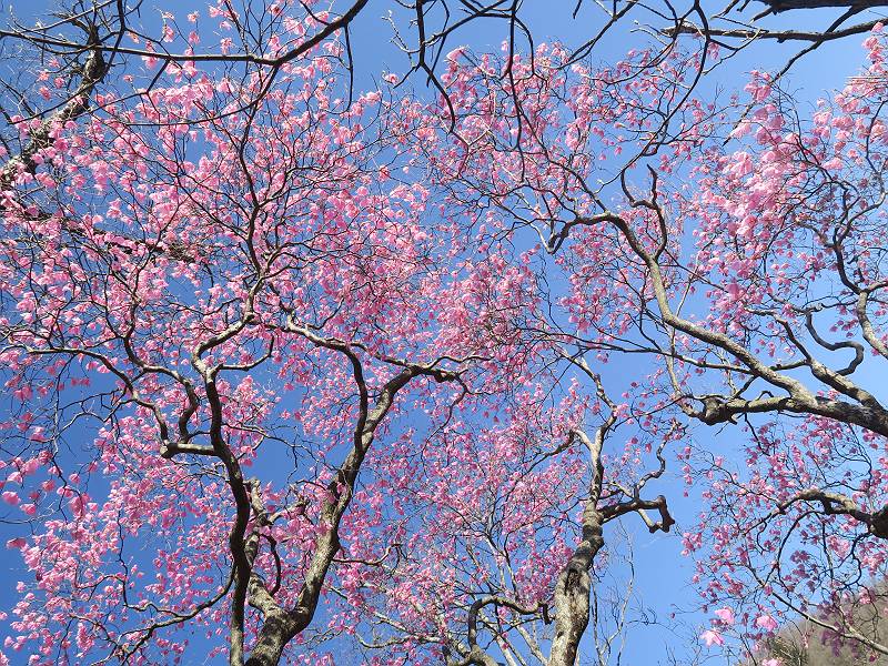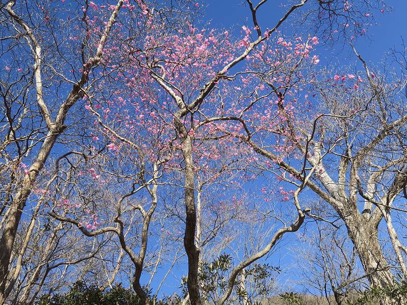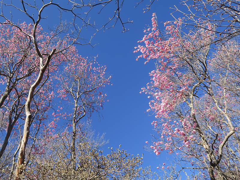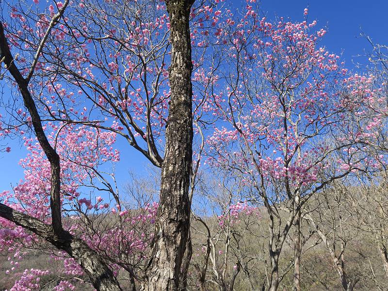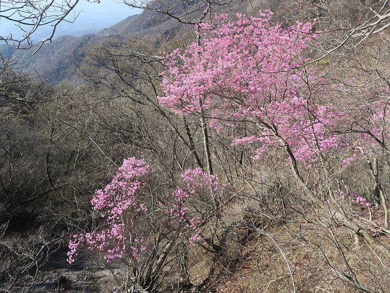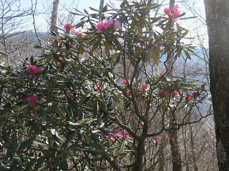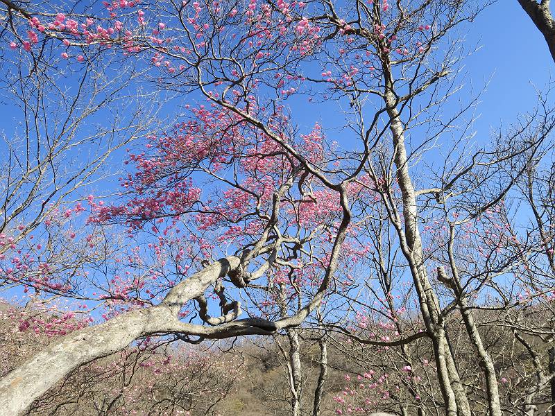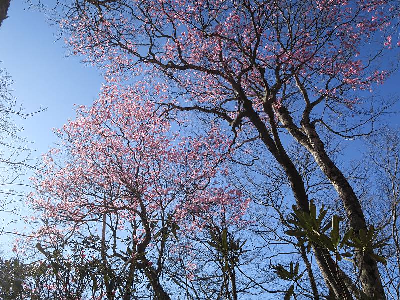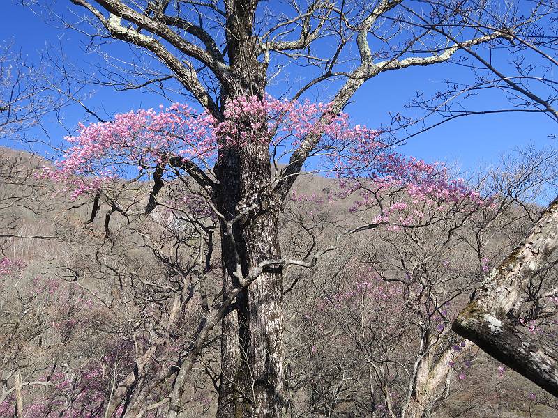 | 山行日 2025年4月30日 晴れ風つよし 単独 コース 利平茶屋森林公園駐車場→山崖の滝→猿川北尾根→キャンプ場→利平茶屋森林公園 利平茶屋周辺のアカヤシオが満開だと聞く、花も今年はアタリのようだ。今日の天気予報は晴れ、風が2〜5m/s、花見日和である。利平茶屋駐車場着5:30、気温5℃、10m/sの強風が吹きまくっていた。寒い、ヤッケを持ってきて良かった。駐車してる車は5-6台、でも日中は満車だろう? 5:41,駐車場を出発。すっかり陽が昇り木々の枝間から尾根筋のアカヤシオを眺めながらキャンプ場を抜ける。時々突風で落ち葉が舞い上がり、攻撃してくる、足元もぐらつく。 キャンプ場を抜ける 強風を避けて」川沿いを上る 吊り橋を渡って」山間へ 北側」斜面のアカヤシオ 山崖の滝 しばらく斜面にへばりつきながら、写真を撮りながら前進する シャクナゲも花数は少ないが、咲きだしていた 駒ヶ岳方面 7:15,利平茶屋の南尾根に出る、下降点まで尾根を辿る 長七郎山 アズマシャクナゲ、強風を避けながらシャッターを 対岸のアカヤシオ、滝付近 7:52,下降点 芽吹きが始まっていた ヤマザクラ 8:20,駐車場着、ほぼ満車 総所要時間は、2時間39分、距離はおよさ4.0km、会った人は0人でした。 8080221の雑記帳(続)へ 記録一覧へ |