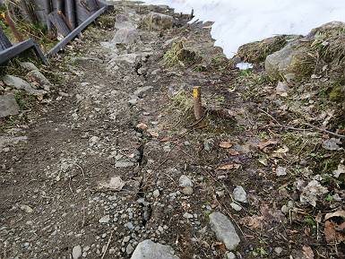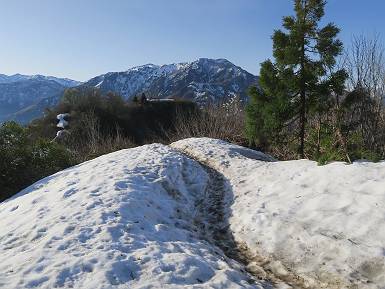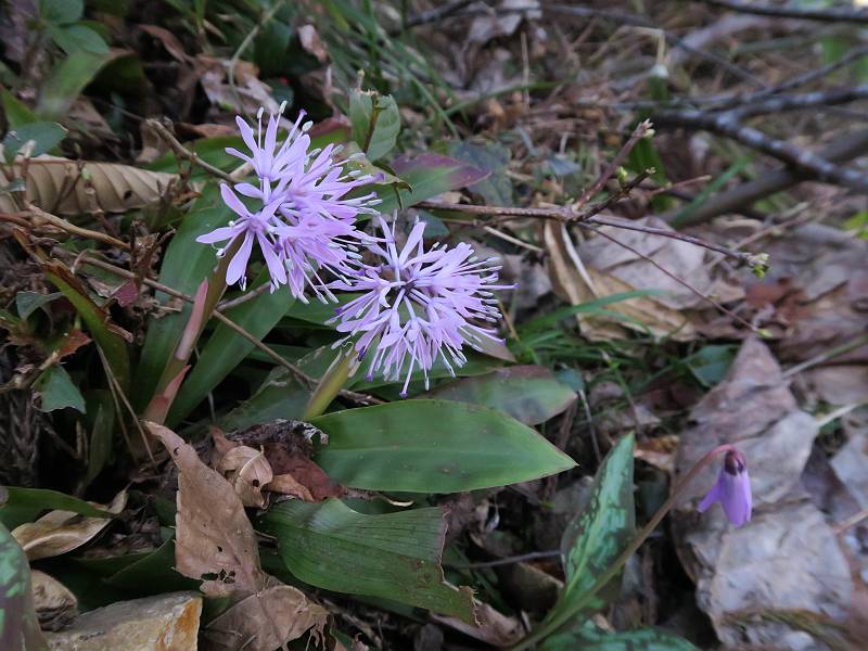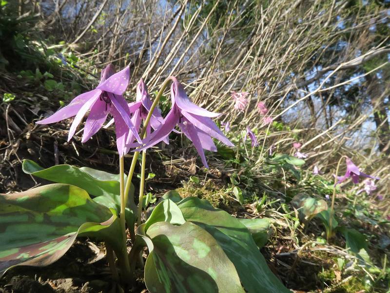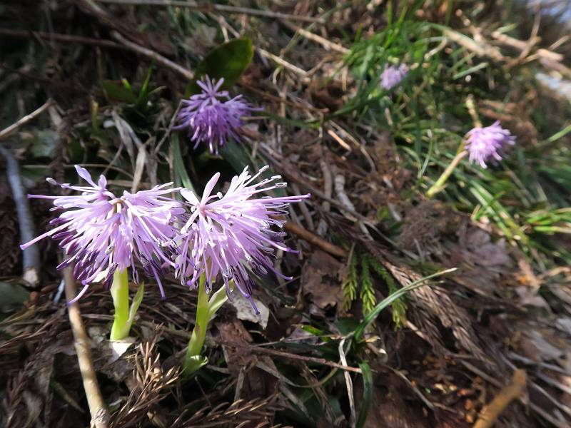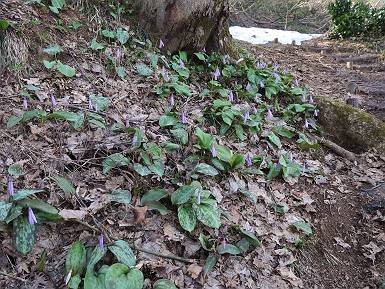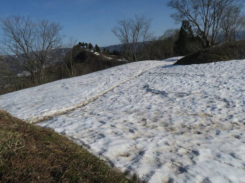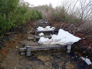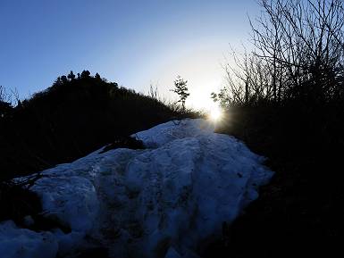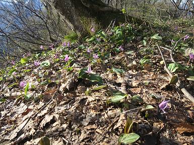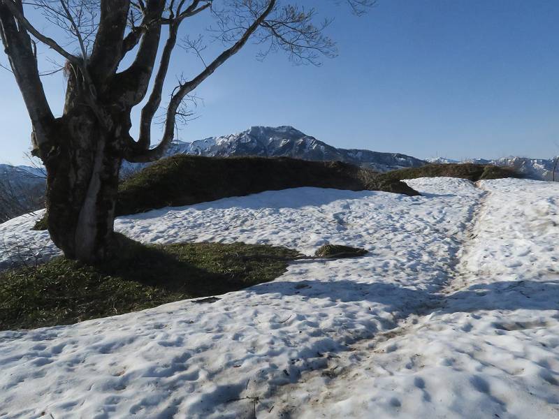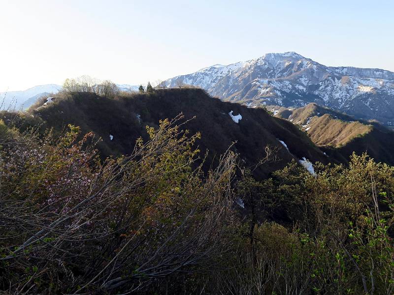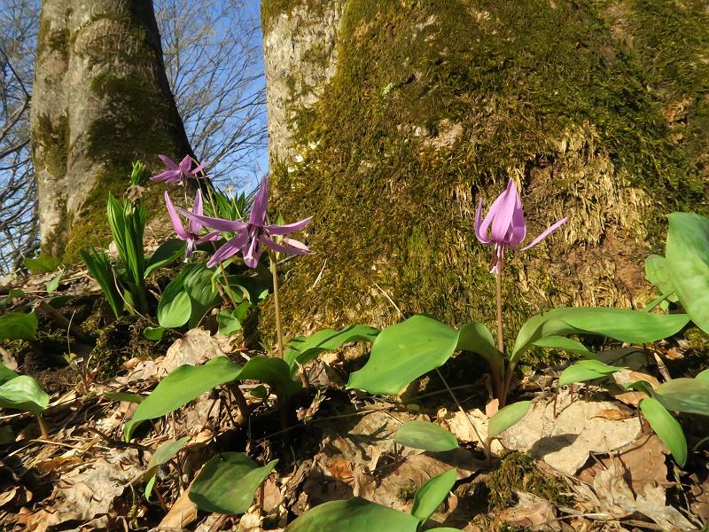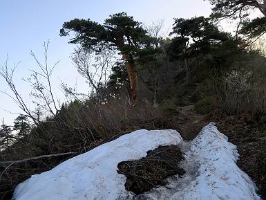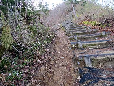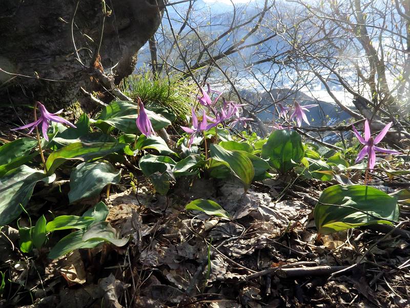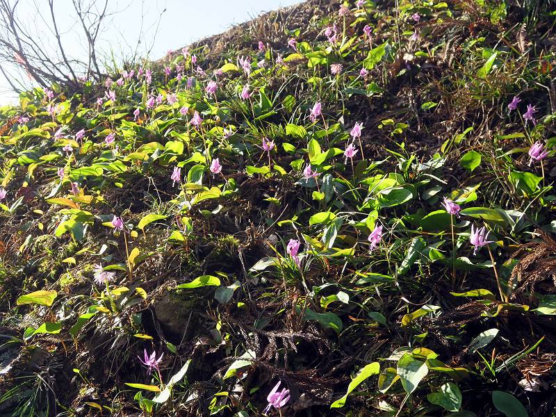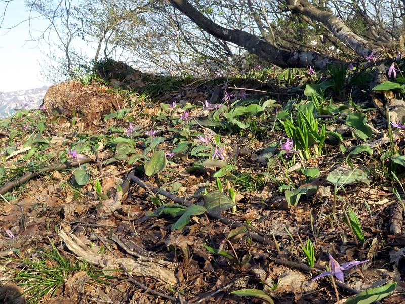 | 山行日 2025年4月22日 晴れ 単独 コース 坂戸山登山口(鳥坂神社)→桜坂→坂戸山→大城→坂戸山→一本杉→鳥坂神社 4:49,鳥坂神社出 発登山道に沿って石神が迎えてくれる 桜は見頃だが老木が多く間引きされていた 桜の次はカタクリの群生地、時間が早くまだ目覚めてない、残念 樹間から西方向の山々を展望、急登が続く 登山道に沿ってイワウチワの群落 斜面のあちらこちらにタムシバ 地味な花マンサクも斜面に点々と ユキグニミツバツツジが咲き始めていた 山頂に近づくにつれ、雪が転々と残る 遠望する苗場山は雪が深そうだ ヤマザクラも目立つ お休み所 山頂はもう少し、九合目 苗場山、鳥甲山、台倉山 大城と金城山 6:21,坂戸山着、簡易アイゼンをつけて大城に向かう ここのピーク陽当たりが良いせいかカタクリが咲きだしていた ここは真っ白だ、大きなブナの木が一本、南に大城、その向こうに金城山 金城山 大城から坂戸山 一ノ倉岳、茂倉岳 仙人ケ山、平標山方面、タカマタギ、日白山、東谷山 苗場山 7:16,坂戸山に戻る 桃ノ木平付近、ショウジョウバカマ 杉林に入り、登山道を見失う、何度か歩いているので勘所で道に出た 雪の消えたところからカタクリが咲きだしている 下界は近いが足元は要注意 ここは? 陽当りが良く、カタクリが進んでいた 小さい渡渉、この辺は誤って踏み込むと大へん カタクリの群落です 四合目、斜面が緩やかになりました 8:08,一本杉着 8:25,登山口着 総所要時間は、3時間36分、距離は4.1km、標高差は490mmほど、会った人50-60人ほど。雪解けが遅れているせいか、花の見ごろは1週間すぎかな? 8080221の雑記帳(続)へ 記録一覧へ |
