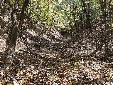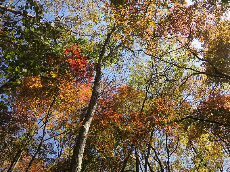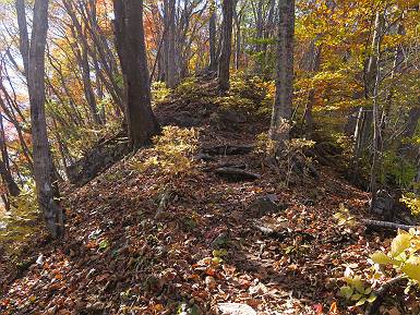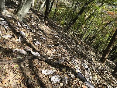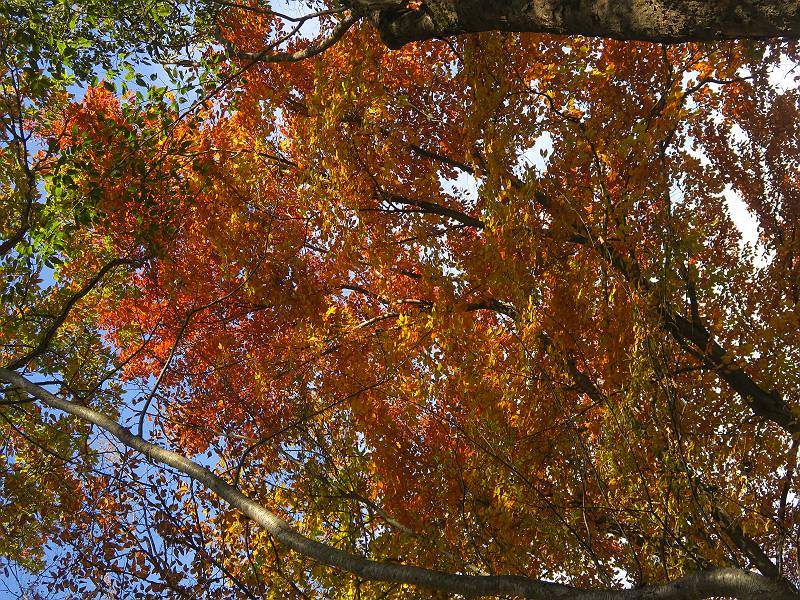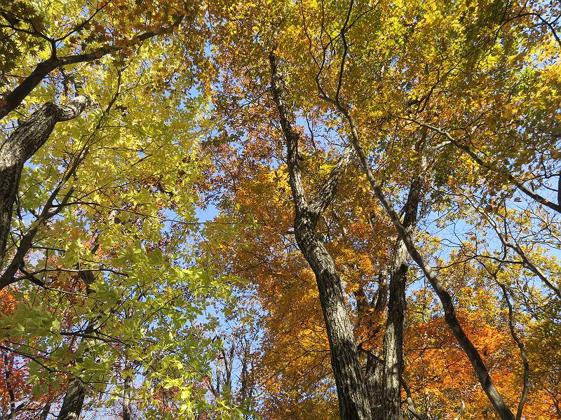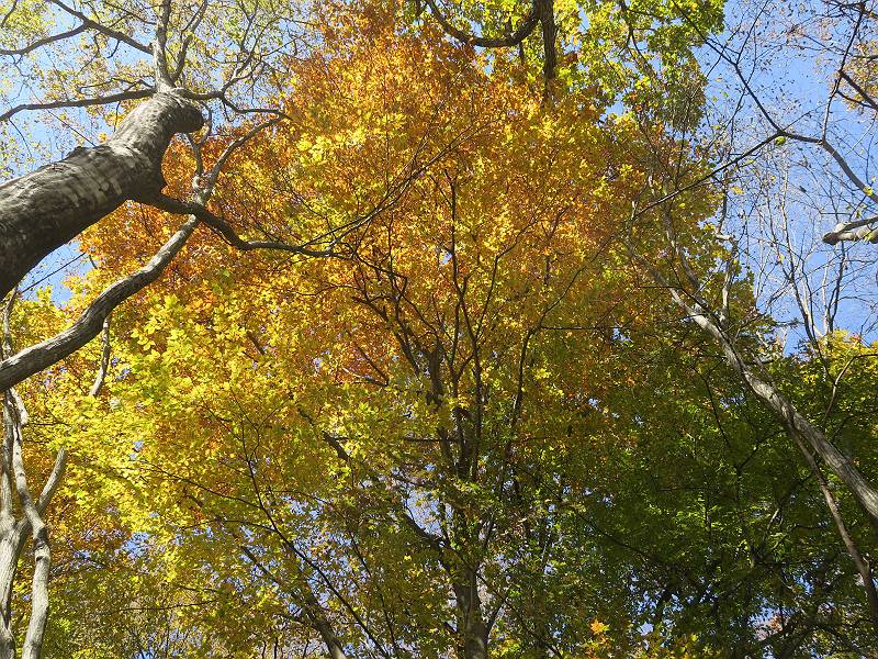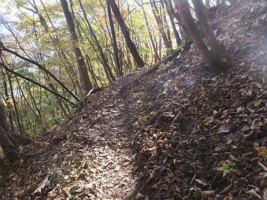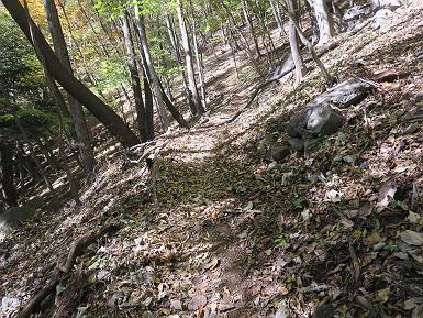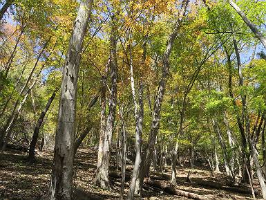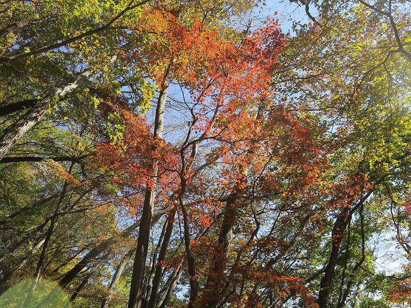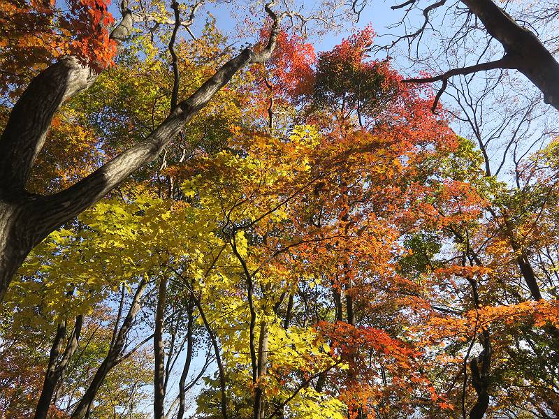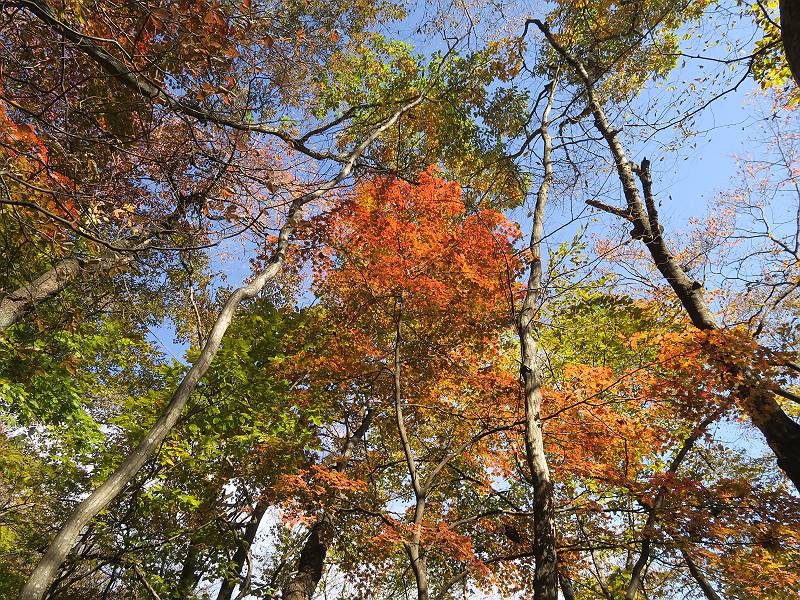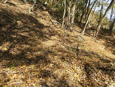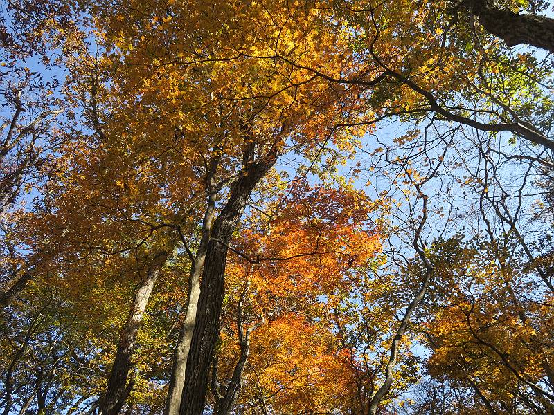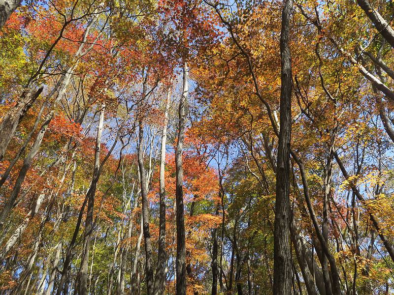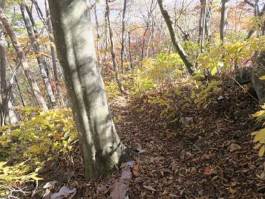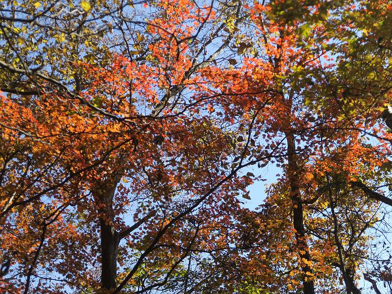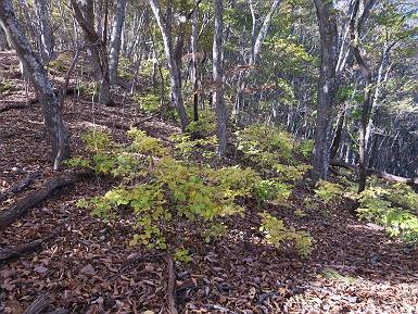 | 山行日 2024年11月12日 晴れ 単独 コース 駒岩(R353路肩駐車スペース)→駒岩の水場→石尊山→駒岩の水場→駒岩(往復5.5km、標高差603m) 高ジョッキから1時間ほどかけ紅葉の名所石尊山登山口に着く。軽食をとって10:02出発する。 集落の間を抜け、杉林の中の急坂をしばらく進むと、 小さな鳥居をくぐり広葉樹の急斜面に出る、道はジグザグしながら高度を上げていく。 真っ赤な紅葉を期待していたがハズレ、早いのかなあ。 でも高度とともに紅葉が増えてくる 11:06,水場 道は沢の真上を横断する、足元注意 この辺に来ると赤色が徐々に増す コアジサイの黄葉 コアジサイ 真っ赤だ、この辺は期待通り 石尊山山頂 11:45-12:04 西の高田山 榛名山 赤城山 往路を戻る、上部の紅葉は奇麗だ コアジサイの黄葉 12:22、水場 12:34、鳥居 12:56,駐車場着 総所要時間は、2時間44分、水場を過ぎて間もなく、山頂直下まで、紅葉のまあまあ見られるところがあった。 8080221の雑記帳(続)へ 記録一覧へ |