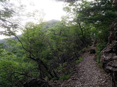 | 山行日 2025年6月2日 晴れ 単独 コース 足利市小俣町叶花集会所(P)→石尊山→深高山→猪子峠→トンネル西→岩切→叶花集会所(P 足慣らしにいつもの足利の山、叶花集会所を発ち、石尊山、深高山を踏んで猪子トンネル西に出て、県道を歩いて戻りました。 沿道には登山客らしき車なし、誰にも会わず、花もなし、小動物に遇うこともなく・・・。 5:16,叶花集会所(P)スタート 5:22,石尊神社 5:35,女人禁制碑 擬木の階段を上がると 5:46,ベンチ 岩石の道をしばらく急登 前方には山頂付近 右手には湯殿山と採石場 東方向に釈迦岩 岩場の急登が続く 赤城山は雲の中 仙人ケ岳も雲がかかる 分岐点を右へ 6:12,石尊神社奥の院 奥の院から南方の展望 左に回りお祭り広場 北方向に小さいアップダウンすると 6:25,石尊山 エゴの花 小さいピークが二つ三つ続いて 湯殿山方面分岐 小さいアップダウンをすぎると 7:01,深高山山頂着 東の展望、行道山の尾根 山頂より北方向へ急坂を下り しばらく緩やかに進む 擬木のかいだんを下ると、緩やかに右カーブして 7:26,粟谷方面の分岐点を通過 檜の林を下って 7:38,猪子峠に出て左折 小さい沢に沿って下ると、7:49,猪子トンネルの西側で県道に出る カーブが連続して、7:58,岩切へ 8:03, 小俣北町 うの花 白葉峠分岐 8:52,叶花橋を通過、 8:57,350m先ゴール 総所要時間は、3時間41分、距離は10.1km、標高差は500mほど、会った人なし、静かな山歩きだった。 8080221の雑記帳(続)へ 記録一覧へ |