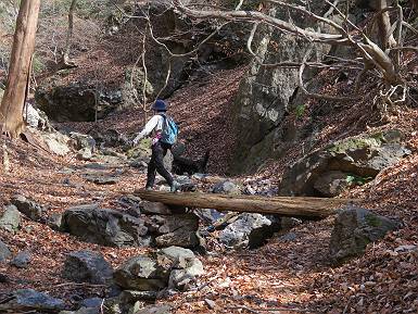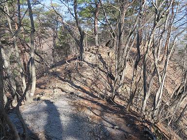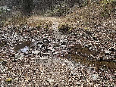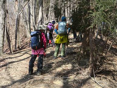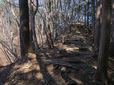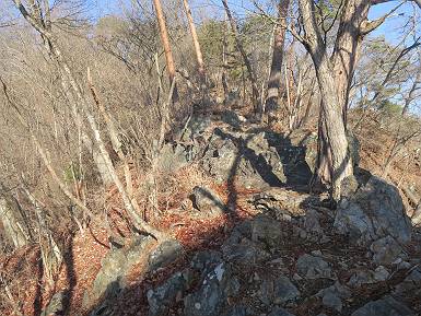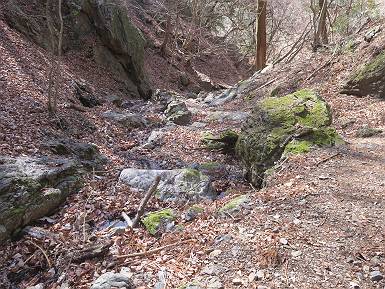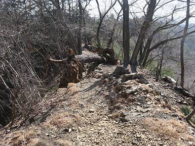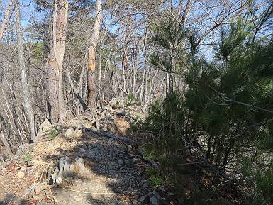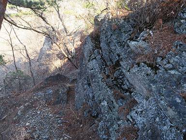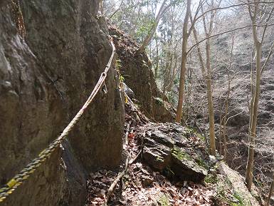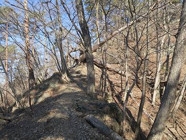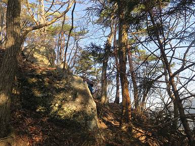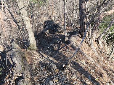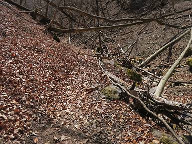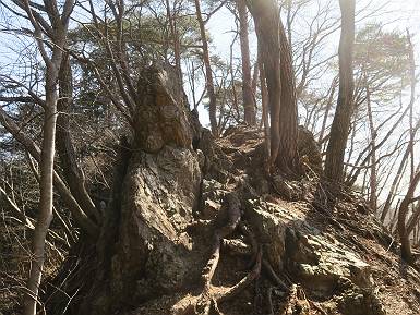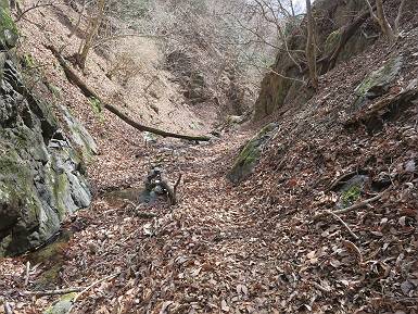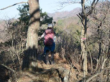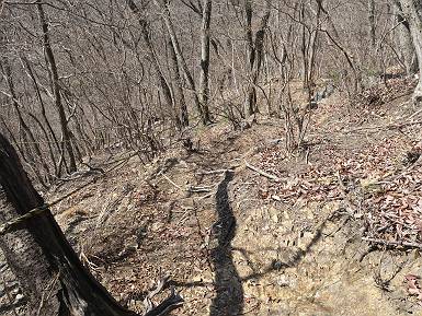 | 山行日 2024年3月13日 晴れのち霙 コース 岩切 P→トンネル西→猪子峠→犬帰り→熊ノ分岐→仙人ケ岳→熊ノ分岐→生不動→岩切 P 暫くぶりの仙人ケ岳、春の陽気に誘われて一周、沢筋の野草が咲き始めていた。稜線では強風にあおられ、花粉症に鼻と目、山頂ではくしゃみが止まらず、悩まされた、明日は医者かな? 6:24,岩切駐車場出発 岩切集落 猪子トンネル手前から登山道へ 6:47,猪子峠 檜林 振り向けば深高山 猪子山方面 松田方面 ここで90°左稜線へ 赤雪山 ゴロゴロした岩場を進む 3つほど小ピークをアップダウンすると 猪子山へ 先方に女性ハイカー 右手下方に松田湖と赤雪山 猪子山 切り立ったが岩稜が続く 犬帰りの鎖場 目指す仙人ケ岳を西方向に 先日の風だろうか、登山道が荒れている 宗ノ岳 西に仙人ケ岳を望む 松田湖西側のピークから 辿ってきた稜線を展望 隣の知ノ岳へ、9:03ー9:10 一帯は山火事跡 赤松の幼木が密生 9:23,熊の分岐 赤雪山方面分岐 緩やかに仙人ケ岳山頂へ、9:50ー10:02 山頂のマンサクが咲き始めていた 赤雪山分岐 6名Gr 10:23,熊の分岐右折 急坂を下る 岩切沢源頭付近 10:48,生不動 ハナネコノメソウ 林道終点 岩切 11:26、岩切駐車場着 総所要時間は、5時間02分、距離はおよさ9.6km、標高差は650mほど、会った人30人ほど。 8080221の雑記帳(続)へ 記録一覧へ |
