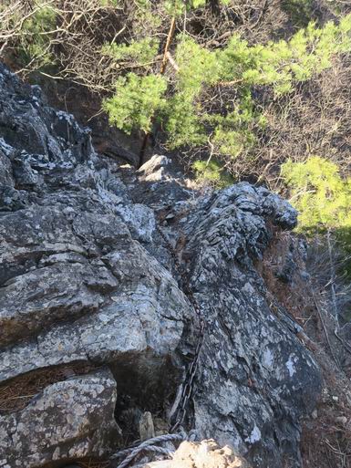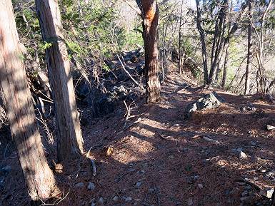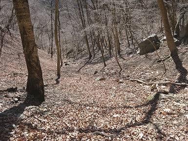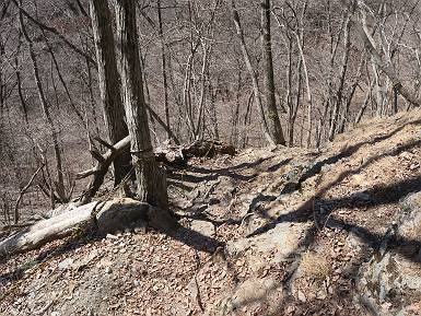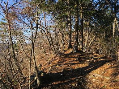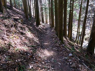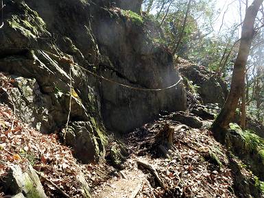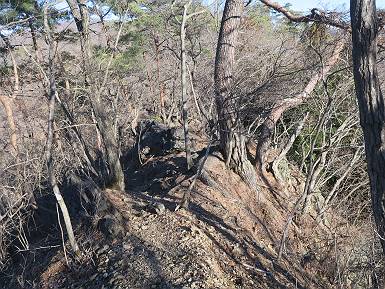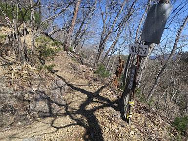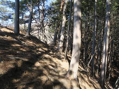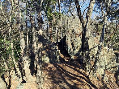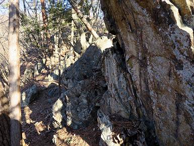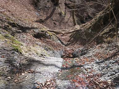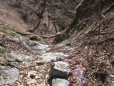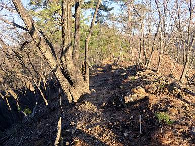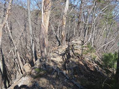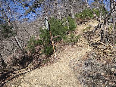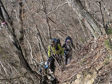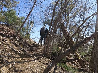 | 山行日 2026年3月814日 晴れ 単独 コース 岩切 P→トンネル西→猪子峠→犬帰り→熊ノ分岐→仙人ケ岳→熊ノ分岐→生不動→岩切 P 6:03,岩切駐車場 岩切集落通過 6:15,猪子トンネル西側から登山道へ 6:26,猪子峠 左に曲がると大木の根元に祠 檜林を急登して振り向くと南方向に深高山 6:55,小ピークを4つ、5つ越えると、尾根道は左に曲がる 富士山、浅間山を展望する 浅間山 植林と岩尾根が交互に現れる 大きな岩場の上から松田川ダムと赤雪山を展望する 目指す仙人ケ岳、尾根道は赤松と落葉樹の混生林 7:30,猪子山511m、ヤシオツツジの蕾はまだ硬い 岩場から深高〜石尊尾根、中ほどに富士山を遠望する その右手に八ヶ岳が薄っすら 岩尾根が連続し、8:00,惟の山501m 急降下し、8:06,鎖場へ、巻き道もあるが鎖を握る 鎖を見上げる 鎖を見下ろす 8:38,宗ノ岳530m 少々進んでから宗ノ岳を振り返る 進行左手に仙人ケ岳、もう少しだ 下って、登り返すと 8:53,知ノ岳561m、山火事の跡も赤松、檜の幼木に被うわれて感じない 二つ、三つ小ピークを越えると沢コースの合流点熊ノ分岐9:06, この先登り下りの人大勢 この先、間もなく荒倉尾根と合流し、灌木の尾根が続き 樹間から赤城山を覗く 赤雪山からの合流点を過ぎると、緩やかに進み 足利の最高峰仙人ケ岳に到着です、9:32-9:48 山頂付近枝間から日光白根山 同、男体山、女峰山 戻って赤雪山方面分岐点 10:09,熊ノ分岐 分岐点では人人人 トラロープを伝って急坂を下ると 落ち葉に被われた岩切沢最奥 そろそろ芽吹きの季節、静かな沢筋をいっきに下る 生不動近くまで下ると、岩場にしみ出る水、コガネネコノメソウ一輪 10:38,生不動 ここまで下ると岩切沢の水は増し、沢筋にはハナネコノメソウが陽春の日差しに輝いていた ユリワサビ 小滝の岩場を下り 人工林に入る 沢を渡ると林道終点 ほどなく岩切集落へ 11:18,小俣川 11:20駐車場に戻る 総所要時間は、5時間17分、距離はおよそ9.6km、標高差は650mほど、会った人30人ほど。陽春のウォーキングだった。尾根筋のアカヤシオの蕾はまだ固った。 8080221の雑記帳(続)へ、 記録一覧へ |