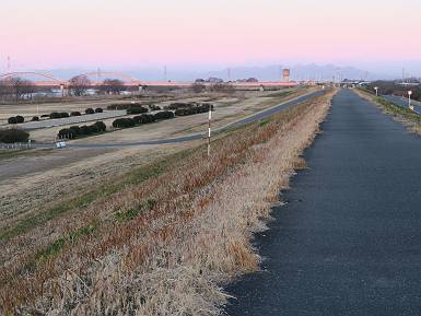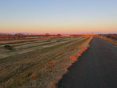 | 山行日 2024年1月18日 晴れ 単独 コース 赤岩渡船場P→刀水橋→葛和田渡船場→福川水門→利根大堰→赤岩渡船場P(一周23km) 暫くぶりに利根川の土手を歩くことにした、風が少々気になるが、いつもの刀水橋と利根大堰を一周する。 5:45,冷たい風の吹く中へ飛び出す 6:02,海から160km 朝焼け まだ、月が煌々と輝く 日が昇る 刀水橋が赤く染まる 古戸流量観測所 7:08,刀水橋 7:21,埼玉県熊谷市に入る 晃石山、馬不入山 筑波山 袈裟丸山、日光白根山、男体山、女峰山 男体山、女峰山 赤城山 西洋カラシナ 散歩をする人 グライダー駐機場 発着準備中? 発着場 何やらミーティング? 利根大堰へ6km 画像クリック拡大 袈裟丸山〜男体山 葛和田渡船場付近 8:42,利根大堰へ5km 男体山、女峰山 日光白根山 袈裟丸山 富士山 飛行 9:06,福川水門 水門正面に富士山 西側に浅間山 9:50,利根大堰 利根大堰北詰 海から158.5km 休憩所 明日マラソンがあるとか、コースの確認? 浅間山 浅間山と水上カイト 158.5km 10:50,赤岩渡船場着 総所要時間は、5時間05分、距離はおよそ23km 8080221の雑記帳(続)へ 記録一覧へ |