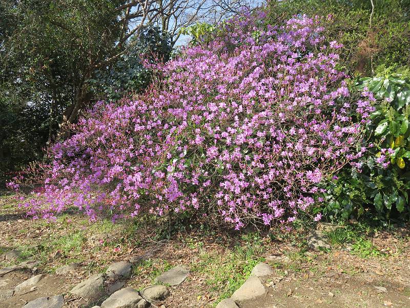| 山行日 2025年4月5日 晴れ 単独 コース 居住地→東金井→只上→原宿北→赤城神社(岩上)→(新田堀に沿って)→鹿島宮→太田市北部運動公園 熊野神社(上強戸)→八瀬川→さくら工業団地→金山の森キャンプ場→金山(新田神社)→玉巖寺→さざえ堂 大谷幹線→居住地 距離19.4km 朝の散歩+花見で近場の桜を鑑賞する。 5:05,出発 快晴、東には足利の山がクッキリと 東金井で左折してR122 間もなく日の出 太田桐生ICの下を抜け 5:45,少々進んで只上でR122を左折、R50に入る 進行方向に若干雪の残る赤城山がクッキリと 側道を歩き県道39号線を横断 6:06,七日市を通過 左手に満開のソメイヨシノが数本 前方に高圧線の鉄塔が見えてくると 6:30,R50を左折 6:33,県道を横断すると赤城神社、岩と桜の花と調和して美しい ここからは新田堀に沿ってしばらく進む 6:50,ここで橋を渡り山間に、 山裾を巻いて太田市北部運動公園(1.7km)に通じる遊歩道を歩く 7:04,鹿島宮 背景は金山 7:14-7:26、北部運動公園散策 運動公園から南方向の眺望 ベニシダレ 南へ下って 高速道路をくぐり 7:36,八瀬川に出る、花はイマイチ 7:51,橋を渡って、さくら工業団地を越える 7:57,金山の森キャンプ場 休憩所、イノシシ避けを抜け、金山のハイキングコースへ 8:43-8:53,新田神社 新田神社 ミツバツツジ 南東方向に下山 松風峠の少々東に出た 9:15,玉巖寺の枝垂れ桜が奇麗だった 見上げれば、金山の東斜面は芽吹きが始まっていた 9:28,ついでにさざえ堂へ 9:42,大谷幹線の桜並木へ 9:52着,我が家の枝垂れ桜 総所要時間は4時間47分、ソメイヨシノはほぼ満開に近いかな 8080221の雑記帳(続)へ 記録一覧へ |