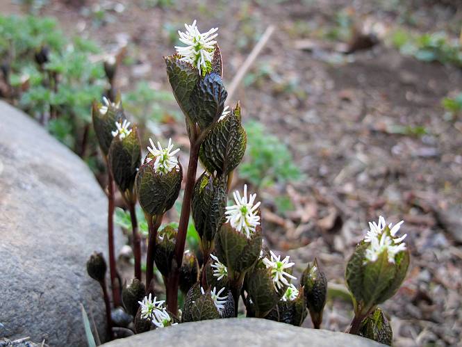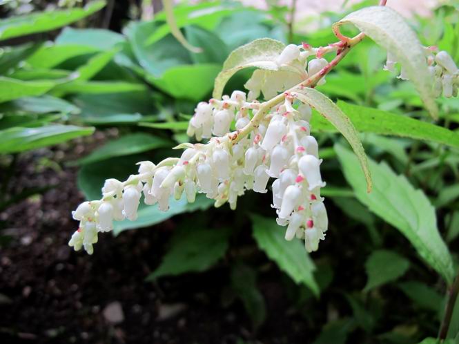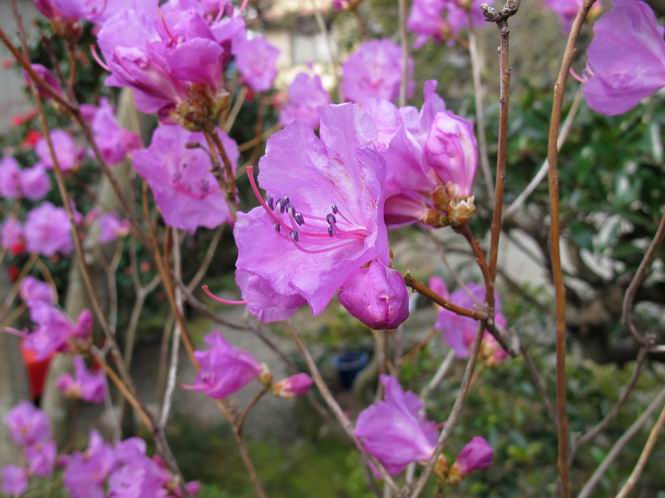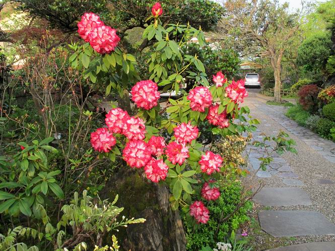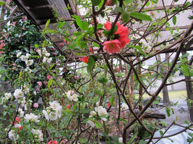 | 春春春春春 2112年 戻る 2012年5月30日 良く降りましたね、もう沢山。晴れの予報も雲多くイマイチ、花だけは日めくりで進んでいます。カシワバアジサイの黄緑色した小花が少し開いてきましたね。 ヒノマルウツギ セイヨウシャクナゲ ヤマオダマキ ヤマオダマキ キョウカノコ 2012年5月29日 シブカワツツジはツツジ科の落葉低木で、静岡県の渋川温泉付近で発見され、静岡県の天然記念物だそうです。岩が露出し植物が生育しにくい蛇紋岩地帯を好んで分布しているようです。絶滅危惧II類に登録されているそうです。 枝は横に広がらずに上に伸び、樹高は3〜5mになるそうです。光沢のある葉が開いた後に花が咲き、枝先に2〜4輪くらいずつ紅紫色の花をつけます。普通の培養土を盛って植えてますが、花の付きは良いようです。 シブカワツツジ シブカワツツジ シチヘンゲ(七変花) カンコクアジサイ、シチヘンゲに似ているなあ イワガラミ、ガクが開いて大分白くなりました ムラサキセンダイハギ、日当たりが悪く横に這ってしまいました。 ウノハナ キリンソウ満開 2012年5月26日 夏の太陽が照り付けました、5月下旬は真夏並みの暑い日が毎年ありますが、アツーイですね。清楚なバイカウツギの花をみてしばし暑さを忘れて下さい。 バイカウツギ、咲き始めが良いですね。 セイヨウシャクナゲ、丈をつめましたが3,4年でまた伸びてしまいました。 イワガラミ、3,4日たつと真っ白になります。 キリンソウ、ちょっとピントがあまいね(カメラ修理中です) 2012年5月25日 ヤマボウシの花が白くなって見頃を迎えました。光線の具合で色が飛んでしまって出にくく部分的になってしまう。夕方が良いのかな、朝の陽の当たらないうちが良いのかな。 ヤマボウシ 5/28追加 ヤマボウシ ヤマボウシ ニッコウキスゲ カクテル 2012年5月24日 一口にサラサウツギと言っても数種あるようです。正式な名称はわかりませんが、毎年キレイに花をつけています。 サラサウツギ サラサウツギ ????? シロバナシラン、斑入り レーマニア エラータ ガマズミ アルペンブルー 2012年5月19日 久々の五月晴れ、昨日できなかった消毒を当座の分だけ朝一で行い、修理依頼中の常用しているCanon PowerShot G12の不具合写真をリストアップ、解説してメール便で送る、遠方より来客あり、お見送りしてほっと一息。生い茂る庭木がうっとうしく感じられる、でも白さを増すヤマボウシに、「ちょっと待ってよ」、と止められる、伸びきるまで待とう。 コアジサイ コアジサイ ムラサキツユクサ(園芸種) ムラサキツユクサ(園芸種) セイヨウシャクナゲ チョウジソウ シラン ムラサキカタバミ(雑草)、根が深くて抜ききれない、隣のドクダミはもっと始末が悪い ニワゼキショウ(雑草)、こんな沢山生えてしまった オオジシバリ(雑草)、遠くから見るとタンポポと間違える 2012年5月14日 ナツロウバイ、半日陰で今年も沢山花をつけました。実生でアチラコチラに生えるなど、強いんですね。 ナツロウバイ オオヤマレンゲ アヤメ クロツツジ ナニワイバラ、車庫の屋根に届きました ミツバウツギ オキザリス 2012年5月11日 勝手の窓から撮りました。キジバトの夫婦、季節でしょうか。 キジバト、毛繕いしてやっているのかな? 目を閉じて気持ち良さそう。 キジバト、頭を竦めちゃってます。 ナニワイバラ サラサウツギ? サラサウツギ? クレマチス コゴメウツギ コゴメウツギ クロロウバイ 2012年5月9日 我が家のボタン(牡丹)もこれが最後、勿論今の季節のものしかありません。故に価値ありかなあ。 ボタン アヤメ 2012年5月8日 ネット仲間のSさんに頂いた八重咲きのユキヤナギ、本名はシジミバナと言うようです(?)。中国原産で古くから庭木として栽培されているようで、花期は5月の今の時期です。 八重ユキヤナギ 八重ユキヤナギ、花の大きさは1cmほどです、コデマリにも似ているかな イチハツ イチハツ ハマナス ハマナス ハマナス エンコウソウ エンコウソウ 2012年5月6日 サンザシ、この花は、植栽されるセイヨウサンザシ(ヨーロッパ、北アフリカ原産、小高木、白色一重の5弁花)の園芸種で、紅色八重咲きである。枝を多く分け、短い枝の変化したと言われるトゲがある。漢字で山査子と書くので日本の固有種か中国原産かな、と思ってました。 サンザシ サンザシ オダマキ(以下3点も園芸種) オドリコソウ 地エビネ 地エビネ クロユリ アメリカイワナンテン 2012年5月4日 連日雨降るGW、当ての外れた観光地は浮かぬ顔、我が家の犬は諦めたのか寝てばかり。雨に打たれた花々は、日差しを求めて懸命だ、一方でウツギ&アジサイ系、、ナツロウバイ、ヤマボウシ、シャラがたっぷり水を得て葉を伸ばし、蕾を膨らませている。あたりまえのように繰り返される、春から夏への営みの変化に過ぎないのだが。 クジャクシダ、水を得て・・・ シノブ、水を得て・・・ ボタン、立ち上がれるかな? ヒメシャガ、日差しの下が綺麗ですね、花の色が薄い感じ 2012年5月2日 我が家の庭も八十八夜を