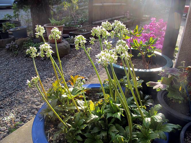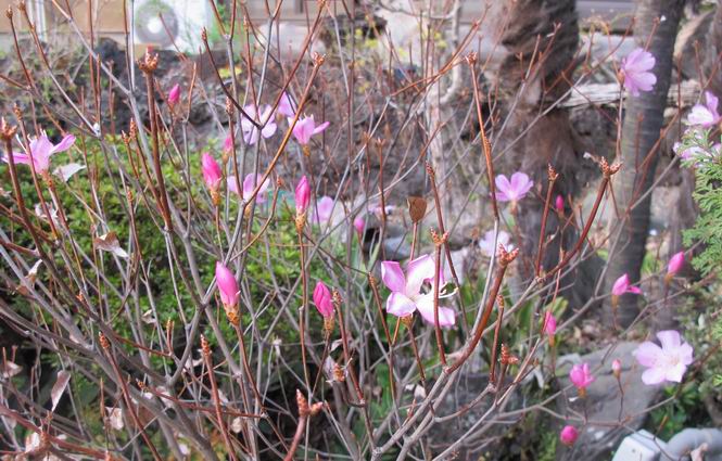 | 春春春春春 2013年 戻る 2013年5月29日 昨年の暑さのせいか、今年の寒さがきいてか、庭の花に元気が無い、ヒノマルウツギも、イワガラミもそうだ。花のつきが悪く、花が小さい、ここ十年以上見ているが、こんな年ははじめてだ。竜巻、ゲリラ豪雨が騒がれているが、気象問題、現象がつかめていないだけに、不安がつのる。 ヒノマルウツギ イワガラミ イワガラミ 2013年5月26日 3,4日前から咲き出したキョウカノコ、バラ科の多年草でお茶花としてなじみ深い園芸種のようです。野草のシモツケソウに近いのかな。 キョウカノコ キョウカノコ ヤマタツナミソウ コメツツジ 2013年5月25日 ホタルブクロが咲き出しました。ホタルがそろそろ飛び交う時期ですかね、夏近しですね。 ホタルブクロ(園芸種?)、鉢植えにして野草の可憐さを出したつもりです。 ホタルブクロ(園芸種?) ホタルブクロ(野生種) ホタルブクロ(野生種) オダマキ(野生種) オオヤマレンゲ オオヤマレンゲ サラサウツギ、満開です。 アルペンブルー 5/18掲載と同株です、まだまだ楽しめます。 2013年5月22日 食べ残しのネギに花が咲きました、俗にネギボウズと呼ばれているものです。良く見ると蕊(シベ)が面白い格好してますね。小さい虫が沢山入り込んで蜜を吸って(?)ました。別の花ではヤブキリの幼虫が長い触角を振りかざし、独占権を主張(?)してました。 ネギボウズとヤブキリの幼虫 ニワフジ ニッコウキスゲ 最近、偶然、愛知県瀬戸市みずの坂の造園屋さんの“社長のブログ”を開きましたら、当サイトの2010年春から画像を無断使用しているのを発見、抗議しましたが、音沙汰なし。今年も咲き出したサラサウツギ、再度画像削除を申し出ましたが、・・・・・。 サラサウツギ サラサウツギ 2013年5月20日 ピンクシャラの名で園芸店で売られているシャラの仲間、ピンクといっても薄っすらピンク、高木になるとか。 ピンクシャラ ピンクシャラ バイカウツギ バイカウツギ ツボサンゴ(ヒューケル・フレッケルとも呼び、洋物のようだ) ツボサンゴ シブカワツツジ シブカワツツジ オダマキ(園芸種、玄関前の石段で己生え)、邪魔ですがキレイですね ニホンカマヘビ、庭などに普通に見られるトカゲです、柿ノ木で日向ぼっこ中 2013年5月18日 オオヤマレンゲが咲き出しました。昨年より蕾の数が少ないですが、しばらく楽しめそうです。真っ白な大き目の花、緑の中にあって目立ちますね。 オオヤマレンゲ オオヤマレンゲ ガマズミ ガマズミ ガマズミ&アルペンブルー(下) アルペンブルー ミツバウツギ キリンソウ エゾカンゾウ 2013年5月16日 エゴの花がいっぱい咲きました、昨年は枝を骨だけ残して全部つめましたが、出た小枝にこの通りビッシリ花がつきました。1/3ほどの数ならば、・・・・・。 ピンクのエゴの花 ナツロウバイ、残りの蕾が少なくなりました。 ナツロウバイ 5/18追加 ムラサキツユクサ アヤメ、まだもってます。 2013年5月12日 昨日は恵みの雨、青空にこころなしか緑が映えているようです。ヤマボウシが満開となりました。咲きたては少し黄ばんでいますが、白く変わります。 ヤマボウシ、車庫の上 ヤマボウシ サンショウバラ、知人に実生で育てた苗を頂きました。 2004/11/29駒ケ岳〜神山間で撮影したサンショウバラです、赤い実を沢山つけるんですね。 ハマナス エゾカンゾウ エゾカンゾウ シノブ シノブ シノブ コデチャの仲間 オドリコソウ フタリシズカ、この種は増えすぎちゃって・・・・・。 雑草、カタバミ 同、ニワゼキショウ 2013年5月11日 挿し芽をして3年目、まだまだ小さいですが見られるような株に成長しました。この種にハコネウツギ、ニシキウツギ、ヤブウツギがありますが、シンプルで一番いい感じですね。 タニウツギ コゴメウツギ サラサウツギ? ナツロウバイ アヤメ バラ 同じような写真ですが、ハトヤバラ 同、ナニワイバラ、花はきれいですが、車庫が見えなくなって・・・・・・。 2013年5月9日 オキナグサの実がそろそろ収穫時期(?)のようです。大株になると暑さに負けてしまうので、種から育てておかないと・・・・・・。 オキナグサの胞子 チョウジソウ オキザリス、こんなに増えてしまった 2013年5月7日 ナニワイバラ、一拍遅れてピンクが見られるようになりました。風が強いので写真はブレてしまいましたが、この木の勢いには驚嘆します。今の時期は水をやってますが、天水は根元にかからないんですよ。 ナニワイバラ&ハトヤバラ 右が白、左がピンクです。 ハトヤバラ ナニワイバラ 「ぼくも入れてよ」、と言わんばかりに立ちふさがりますワン公 2013年5月3日 ナニワイバラ(白色)の正式名称は、ロサ レビガータというようです。これの色違い(桃色)をロサ レビガータ ロセア、ハトヤバラと呼ぶそうです。前者は中国から輸入してきたのが日本の難波商人だったようで、ナニワイバラの名が、後者は埼玉県鳩ヶ谷で主に生産販売されていたことからハトヤバラの名がついたようです。ややこしいですね、も