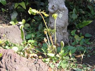 | 春春春春春 2004年、2005年 戻り 2005年5月29日 ヤマオダマキも茶系、薄黄色と2種ありますが、いずれも強く庭のあちこちで増えています。路地上のため可憐さを欠いていますが、園芸種と比べたら地味ですし、これも好みですね。イワガラミですが、もう20〜25年たつでしょうか、岩に絡んでまして岩が全く見えません、こんなの路地上する人はいませんよね(盆栽はありますね)。 ヤマオダマキ(露地植え) クリンソウ(鉢もの) オトメギキョウ(ベルフラワー) カンパヌラ・ポシャルスキャナ(アルペンブルー) イワガラミ(地植え) 同、アップ 洋シャクナゲ(地植え) 洋シャクナゲ(地植え) バイカウツギ(地植え) ウツギ(地植え) 2005年5月19日 タニウツギが今年も沢山花をつけました。この木は不思議と葉にも花にも虫がつかなくて、丈夫な木ですね。順番としましては、ウコンウツギ、タニウツギ、ウツギとなるようです。また、このタニウツギと同じ形をした、ハコネウツギ、ニシキウツギ、ヤブウツギがありますが、いずれもスイカズラ科なのですね。 タニウツギ バラ フタリシズカ キングサリ シラン アヤメ 2005年5月15日 ヤマシャクヤクを知人から2鉢戴いたんです。花が咲くのを、まだか、まだか、と1日4,5回観てました。シラタマ団子のような、美味しそうな蕾、徐々に開いていくのを観てるって、ほんと、楽しいものですね。花は、幾日もつかな? 今晩風が吹くとか、大丈夫かな? ヤマシャクヤク、5/14朝、蕾が開きかけてました 5/14昼、中を覗けるようになりました 5/14夕15:00頃、もうこのくらいかな? 5/15昼、もう、このくらいでしょう、幾日もつかな? 2005年5月10日 エビネがそろそろ見頃をむかえます、茶系の地エビネ、素芯、キエビネ、サツマ、路地植あり、鉢ものあり、今年も咲いてくれた感謝でいっぱいです。と言いますのは、ほっておきますと一時は元気な大株になるのですが、ダンダン・・・・・・・。 地エビネ 地エビネ(素芯) イチハツ サンザシ 2005年5月1日 あっという間に若葉が庭いっぱいに広がり、初夏の装いとなってしまいました。つい最近まで咲いていたシダレモモの下で、今度は、レンゲツツジ、ボタンが満開となりました。その下では、シラユキゲシが咲き始めております。 2005年4月27日 実生から育てたウコンウツギが、5,6年たちましたかね、やっと今年花をつけました。ヒメウツギはもう満開、タニウツギ、ウノハナはこれからですね。今年も何とかクマガイソウが一輪咲きましたが、年々少なくなってしまいました。野性ランは難しいですね。 ヒメウツギ クマガイソウ 花のアップ ちょっと横から ウコンウツギ 左の拡大 いくらか散り始めましたが・・・・・ 白い藤 2005年4月24日 我が家で最後の桜、ヤエザクラがそろそろ満開となります。このあとが大変、ハナビラが庭一面を埋めつくし、根元の地エビネに可愛そうなんですよ。エビネの花は地味でしょう、ハナビラはエビネの咲いている間中、色を保っているんですね、処置に困ってしまいます。 4月23日3分咲き程度でした 4月24日夕方には8,9分咲きとなりました ニホンサクラソウ ブルーベリーの花 2005年4月24日 ヤマブキソウ、オキナグサが庭の片隅で、今年も元気に咲き始めました。両種とも自然な状態で増えています。ヤマブキソウが、柿木の枝分れした所で咲いています、どうしよう、このままにしておきましょうか。 モミジの新芽 ヤマブキソウ ユキヤナギ オキナグサ シダレモモ ヤマエンゴサク、これも増えたね 2005年4月14日 今年もアズマシャクナゲの小木が綺麗な花をつけました。また気温が2,3日下がりましたので、花のもちが良いようです。真っ赤な蕾も良いのですが、開いた淡いピンクも好きなんです。 アズマシャクナゲ アズマシャクナゲ ヒカゲツツジ タムシバ クロモジの花 同、アップ シダレモモ シダレザクラ 2005年4月10日 タムシバがちょっと遅れて見頃を迎えました。今年は花をつけすぎて、小さいようです。昨年の秋、狂い咲きしまして、そのせいもあるのでしょうか。ボケもきれいですね、次々と今年は花が一斉にスタートしましたので、シャッターチャンスを逸してしまうんですね、天気もありますし。 ボケ ボケ タムシバ ツバキ シダレザクラ アズマシャクナゲ 2005年4月8日 桜の花がもう満開になって、芯も真っ赤っか、終わりですね。代わって三春系のシダレザクラが満開なのですが、写真がお粗末でした。ツクバイの竹垣の脇でヒトリシズカが見頃をむかえてました。これも強い植物で、庭の隅に沢山増えています。可愛らしいのは2,3日ですね。 シダレ桜(三春系) カワズ系?の桜、満開、散り始め シャクナゲ? ヒトリシズカ 2005年4月7日 昨日2分咲ぐらいだった桜が、今日は8分咲きです。何とも忙しい花なんでしょうね。スミレを2種撮ってみました、エイザンスミレとヒゴスミレです。エイザンスミレは薄い紫がかった大きい花、ヒゴスミレは純白、葉もよく見るとヒゴは細かいんですね。両方とも強く、自然に場所を変えて増