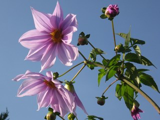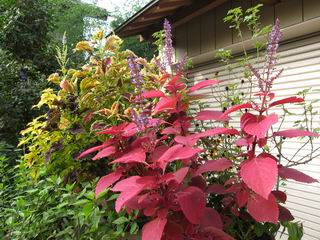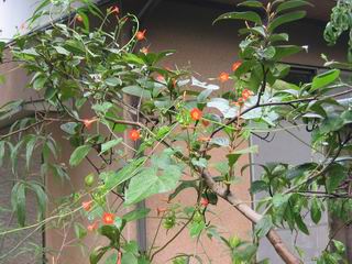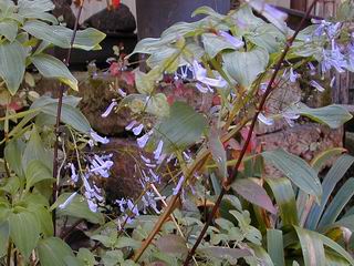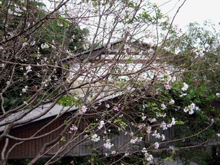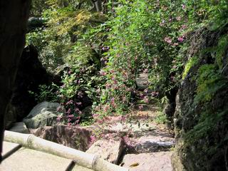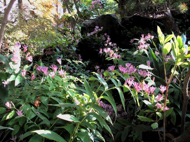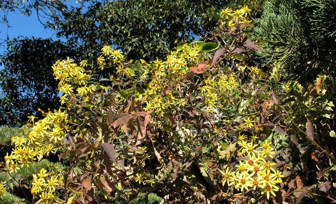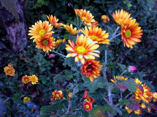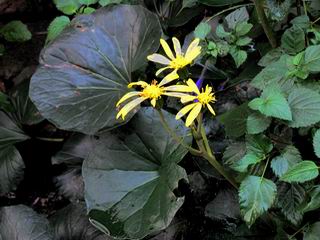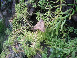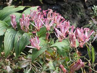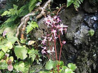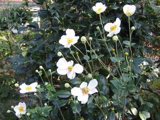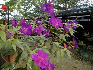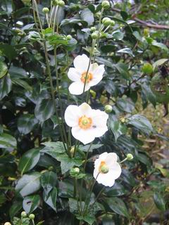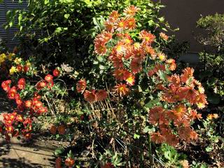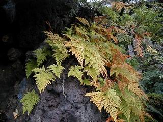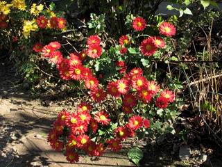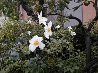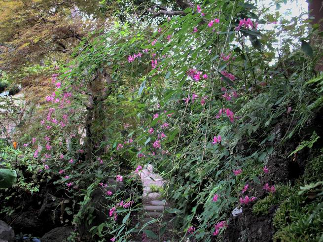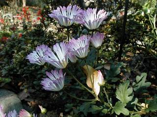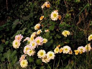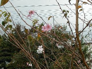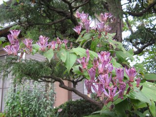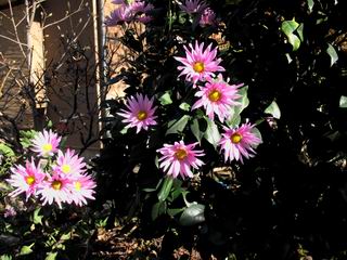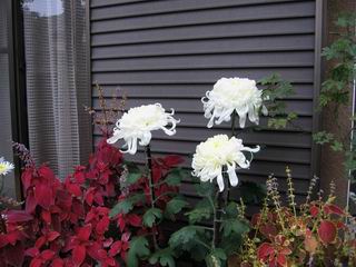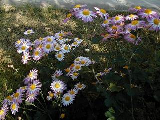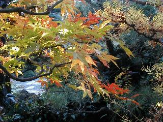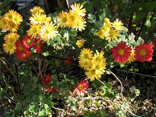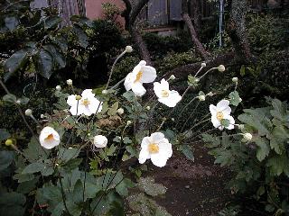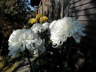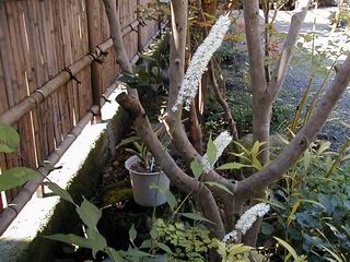 | 秋秋秋秋秋秋 戻り 1999年〜2007年秋 2007年11月29日 どうしたのでしょう、黄葉が終わりかけたマンサクの木、早くも花が咲き出しています。今のところ3っ花ですが、全体に蕾の先端が黄色くなっています。2ヶ月も早く咲くなんて、狂ってしまったのでしょうか。ロウバイは蕾が黄ばんでいますが、葉は青々してます。右はシイタケですが、1回10月中旬に収穫しまして、この秋2度目です。屋外で寒風にさらされ、乾燥しきってましたので、玄関に持ち込み、朝夕霧を吹いています。ホダギは栗で25cm強、シイタケは10cmほどになりました。全部で10本、食べてしまうのは惜しい、観賞用にしばらく。 マンサク、3っ花 シイタケ 2007年11月27日 前回の菊で、本年秋の部は、もう終わりとしてましたが、モミジが綺麗なので追加しました。あいにくの曇天下で映えない画像ですが、雰囲気的には晩秋の風情をかもしだしているかな、と思ってます。 赤しだれ(モミジ) 青しだれ(モミジ) ノムラ(奥)、赤しだれ、小木がシブカワツツジの紅葉です。 シャラの幼木(よせ植え)の紅葉です。 2007年11月23日 今日から3連休ですね、風は冷たくちょっと強いですが、この秋最後の観光にと、お出かけの方も多いでしょうね。庭の花もラストは菊の花、といってもいろいろ、あちらこちらのものを集めてみました。 キノボリギク、先端まで4mほどあります、決して美的な花ではないですが、面白い花ですよ。 2007年11月18日 大分冷え込んできましたね、昨日、今朝と霜が降りましたね。紅葉も一気に進み、桜の葉は残り少なくなりました。シャラは先端部で変色していますが、一番きれいなところかな。2回貼りました皇帝ダリアですが、霜が利かず、今のところ元気です。 シャラの紅葉 シャラの紅葉 コブシの黄葉(右) シャラの紅葉 シノブの紅葉 やっぱり青空がいいな、皇帝ダリア 2007年11月16日 雲ってしまいましたね、大変冷え込んできました。皇帝ダリアが10ケほど開きました。真ん中の花は5日目です、風で少し傷みましたが、まだ咲いてます。霜、待ってほしな、咲き終わるまで。 2007年11月11日 色づいたヤエザクラの隣で、昨年より11日早く皇帝ダリアの花が咲きだしました。次々と蕾が色づいてますので続報でまた。あまり草丈が高いので、計ってみましたら地面から花まで丁度4mありました。脚立に上がって塀の外から撮りました。霜が降りたらお終いですので、降りないように、ただ・・・・・。 皇帝ダリア 花アップ、花の大きさは15cmぐらいありそうです。 2007年11月7日 昨年、知人に譲って頂いたナメコの原木(トチノキ)からニョキニョキと沢山出てきました。見た目、気持が悪いくらい、ビッシリ生えています。何して食べようか、カサが開いたら煮込みうどんでもして、頂きましょうか。あと、2,3日かな。キノコつくりも楽しいですね、今年は、ヒラタケとクリタケを植えつけてみようかな。 いっせいに生えてきたナメコ、右は最近まで収穫していたシイタケの原木と年末に植菌予定のサクラの原木 アップでもう1枚 10月桜がやっとここまで、五月雨式に咲いていますので、パッとしませんね 2007年10月31日 葉は濃緑色で、日本庭園の下草に古くから広く利用されてきたそうです。特に半日陰を好み、地下茎が伸びて広がります。秋に短い花茎が出て、地味な淡紅紫色の花をつけ、晩秋の頃に赤い実をつけるそうです。吉祥草(キチジョウソウ)の名の由来は、これを植えている家に吉事があると花が咲くとの伝説からで、いわば縁起花でもあるとか。 吉祥草 同、花アップ 菊2種 ツワブキ アブロチン、元気に今咲いていますが夏の花とか 2007年10月29日 浅間の焼石にへばりついていたベンケイソウ科のツメレンゲが咲き始めました。虫が一匹蜜をすっているのでしょうか。同じベンケイソウ科のミセバヤも隣で咲いています。両種とも小豆島の岩場に自生しているとか。ミセバヤは外国産と思っていました。 ツメレンゲ ミセバヤ 色づき始めたシノブ 10月10日に登場したホトトギス(園芸種)の再登場です、夏に弱い芽を残したのですが、増えてしまいました。。 2007年10月17日 アキチョウジが、先週まではあまり貧弱なので、今年は色合いも悪く、キレイな花が見られないかな、と思っていましたら、今週に入り、頭をたらし、いっせいに開き始めました。低山の林道脇などで、よく見かける野草ですが、庭でも強いですね。 アキチョウジ ブルーキャッツアイ ススキ 色づいてきたシャラの木 柿は甘くなり、葉も赤くなって、秋の深まりを感じます。 2007年10月16日 昨年購入した木にシイタケが出てきました、春は少なかったのですが、今回は沢山でそうです。原木は25cmほどある栗の木です。カサがこのままにしておきますと、15cm以上になります。右は、ヒラタケで、生きているコブシの根に3年連続で出ています。菌は栽培品が飛んできたのでしょうか。シイタケは焼いて、ヒラタケはうどんの汁にして、頂くとしましょうか。 シイタケ(栗ノ木) ヒラタケ(生