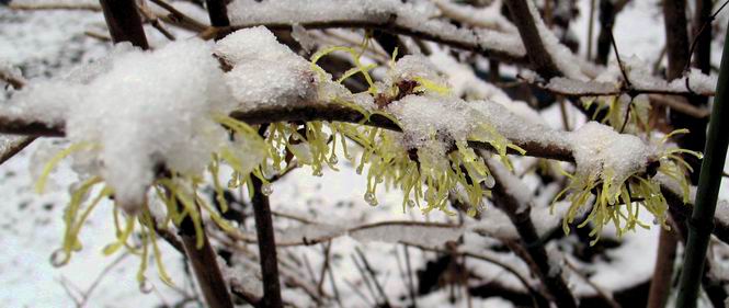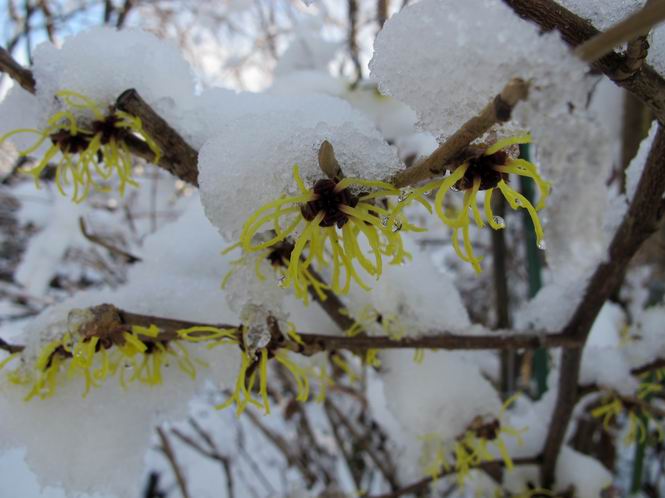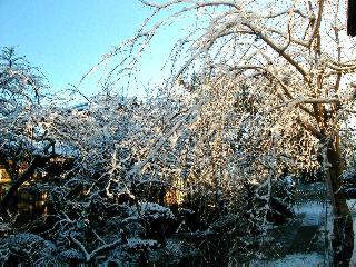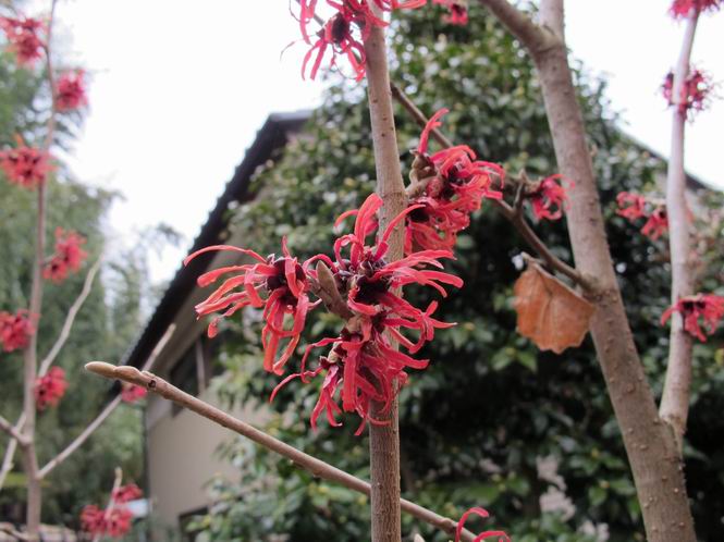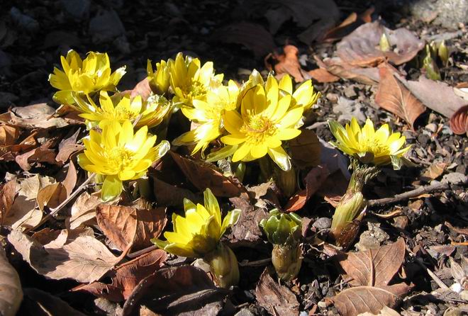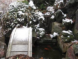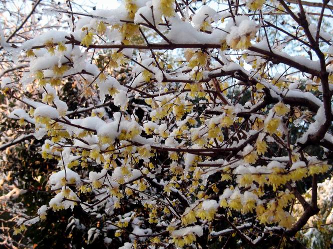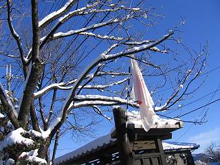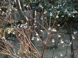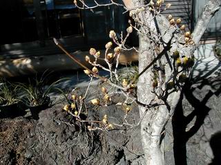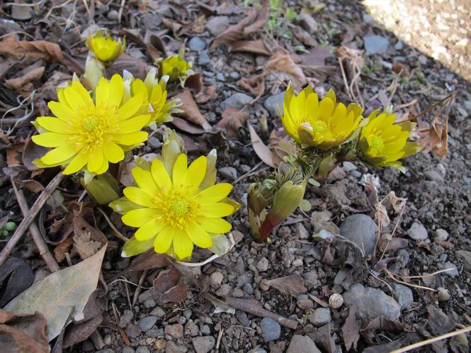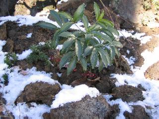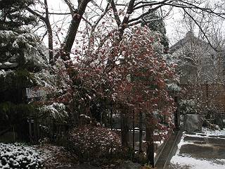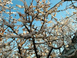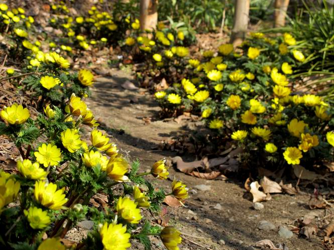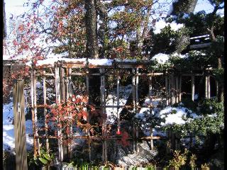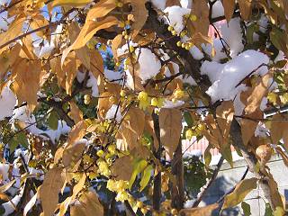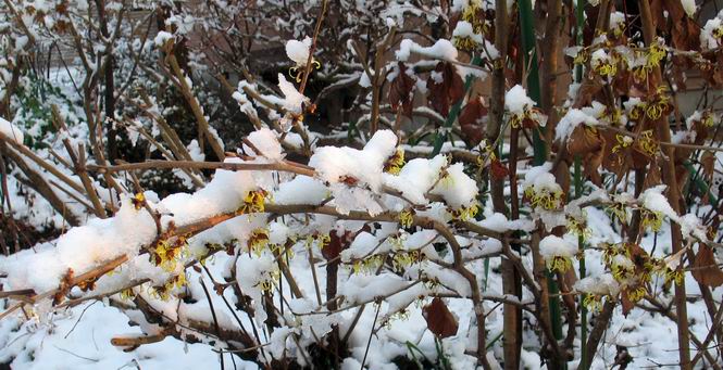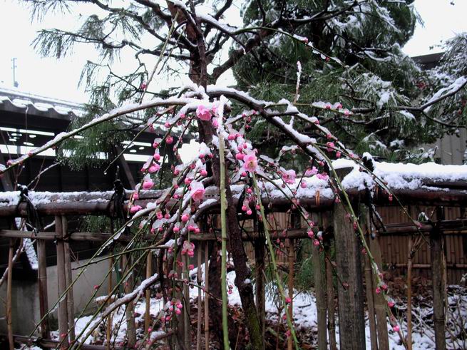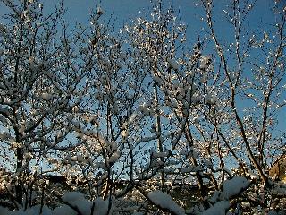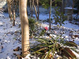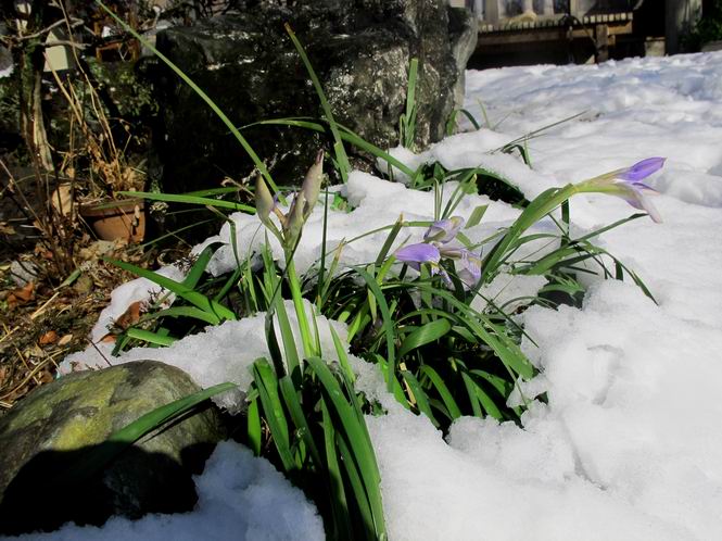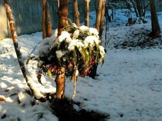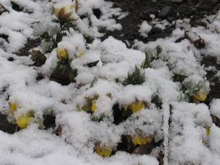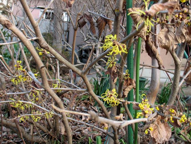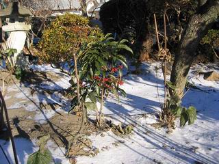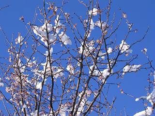| 冬冬冬冬冬冬冬 2001〜2012(2/29)年冬 2012(12/1)〜2014(2/28)年冬へ 2012年2月29日 この冬は2,3度薄っすら白くなった程度でしたが、本日、早朝から降り出した雪は、小庭を真っ白に包み込みました。しばらくぶりに見る雪景色、新鮮に見えるなあ。6:40はほんの薄っすらでしたが、10:20には積雪12cm、久しぶりの大雪です。 【10:20】 【6:40】 2012年2月26日 シナマンサクに遅れること2週あまり、アカバナマンサクが開きました。幼木ですが、大きめなしっかりした花をつけてます。寒い、寒い、と言っても春ですね、木の芽は膨らみ、サンシュユの蕾は先端が黄色くなってきました。庭の角でオキナグサの花芽が伸びはじめました。 アカバナマンサク アカバナマンサク ロウバイ ロウバイ 2012年2月18日 やっと福寿草が咲き出しました。この冬の寒さは植物にとっても厳しいんでしょうね。日中の日差しは強くなったような気がしますが、昨日の朝、今朝も、ほんの薄っすらですが雪が積もってました。紅梅、八重咲きのシダレ梅はまだまだ先のようです。 福寿草 シナマンサク、枯葉も少なくなりました 2012年2月3日 明日は立春ですね、この1週間、特に冷え込んだようですね、31日の朝の気温が−5℃でしたよ。花の乏しいこの季節、遅咲きのロウバイがやっと1/3ほど開花しました。空の蒼さに映えて輝いてました。まだ日本海側には大雪、雪崩注意報が出ているとか、心配ですね。降らなくても、降り過ぎても生活に影響が出てしまいますね。 やっと3分咲きになったロウバイ 光線の関係で鮮明さがイマイチですが、こんな感じの小木です。 マンサクがいくつか咲き出しました、昨年から比べると遅いですねえ。 2012年1月29日 例年ですと立春にはチラホラ咲いているフクジュソウですが、まだ開花までには1週間はかかるでしょう。今年は遅いですね。やっと見頃を迎えたロウバイを撮ろうとしたら足元にナメコの株、表面はちょっと乾いているようですが、食べられるかな。 フクジュソウの花芽、まだ1週間以上かかるかな。 ナメコ一株、凍っているようだが食べられるかな。 2012年1月19日 1ケ月ぶりの更新となってしまいました。ロウバイといいますと、12月中に満開を迎えるところもあるようですが、やっと葉が少なくなって、チラホラですが咲き出しました。植えてある場所が比較的暖かいのでしょうか、それとも? 落葉を掻き分けてみますと、福寿草の蕾が大分膨らんでました、もうすぐ大寒ですね、立春もそこまで。 やっと咲き出したロウバイ 黄葉した葉を残すロウバイ 2011年12月14日 12月もあっという間に真ん中まで来てしまいました。寒暖の激しい師走、紅葉の残る小庭に出てみました。バイカツツジの紅葉です。上のガクアジサイは霜にやられ黒く変色してます。下の緑は洋物のシャクナゲです。季節の変化を感じますね。 バイカツツジの紅葉 バイカツツジの根本にイカリソウの紅葉、その奥の紫色のイカリソウは真っ青です。点々とマンリョウの若木 イカリソウの奥にやっかいもののカリンの実が積んであります。利用したのはほんの2,3ケでした。 ブルーベリーの紅葉です。1月の中旬まで見られます。 浅間の石に植えたミセバヤの紅葉です、緑はシノブでこの種は春に落葉します。 岩に植え込んだオカメナンテンです、真っ赤になりました。 カンアヤメが咲き出しました。 昨年より1ヵ月半も早いんです。 バラ、また咲いてます。色が薄くなりましたが、花の少ない季節、キレイですね。 2011年2月27日 2月もあと一日、やっと我が家の紅梅が咲き始めました。幼木の枝垂れですが、花が大きく濃いピンクが寂しい庭を引き立ててます。下のカンアヤメが見上げてました、「こっちも見てよ」、って。 枝垂れ梅(紅梅) アップでもう一枚 ミスミソウ(鉢物です) ミスミソウ フクジュゾウ、茎が伸びてしまって末期ですね、落花も間近でしょう 2011年2月21日 マンサクの仲間って沢山あるんですね。マンサク、シナマンサク、トキワマンサク、ニシキマンサク、ハヤザキマンサク、ベニバナトキワマンサク、アカバナマンサクなどなど。良く調べていくとややこしくなってしまいます。当庭の葉が落ちないで咲くマンサク、と書いたのはシナマンサクのようです。 アカバナマンサク アカバナマンサク 2011年2月15日 3度目の雪が降りました。夜半過ぎには止んだようです。庭はグショグショ、梢の雪が頭にボトン。朝日に照らされた樹々が輝いてます。フクジュソウも日差しを浴びて開きました。春はすぐそこまで。 雪景色 綿帽子をかぶったマンサク マンサク フクジュソウ カンアヤメ 2011年2月9日 北陸、山陰の各地は豪雪で大きな被害が出ているようですね、雪解けが待ち遠しいことと思います。今朝方、太平洋岸を低気圧が通り、当地にあっては、やっと初雪となりました。春の淡雪というところでしょうか、沢山積もることはないでしょうが、季節のものですね。 6:30AM頃から降り出しました、当地では初雪です。 激しく降ってました7:30AM頃 