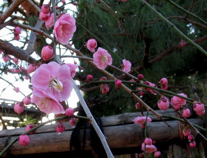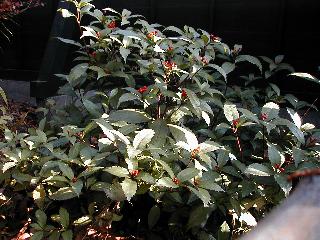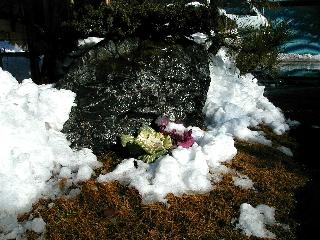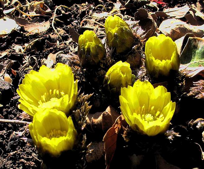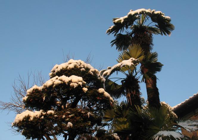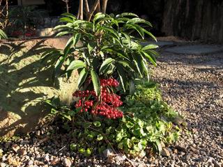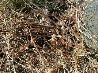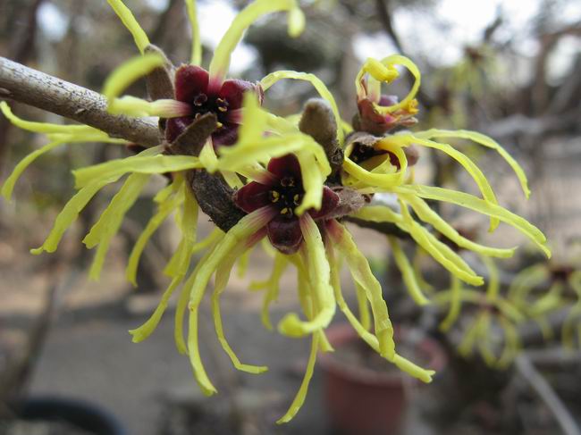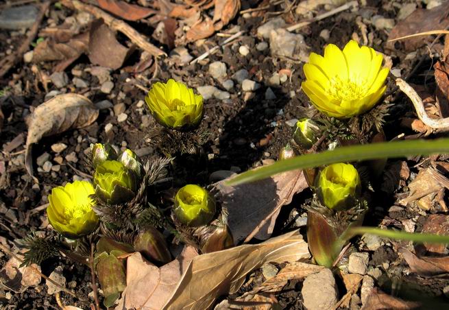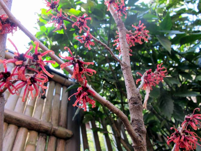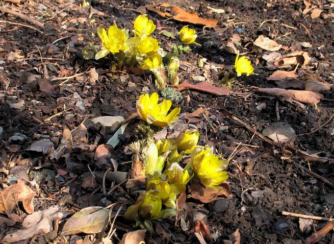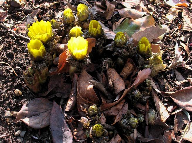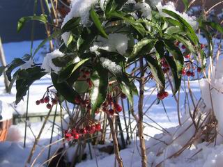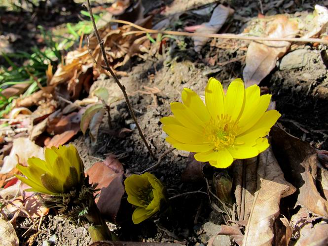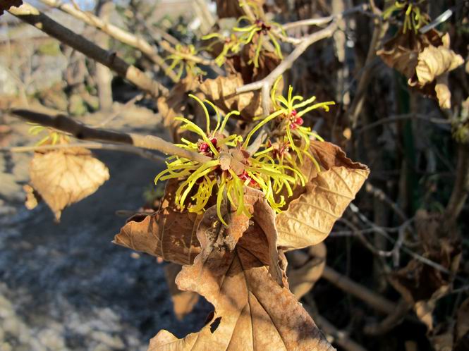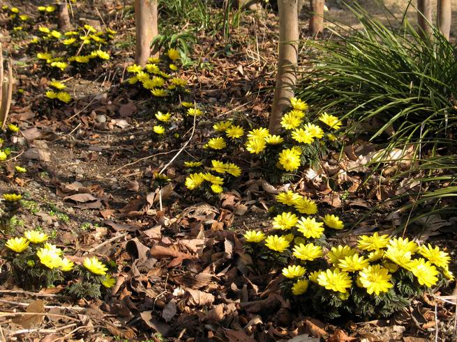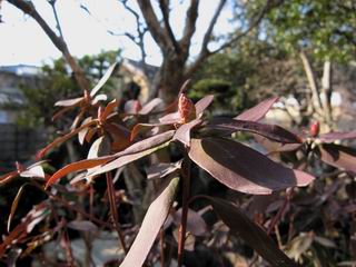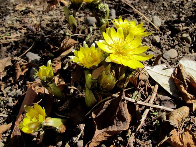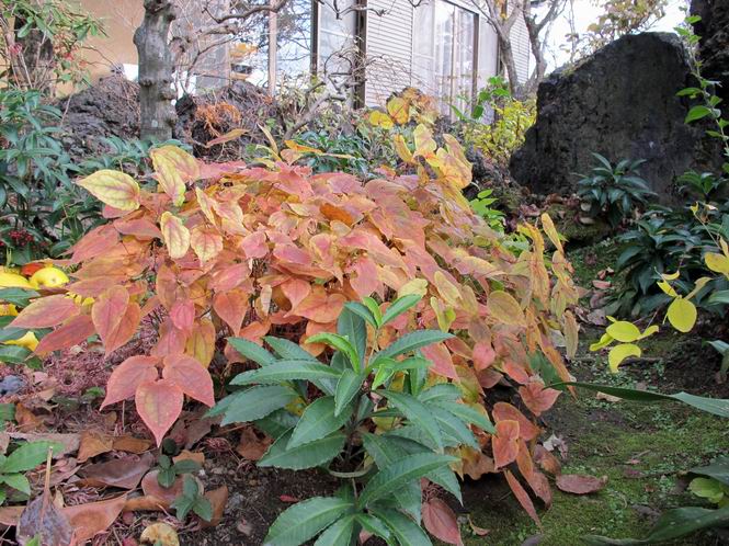 | 冬冬冬冬冬冬冬 2001〜2012(2/29)年冬 2012(12/1)〜2014(2/28)年冬へ 2012年2月29日 この冬は2,3度薄っすら白くなった程度でしたが、本日、早朝から降り出した雪は、小庭を真っ白に包み込みました。しばらくぶりに見る雪景色、新鮮に見えるなあ。6:40はほんの薄っすらでしたが、10:20には積雪12cm、久しぶりの大雪です。 【10:20】 【6:40】 2012年2月26日 シナマンサクに遅れること2週あまり、アカバナマンサクが開きました。幼木ですが、大きめなしっかりした花をつけてます。寒い、寒い、と言っても春ですね、木の芽は膨らみ、サンシュユの蕾は先端が黄色くなってきました。庭の角でオキナグサの花芽が伸びはじめました。 アカバナマンサク アカバナマンサク ロウバイ ロウバイ 2012年2月18日 やっと福寿草が咲き出しました。この冬の寒さは植物にとっても厳しいんでしょうね。日中の日差しは強くなったような気がしますが、昨日の朝、今朝も、ほんの薄っすらですが雪が積もってました。紅梅、八重咲きのシダレ梅はまだまだ先のようです。 福寿草 シナマンサク、枯葉も少なくなりました 2012年2月3日 明日は立春ですね、この1週間、特に冷え込んだようですね、31日の朝の気温が−5℃でしたよ。花の乏しいこの季節、遅咲きのロウバイがやっと1/3ほど開花しました。空の蒼さに映えて輝いてました。まだ日本海側には大雪、雪崩注意報が出ているとか、心配ですね。降らなくても、降り過ぎても生活に影響が出てしまいますね。 やっと3分咲きになったロウバイ 光線の関係で鮮明さがイマイチですが、こんな感じの小木です。 マンサクがいくつか咲き出しました、昨年から比べると遅いですねえ。 2012年1月29日 例年ですと立春にはチラホラ咲いているフクジュソウですが、まだ開花までには1週間はかかるでしょう。今年は遅いですね。やっと見頃を迎えたロウバイを撮ろうとしたら足元にナメコの株、表面はちょっと乾いているようですが、食べられるかな。 フクジュソウの花芽、まだ1週間以上かかるかな。 ナメコ一株、凍っているようだが食べられるかな。 2012年1月19日 1ケ月ぶりの更新となってしまいました。ロウバイといいますと、12月中に満開を迎えるところもあるようですが、やっと葉が少なくなって、チラホラですが咲き出しました。植えてある場所が比較的暖かいのでしょうか、それとも? 落葉を掻き分けてみますと、福寿草の蕾が大分膨らんでました、もうすぐ大寒ですね、立春もそこまで。 やっと咲き出したロウバイ 黄葉した葉を残すロウバイ 2011年12月14日 12月もあっという間に真ん中まで来てしまいました。寒暖の激しい師走、紅葉の残る小庭に出てみました。バイカツツジの紅葉です。上のガクアジサイは霜にやられ黒く変色してます。下の緑は洋物のシャクナゲです。季節の変化を感じますね。 バイカツツジの紅葉 バイカツツジの根本にイカリソウの紅葉、その奥の紫色のイカリソウは真っ青です。点々とマンリョウの若木 イカリソウの奥にやっかいもののカリンの実が積んであります。利用したのはほんの2,3ケでした。 ブルーベリーの紅葉です。1月の中旬まで見られます。 浅間の石に植えたミセバヤの紅葉です、緑はシノブでこの種は春に落葉します。 岩に植え込んだオカメナンテンです、真っ赤になりました。 カンアヤメが咲き出しました。 昨年より1ヵ月半も早いんです。 バラ、また咲いてます。色が薄くなりましたが、花の少ない季節、キレイですね。 2011年2月27日 2月もあと一日、やっと我が家の紅梅が咲き始めました。幼木の枝垂れですが、花が大きく濃いピンクが寂しい庭を引き立ててます。下のカンアヤメが見上げてました、「こっちも見てよ」、って。 枝垂れ梅(紅梅) アップでもう一枚 ミスミソウ(鉢物です) ミスミソウ フクジュゾウ、茎が伸びてしまって末期ですね、落花も間近でしょう 2011年2月21日 マンサクの仲間って沢山あるんですね。マンサク、シナマンサク、トキワマンサク、ニシキマンサク、ハヤザキマンサク、ベニバナトキワマンサク、アカバナマンサクなどなど。良く調べていくとややこしくなってしまいます。当庭の葉が落ちないで咲くマンサク、と書いたのはシナマンサクのようです。 アカバナマンサク アカバナマンサク 2011年2月15日 3度目の雪が降りました。夜半過ぎには止んだようです。庭はグショグショ、梢の雪が頭にボトン。朝日に照らされた樹々が輝いてます。フクジュソウも日差しを浴びて開きました。春はすぐそこまで。 雪景色 綿帽子をかぶったマンサク マンサク フクジュソウ カンアヤメ 2011年2月9日 北陸、山陰の各地は豪雪で大きな被害が出ているようですね、雪解けが待ち遠しいことと思います。今朝方、太平洋岸を低気圧が通り、当地にあっては、やっと初雪となりました。春の淡雪というところでしょうか、沢山積もることはないでしょうが、季節のものですね。 6:30AM頃から降り出しました、当地では初雪です。 激しく降ってました7:30AM頃 