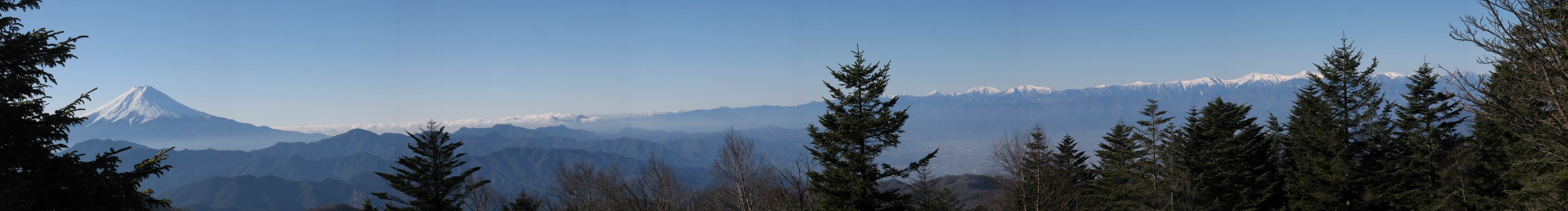 牛奥ノ雁ケ腹摺山山頂から富士山〜南アルプス