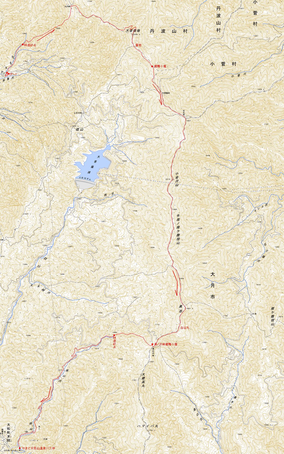 コース概略図    国土地理院1/25000地形図に赤色で付記    戻り