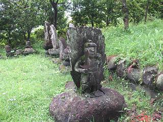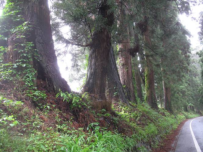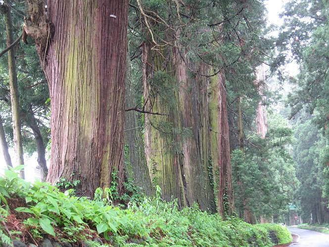 | ウォーキング日(5日目) 2010年5月27日 曇り一時晴れ 単独 コース 概略地図はこちら 徳次郎宿→大沢宿→鉢石宿→輪王寺→東照宮→二荒山神社 夜半まで強い降りだったが今はやんで朝霧に包まれている。4:40徳次郎の宿をあとにする。北西方向から西方向へと緩いカーブを描きながら進む。雑木の並木に造られた小道を辿り、集落に出ると狭い路側帯を歩く。上徳次郎を過ぎると一里塚というバス停がある。祠が草むらの中に祀られている、多分この辺が石那田一里塚だろう、5:02。直ぐに船生街道を右に分け、日光街道植樹記念碑があり、また一里塚というバス停があり、そこにも石仏がある5:06、どっちがどっちだろう、この間の距離は300mほどだろう。二宮尊徳先生遺跡石那田堀なる木柱を過ぎ、猿倉街道を左に分ける。人家が途切れのどかな風景が広がる、田川を渡り石那田八幡神社を左に、真っ直ぐな雑木の並木をしばらく進む。ほどなく新渡神社6:03着、並木の桧の高木を眺めながら朝食、早朝の散歩だろうか2名居合わせて、あれこれ質問が飛んでくる。ここを発つと6:30直ぐに日光市に入り、山口交差点を過ぎると日光杉並木に入る、6:53。 石那田の田園風景 雑木、桧の並木の間に地蔵尊、別名おねがい地蔵とか エドヒガンの並木 桧の並木 シャガ 桧の高木、新渡神社付近 間もなく宇都宮と別れ日光市に入る 正面右が杉並木、左はR119 杉並木の起点:松平正綱公が杉並木を植栽して東照宮に寄進したと記されている 杉並木とR119が旧日光市街に入るまで、歩道と分かれたり、合流したりしながら進む。杉並木は、普通地域、保護地域、特別保護地域に分れ道標、説明版等があちらこちらに設置され大木の間を行き来しながら楽しく歩くことができる。解説によれば杉が生育するには沢山の水を必要とするようである。この地は男体山の伏流水がアチコチで湧き豊富なようである。並木が杉でなくもし松だったらどうだったのか、もう昔に消滅してしまっているかな。先人は偉い、調査・研究を重ねこの地に合った杉を植えたのだろう。 霧の漂う杉並木 霧の漂う杉並木 テンナンショウ 御成街道水無一里塚、日本橋から32里、128kmとか 歩車両用、道路下は根を傷めない様な構造になっているようだ 石仏が並木の間に点々と ここも歩車両用、ここは盛り土して植えたのかな 寄せ植えした感じのする株 さくらすぎ、桜と杉がドッキングしている 一里塚の上で大きくなりました、空洞に5,6人は入れそう 見事に大木が並ぶ、サポーター付になっているようです 見事に大木が並ぶ 今市の追分、左日光街道、右日光例弊使街道 追分地蔵尊 道標、左宇都宮、右鹿沼となっている 日光例弊使街道の並木 今市の市街地 美味しい水と書いてあったが・・・・・ アチコチで杉並木の中に水が引いてある これは一里塚 ここは山砂が敷いてあり散策するのに歩きやすい お堂と石仏 大きな朽ちた株、屋久島のウイルソン株ほどではないが・・・、でも、でかいよ ここにもお堂と石仏 並木太郎と書いてあった株、まっすぐ良くのびたものだ、周りに沢山あって支えられていたのかな この先で杉並木が終り 右手に東武日光駅 旧日光のメインストリート 東照宮に近づきました、この辺が旧鉢石宿のようです 神橋のすぐ下流にかかる、日光橋 神橋 杉並木寄進の言われ碑 石段を上れば世界遺産2社1寺 【2社1寺】 輪王寺 東照宮 二荒山神社 7:27御成街道水無一里塚、8:34さくらすぎ、9:04今市の追分地蔵、10:46並木太郎、11:17東武日光駅、11:43神橋、12:12二荒山神社。本日の所要時間は、7時間32分、一応日光街道は完歩、列車を乗り継ぎ帰宅して、明朝二荒山神社の駐車場から二荒山神社中宮祠まで歩くことにする。 日程表へ戻る |