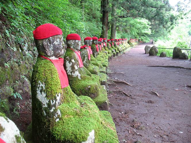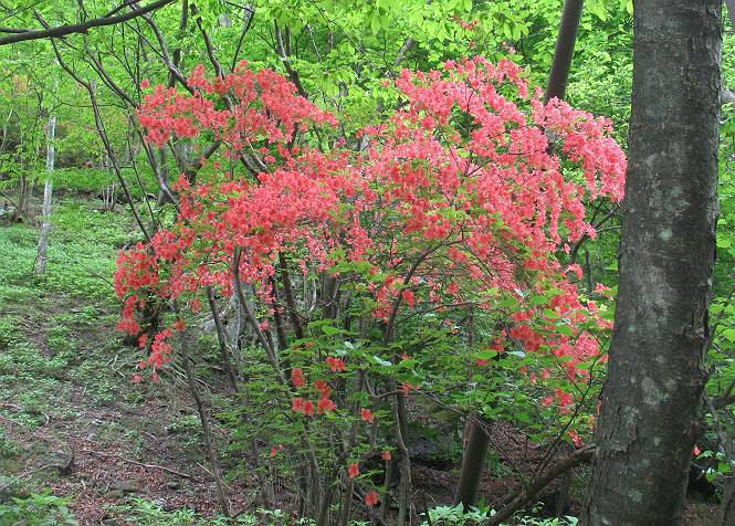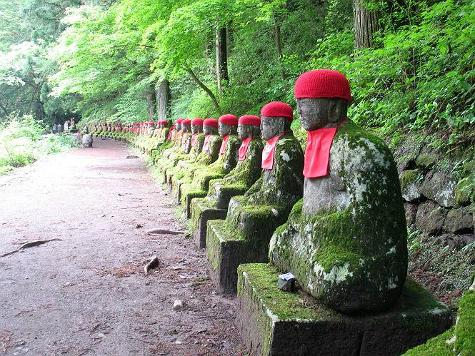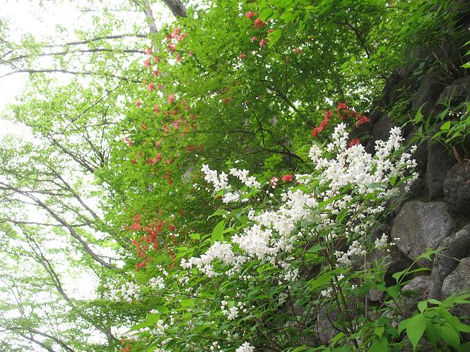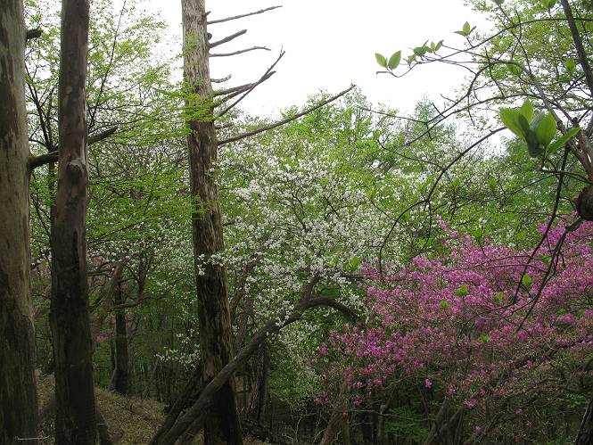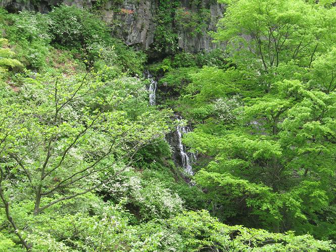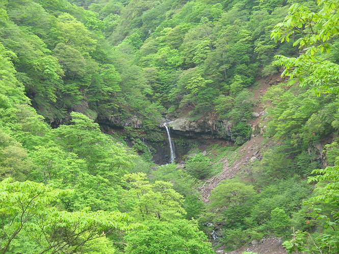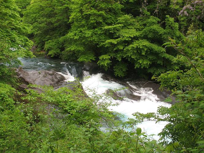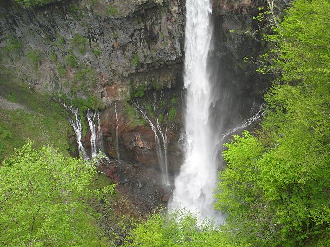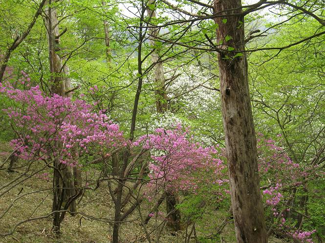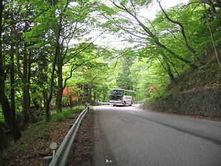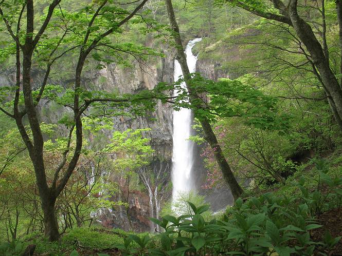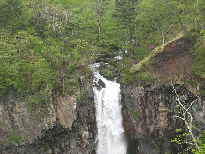 | ウォーキング日(6日目) 2010年5月28日 曇り時々晴れ 単独 コース 概略地図はこちら 二荒山神社→憾満ケ淵→(いろは坂下り線)→中宮祠→二荒山神社中宮祠 二荒山神社の駐車場を6:22出発する。ここのPは、早朝は徴収係が不在だが、入口は開放されているので事後処理OKと昨日聞いておいた。R120を横断し小道を抜けて大谷川を渡って憾満ケ淵Pに出る。遊歩道に入り、慈雲寺本堂、大谷川の渓谷(憾満ケ淵)、並び地蔵を見ながら歩く、この景観は日光のベスト10に入るだろう。並び地蔵を過ぎると石段を上って左に曲がり林道に突き当たる。左折すると鳴虫山、道なりに高速道路に沿って進むとやしおの湯方面である。清滝町を通り細尾大谷橋でR120に出る、7:51。 小道を行くと磐裂(イワサク)神社の脇を通る 慈雲寺本堂 大谷川の渓谷 慈雲寺の西側に山裾に沿って並ぶ石仏 並び地蔵東側から 並び地蔵西側から ウツギ トチノキ ヒメウツギの花 清滝町を通りR120細尾大谷橋交差点 ここの標高744m まだ薄い雲がかかっているが、中禅寺湖に着く頃には晴れれば良いが、時々通過していく車を右に大谷川の河川敷に咲くウツギやフジを見ながら快調に進む、8:22馬返着、小休止。ここから車なら逆走だが、下り線を歩いて行く。いろは坂は車両については上下線使い分けているが、歩行者については通行の可否等決め事があるのだろうか。いろは坂の出来る前は登山道があったわけだから問題はないと思うが、万一の場合は自己責任かな。二つ橋を渡り、二荒山の境内に入ると不動坂を上りきるまでヘアピンカーブの連続だ。車の走るインコースを拾いながら、観光しながら上って行く。時間帯のせいか下ってくる車は少ない、猿にも遭わなかった、9:21中の茶屋跡、10:01不動坂を登り切る。 交差点付近から眺める男体山 河川敷にはフジの花 道路脇にはヤマガラシの花 馬返し、いろは坂上下線の分岐点 満開のヤマツツジを見ながら下り線を上る 幸橋 さかえばし 右手岸壁から流れ落ちる小さな滝 発電所入口で二荒山の境内に入る 女人堂旧跡 方等滝 般若滝 ヤマツツジとウツギ ウワミズザクラ 中の茶屋跡付近 これが旧登山道か? 中の茶屋跡 不動坂の壁面に安置されている不動尊 左手P1332の北側斜面のシロヤシオが目に入る、早速藪に入り散策する。シロヤシオは満開、ミツバツツジは終盤、新緑の森はきれいだったが、鹿の糞の臭さにはマイッタ。10:17、道路に戻って歩き出したが、折角なので華厳の滝に立ち寄る。 【不動坂を上りつめた左手P1332の北側斜面のシロヤシオとミツバツツジ】 【華厳の滝】 ![]() 新緑と水量が多目で迫力のある滝にしばし見入る。アジア系外国人観光客の多いこと、滝付近では日本人よりはるかに多いと感じた。社山を南に、中善寺湖畔を歩き二荒山神社中宮祠の鳥居をくぐる。鳥居の前には男体山奥宮登拝口とある。入ると“登拝の定め”なる掲示があり、期間、時間、入山料が決められている。奥の登拝門まで進み引き返し中禅寺湖側に下った、11:16。 みやげもの店街 中宮祠 観光客、団体かな こちらは遅れ組み? 巫女石、女人禁制をやぶった巫女の姿だとか 二荒山神社中宮祠付近の標高1274m 二荒山神社中宮祠 二荒山神社中宮祠、右が登拝門 本日の所要時間は、4時間54分、時々日が差し傘の出番はなかった。不動坂上のシロヤシオはきれいだった。いよいよ、最終ゴールまでこの先20kmの所まで来た。明日晴れば良いが、予報では6月2日以降となりそうだ。 日程表へ戻る |