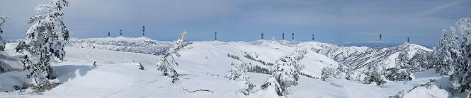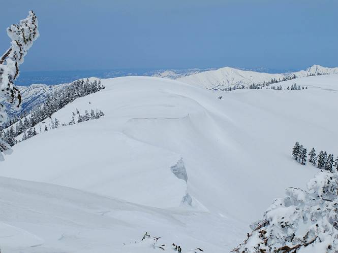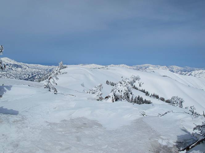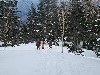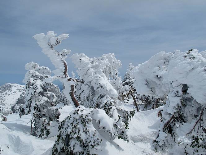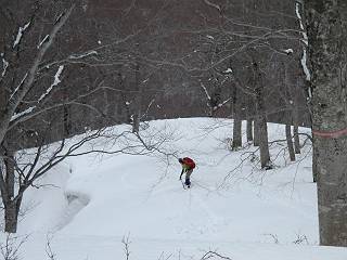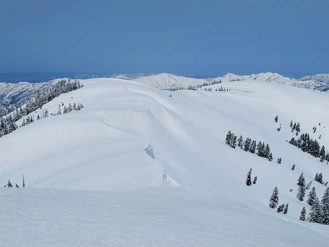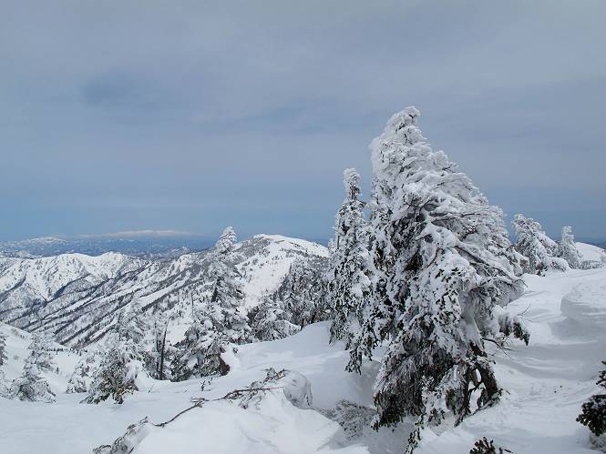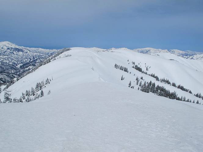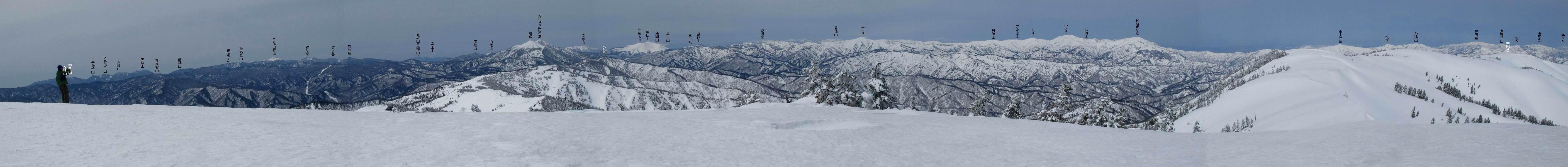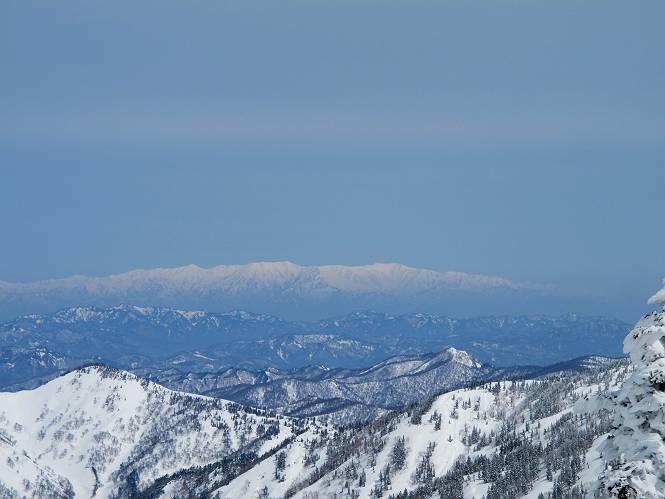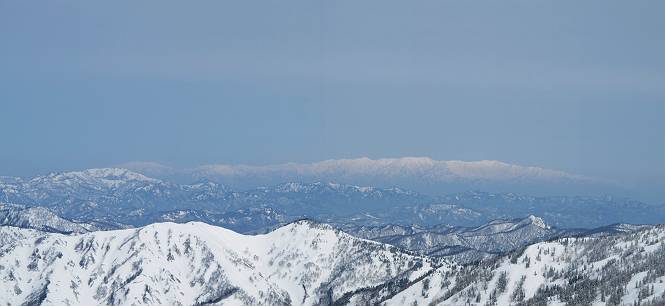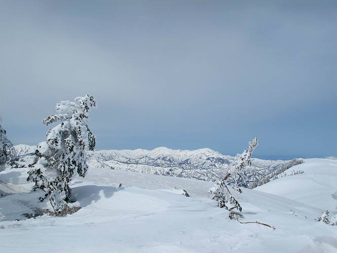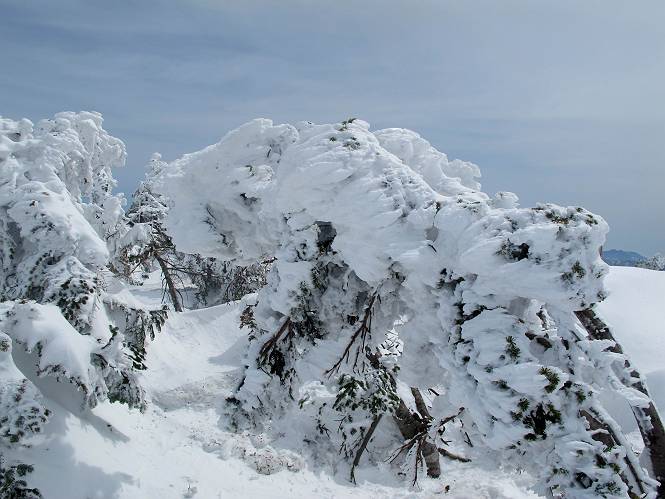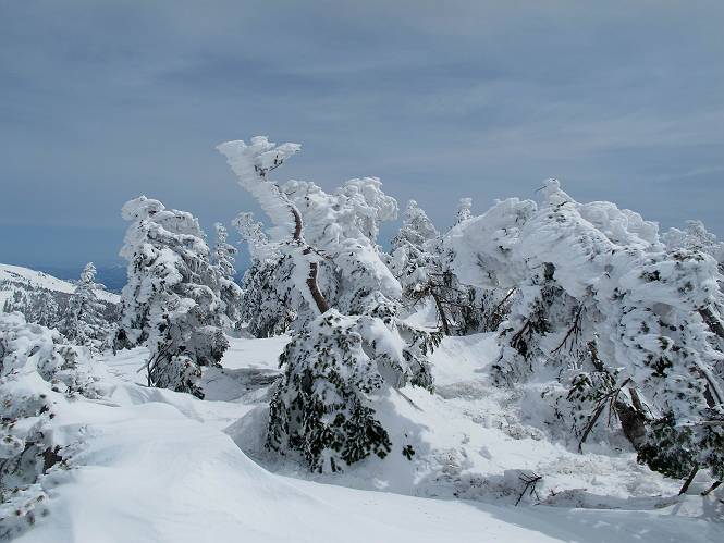 | 【後編:山頂展望、帰路】 前編に戻る 本日2番目の登頂、休憩中の先行者と言葉を交わし、話題はもっぱら新雪の歩きにくさだった。曇らないうちに、一周りカメラに収める、薄い雲に覆われているが、意外に遠望はきく、富士山、浅間山、妙高山、苗場山、飯豊山などなど。スノーシュー3番手、山スキー4番手男性到着、山座同定に花が咲く、山頂の賑わいも、今日はこれまでか。 【山頂の眺望 1】 北西〜北〜北東 中ノ岳〜三岩岳 画像クリック拡大 中門岳〜磐梯山 画像クリック拡大 以下9枚は中ノ岳から右回りです。 中ノ岳、越後駒ケ岳周辺 越後駒ケ岳、守門岳、浅草岳、中門岳周辺 未丈ケ岳、守門岳、中門岳周辺 浅草岳周辺 二王子岳(?)周辺 坪入山、飯豊山周辺 飯豊山周辺 飯豊山、三岩岳周辺 飯豊山、三岩岳周辺 【山頂の眺望 2】 東〜南〜北 女峰山〜中門岳 画像クリック拡大 以下13枚は女峰山から右回りです。 女峰山周辺 日光白根山周辺 赤城山、富士山遠望、燧ケ岳周辺 燧ケ岳、至仏山周辺 燧ケ岳、至仏山周辺 燧ケ岳 武尊山 至仏山、右奥は浅間山 平ケ岳周辺1 平ケ岳周辺2 越後沢山周辺、その奥は妙高山、火打山 中ノ岳、越後駒ケ岳周辺 中門岳周辺 【駒ケ岳から中門岳にかけての雪庇&着雪】 天空はほとんど曇り、太陽に不気味な輪、曇り空に長居は無用、早めの下山となった。解けだした新雪、締まった下の層が滑り台となる、アイゼンがダンゴ状となった時は危ない、急勾配のは要注意、10:45駒ノ小屋。樹林帯の中は深い新雪が幸いし、快調に下る、上る1+3+2人に会う。11:32ボーダーが追いついてくる、一気に下るのかと思いきや、勾配が緩く沈んでしまうようで、ボードを引っ張って後についてくる。オオシラビソからブナ帯へ、あっという間に抜き去って行った。ところが、4,5ヶ所の急降下、新雪が滑り往生する、距離にしたら5m〜30mの範囲、ピッケルを深くさして、一歩一歩降下した、11:50標柱山頂4.1km通過、12:00国有林案内板通過。ここからはグシャグシャな道、12:14登山口まで戻り、アイゼンを外す。林道、細い近道、林道を歩いて12:39滝沢標柱、12:42駐車場に戻る。 山頂はほとんど曇り 天空の太陽には笠が あっという間に駒ノ小屋へ 山頂を振り返る 往路往生した深い新雪、意外にスムーズに 小屋を巻いて上るスキーヤー 燧ケ岳もそろそろ見納め オオシラビソの樹林帯 山頂に向かうGr 深い新雪も下りはラクチン ボーダー、おっとっと、ボードを外して引っ張って・・・ ブナ林でまた抜いていった マンサク マンサク 山頂まで4.1km標柱通過 長い急坂をヒッコラ下って国有林案内板へ ここからグシャグシャ道 登山口到着、アイゼンを外す 林道、小道を歩いてまた林道へ キレイ、滝沢の流れ 往路ツルツルだった道もすっかり解けて・・・ 滝沢の林道入口 総所要時間は、7時間38分、往路の新雪にはマイッタ、マイッタ、これ以外は上々かな、もう少し天気が持つかと思ったが、曇るのが早かった、これは早めに帰れのシグナルか。本日の登山者はボーダー、スキーヤーを入れて10人と思う、ウイークデーはこんなものかな。5月中旬までは、結構楽しめるとか、晴天を狙って春山を楽しんで下さい、オススメですよ。 前編に戻る |