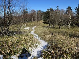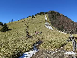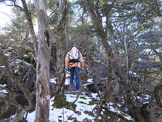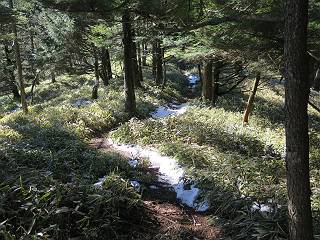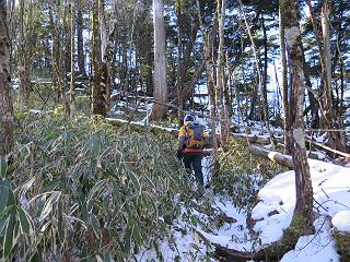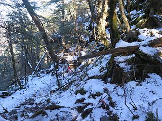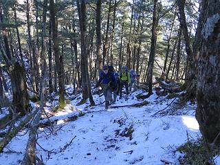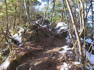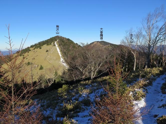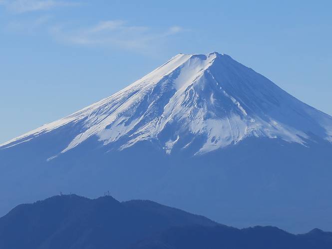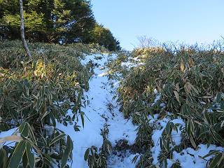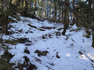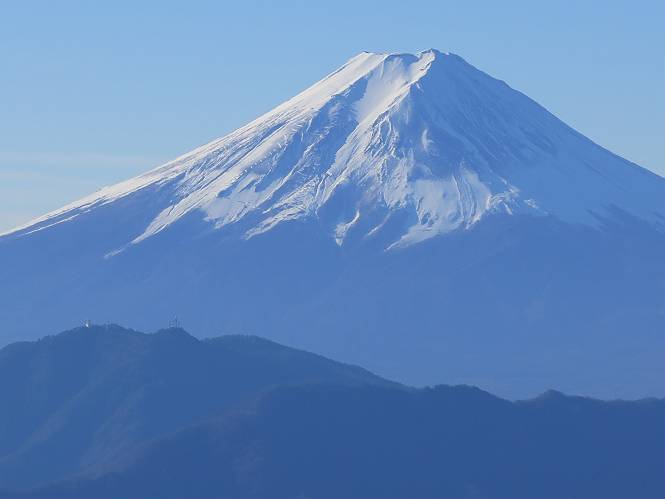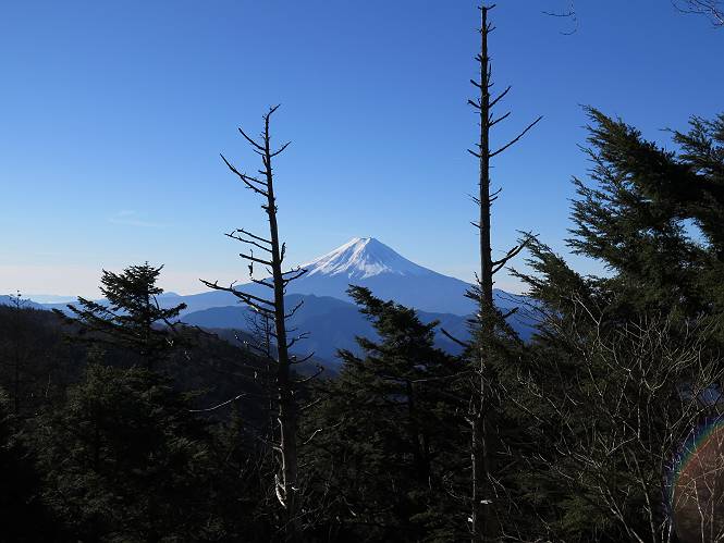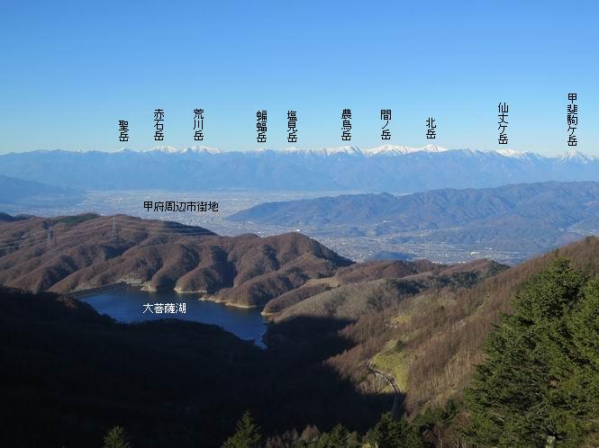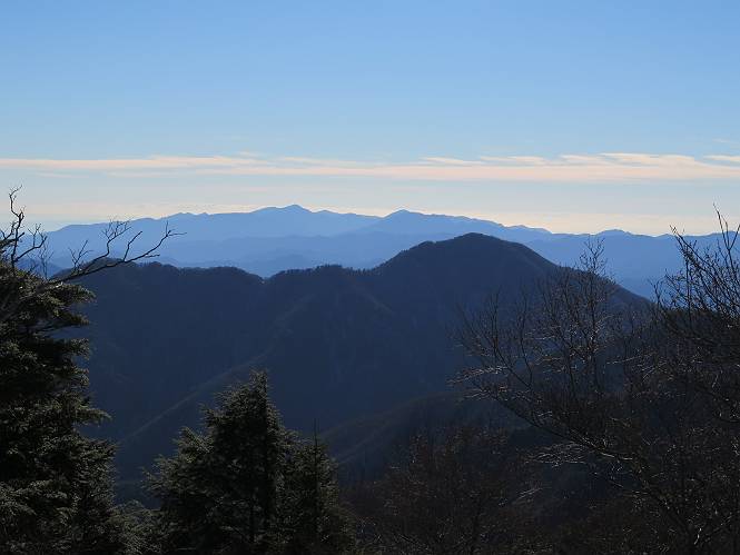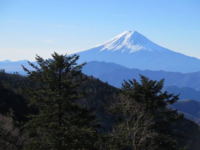 | 【後編:石丸峠→小金沢山→牛奥ノ雁ケ腹摺り山→小金沢山→石丸峠→上日川峠】 前編へ戻る 石丸峠からトラバースぎみに緩やかに上り、7:44牛ノ寝通りを左に分ける。短い急坂を直進すると広々した天狗棚)に出る、標高点の1957のようだ。振り返ると熊沢山&大菩薩嶺、熊沢山の防火帯の雪が、いかにも「ここからこっちは東京都の管理下じゃ、・・・・・」、と告げているよう。ちょっと下って8:01狼平へ出る、ここから小金沢山まで、小さいアップダウンが数ヶ所あるが、展望はない、8:41-8:59小金沢山。小金沢山からの富士山、何度見ても良い景色だ、東奥多摩から丹沢の展望も雄大な眺めだ、ゆっくり休憩しよう。 石丸峠から緩やかに上ると、 牛ノ寝通りを左に分け、直進の短い急坂へ 広々した天狗棚(標高点1957)に出て、振り返ると熊沢山&大菩薩嶺 南東には、これから向かう狼平を介して、小金沢山、牛奥ノ雁ケ腹摺り山を展望する 天狗棚から南アルプス 同、丹沢山塊と左に相模湾 同、南アルプス展望 画像クリック拡大 左から仙丈ケ岳、駒ケ岳 左から農鳥岳、間ノ岳、北岳 左から荒川岳、蝙蝠岳、塩見岳 左から上河内岳、聖岳、赤石岳、荒川岳 下って、笹原へ、 真ん中辺に狼平の道標あり 笹原の南端から小金沢山への上りとなる 小さいアップダウンが4,5ケ所あり 目印を見ながら樹林帯の中の道を進む、山頂まで展望なし 小金沢山山頂、展望良好、南アルプスは枝間から辛うじて 小金沢山山頂から富士山 小金沢山山頂から雲取山〜丹沢山塊〜 画像クリック拡大 丹沢山塊 筑波山遠望 雲取山 鷹ノ巣山 大岳山 ここから登山道は、南に少し下って左に弧を描き、樹林帯を抜ければ牛奥ノ雁ケ腹摺り山の山頂である、9:35-9:54。素晴らしい富士山に、付け加える言葉は不用、見入るのみ。居合わせた2名、一名は上日川からピストン、一名はこの直下の林道から最短で上がってきたようだ。そして私、ともに本日の最終ポイントを牛奥ノ雁ケ腹摺り山としている。残念なのは南アルプスが枝間からでないと見えないことだ。小金沢山も山頂からは南アルプスは見えないが、ちょっと南から甲斐駒ケ岳〜聖岳まで一望できる。 富士山を眺めながら牛奥ノ雁ケ腹摺り山へ 少々、樹林帯を抜ければ 牛奥ノ雁ケ腹摺り山山頂 牛奥ノ雁ケ腹摺り山山頂からの富士山 手前は三ツ峠山、御巣鷹山、木無山、本社ケ丸 山頂南西に林道への道あり、最短で来られるとか 山頂を下って、 山頂を後に、往路を戻り、10:27小金沢山、11:01狼平、11:17牛ノ寝通り分岐、11:22石丸峠、行き交うハイカーの数40-50人、素晴らしい展望に会う人、皆笑顔だった。 樹林帯へ、時々ハイカーと会う、満足そうな顔・顔・顔 小金沢山北側斜面、一部凍結あり、要注意 テープを確認しながら・・・ 石丸峠に戻りました 石丸峠から熊沢岳南斜面をトラバースして、最後の富士山&南アルプスをカメラに収め、カラマツ林、雑木林を下って11:48林道へ出て、11:51再び林内へ、緩やかな道を進めば、12:00小屋平でバス停のある県道に出る。ここから山間で2つの渡渉、ちょっと上り返せば、上日川峠に出る、12:29。 小金沢山(&天狗棚)と富士山 陽ざしを受けて、富士山の左斜面が光っていた、凍結しているのかな? これが最後、富士山&南アルプス 画像クリック拡大 聖岳、間ノ岳に雲が・・・ 熊沢岳南斜面をトラバースして、カラマツ林から雑木林へ 急坂を少々下って、 林道へ 右手に進むと直ぐに左に入る道あり、 下って、間もなく 小屋平で県道に出る、 バス停あり ここからは緩やかな下り、登り ハイク用コース分岐あり、上日川峠へ直進 渡渉あり、石をポンポンポン もう一つ、ポンポン ウラジロモミの美林を抜けると 上日川峠に出る 総所要時間は、7時間42分、全般は強風と寒さに悩まされたが、小金沢山手前で風は止み、気温の上昇とともにグシャグシャ道に足をとられたが、美しい富士山に大満足の山行だった。食糧、水、雨具&防寒具、アイゼン等背負い込んだが、これは保険みたいなものだ。 前編へ戻る |