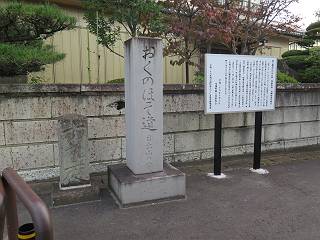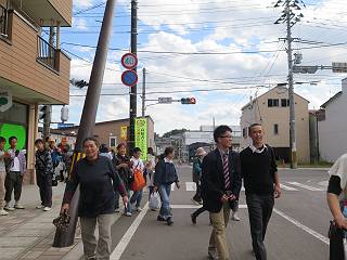 | 第5日目:須賀川→二本松 1日目へ、2日目へ、3日目へ、4日目へ、6日目へ 本日の予定は38.2km、1時間早めにした、3:52地下道の標識を出発する。くぐって昨日下見した道を進むと線路沿いである。3:56地図を広げて眺めるも、全くわからず。こんな場合、山でしたら戻りますが、道路ですから進みながら軌道修正します。勘所で県道355に出よう、と住宅地の小道を行くが、行止まったりして、混乱のダブルパンチだ。大きめの通りも横切った、しかし県道355の標識はない。ではR4に出よう、坂道を上って工業団地に出た、左に信号が見えたので右に進めば合流するだろう、しかし、焼却場で行止まった。戻って、右折してしばらく進むと4:46R4に出た、歩道橋があり“須賀川市森宿”、と書いてある。もう安心、昨夕入った日帰り温泉、5:13新幹線下を進むと明るくなってきた。県道355との最短部、県道109を歩いて、5:49正規ルートに戻った、少々先で阿武隈川と接近し、その辺が笹川宿のようだ。 本日の出発点、県道355、 歩行者用の地下歩道 歩道を抜ける 昨日確認したはずの道、どうもおかしい?、先に進んで何とかなるだろう、と行動したが、・・・・ グルグル回って、やっとR4へ出た、そばに須賀川市森宿歩道橋、あれっ? 昨夕利用した日帰り温泉だ、全然市街地から離れてないぞ 新幹線をくぐり 郡山市に入った、最短で正規ルート出ようと右折して県道109へ入る しばらく進むと東北線に出る 踏切から和尚山と安達太良山 突き当たって左折、県道355に出る、1時間のロス、 街中を進み、阿武隈川に接近する安積永盛駅付近が笹川宿 その先でちょっと脇道に入り、6:26笹原川を渡って左脇道へ、6:32日出山宿に出る。県道355を真っ直ぐ、6:44“日出山”交差点でR49を横断する。道の両サイドは住宅、6:57郡山市小原田郵便局前、ちょっと進むと小原田宿、7:06東北線の踏切を越えると、郡山宿に入る。 5日目の陽が昇った 笹原川のささやきはしを渡る 橋から和尚山と安達太良山 新幹線を右に見て左に入ると、 日出山宿 家並の間を通り “日出山”交差点でR49を横断する ちょっと進むと、小原田宿 古そうだなあ 立派な門の奥に、これは? 直進し東北線の踏切を渡る 郡山宿に入る 繁華街に入り、7:27郡山駅前、7:42逢瀬川を渡り、ガードをくぐる。住宅、商店、工場が道なりに連なり、恥ずかしながら、郡山市の大きさに驚いた。家並は、福原宿、9:04日和田宿を過ぎ、9:27磐越自動車道をくぐるまで続いていたようだ。 郡山駅前の繁華街 逢瀬川を渡る、 磐梯山の頭を見る 造り酒屋 R288を横断 本宮まで12km、こんなもんよ ツタ、紅葉はきれいですね この辺が福原宿のようだ 郡山市富久町で左へ入ると、こんな光景が、電線・電柱が邪魔だけど、和尚山と安達太良山です 松がきれいですね、枝間に和尚山と安達太良山 緩やかに下って、橋を渡る 橋の上から和尚山と安達太良山 街中に入って、日和田宿(郡山市) 磐越自動車道の下を抜けると、 のどかな風景が展開する、和尚山と安達太良山 5日目には良い薬だ また、街中に入る、郡山市日和田町高倉字高倉、10:13高倉宿に入る。田んぼを隔てて、10:17本宮市に入り、五百川を渡る。江戸時代の石碑が点々と街道沿いに、11:05本宮宿へ、街中は至る所除染作業中で、何とも・・・・・。11:11三春方面、県道28が分岐、11:16本宮橋を渡る。橋から眺める安達太良山、大きい、大分近づいた、明日はあそこに立つのだ、曲がって11:46大玉村に入り、しばらく進み、二本松市に入る。12:45南杉田宿、ちょっと間を置いて、12:57北杉田宿。 高倉宿に入る 田んぼが広がり、本宮市に入り五百川橋を渡る コンバインって速いねえ、5-6km/hかな のどかだねえ、秋の稲田 雄大だねえ和尚山と安達太良山 江戸時代の農民一揆の碑 太郎丸観音堂供養塔(江戸時代)、貴重なんだって 本宮宿へ進んできました、 只今、人家の際、歩道&道路の除染中 二本松まであと10km、 本宮橋を渡る 本宮橋から和尚山と安達太良山 曲がって、 大玉村に入る 大玉村から和尚山と安達太良山 この辺が南杉田宿 杉田川、踏切を渡ると、 北杉田宿 東北線沿いに進み、13:52若宮一丁目、右折するとお祭り広場、大勢の人が行き交う二本松神社大祭、準備も整っているようだ。若い人が多いが、どこから集まってきたのだろう。14:02本町へ出て、14:12東の二本松亀谷郵便局まで歩いた、ここを本日のゴールとしよう。 R4をくぐって線路沿いに進む “若宮一丁目” 右に曲がると【二本松神社のお祭り】でした 本町に出ました、この辺が今回の奥州街道最後の二本松宿です、ついでにちょっと見ていきましょう 二本松駅入口です 二本松神社にでました 上本陣通りと街灯に刻まれてます この先は福島に向かいます、ここを本日のゴールとしましょう。 本日の所要時間は、ロスタイム約1時間を含めて、10時間20分、今日は40km超だったろう。でも、安達太良山を時々眺めながらのウォーキング、疲労度は少ないと思う。これからJRで須賀川に戻り、車を回収して、明日の最