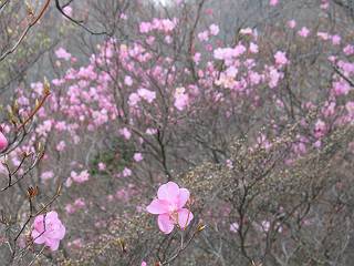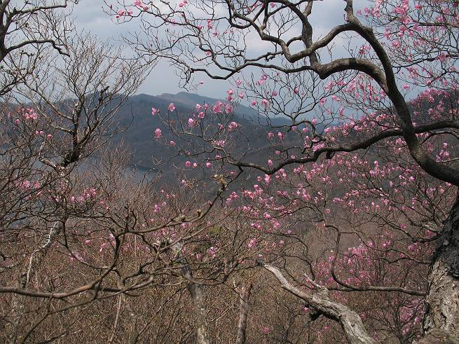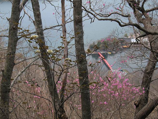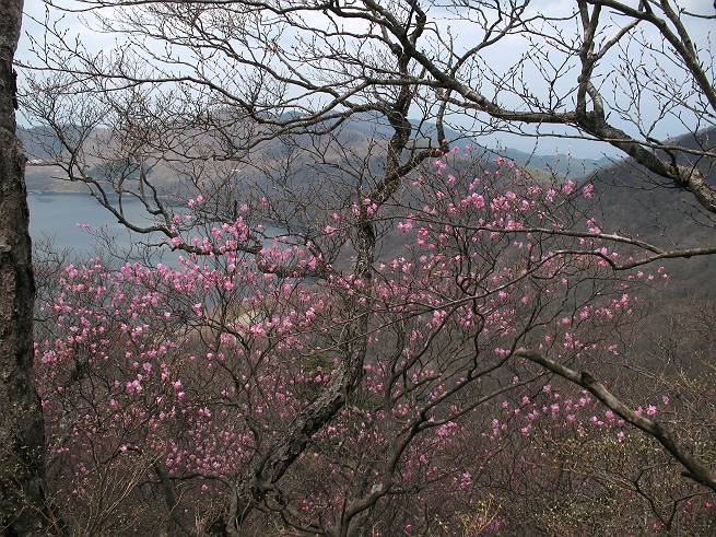 後編は黒檜山と大沼&小鳥島付近を背景にアカヤシオを撮りました 小木をくぐり抜け撮る、撮るN氏 残雪 大沼&小鳥島、オオカメノキとアカヤシオ 新緑とオオカメノキ 赤城広場から見た駒ケ岳西斜面のアカヤシオ、下のピンクはヤマザクラ 総所要時間は、3時間20分、願望をこの目で確かめたアカヤシオ三昧の花見山行であった。 【前編はこちら】