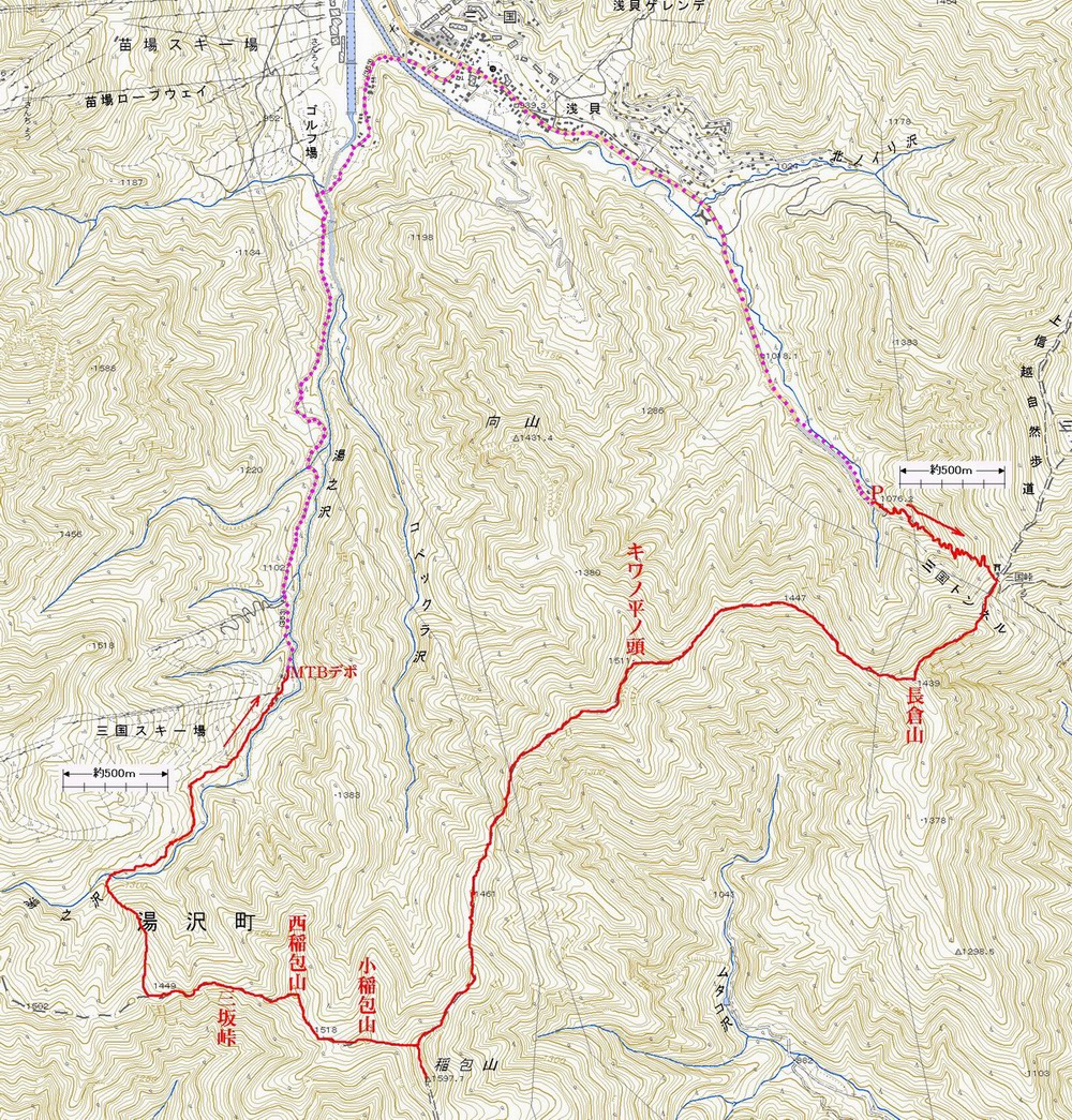 国土地理院1/25000地形図に赤色、桃点線で付記作成