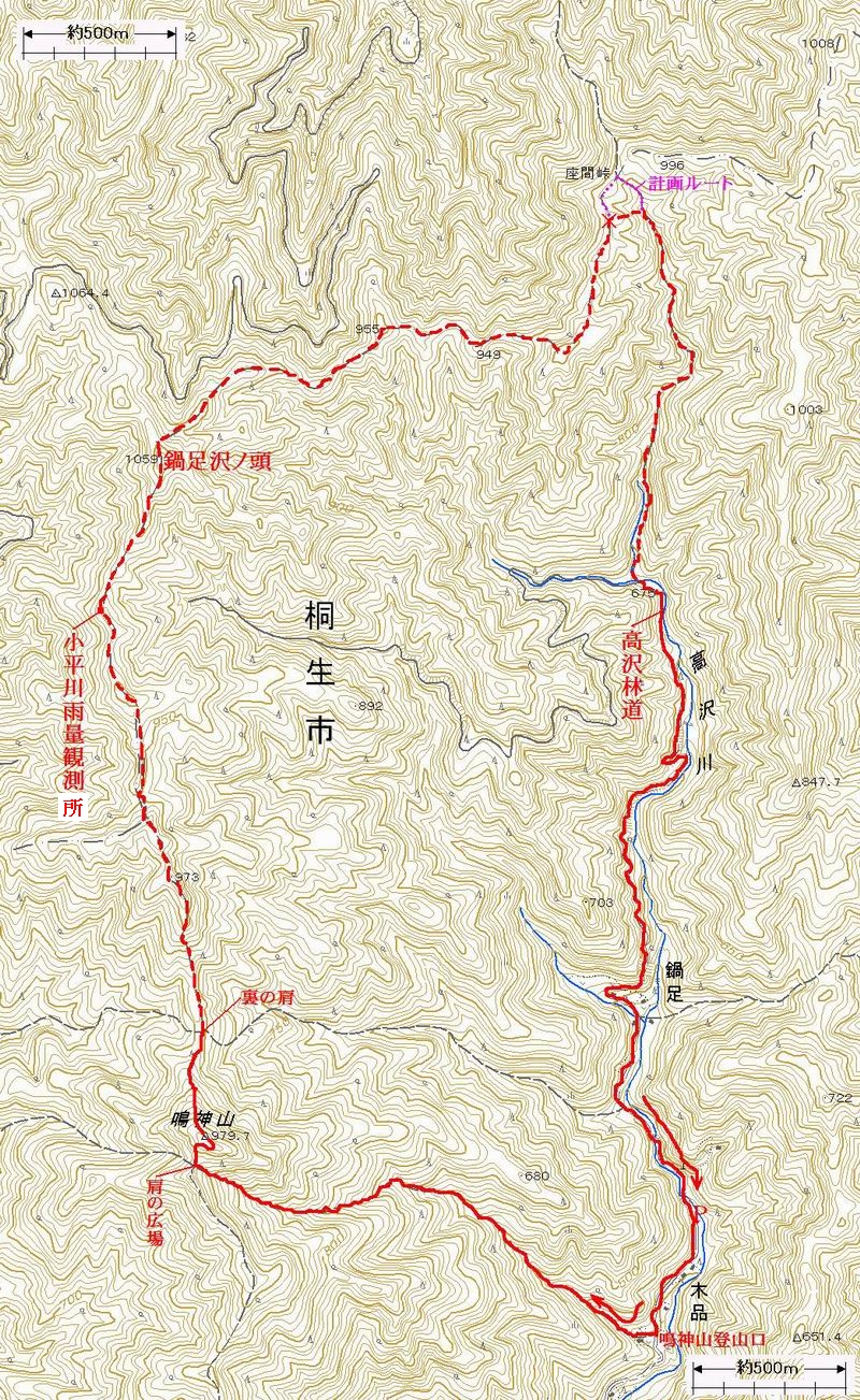 国土地理院1/25000地形図に赤色で付記