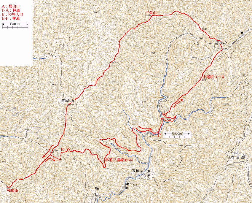国土地理院1/25000地形図に赤色で付記
