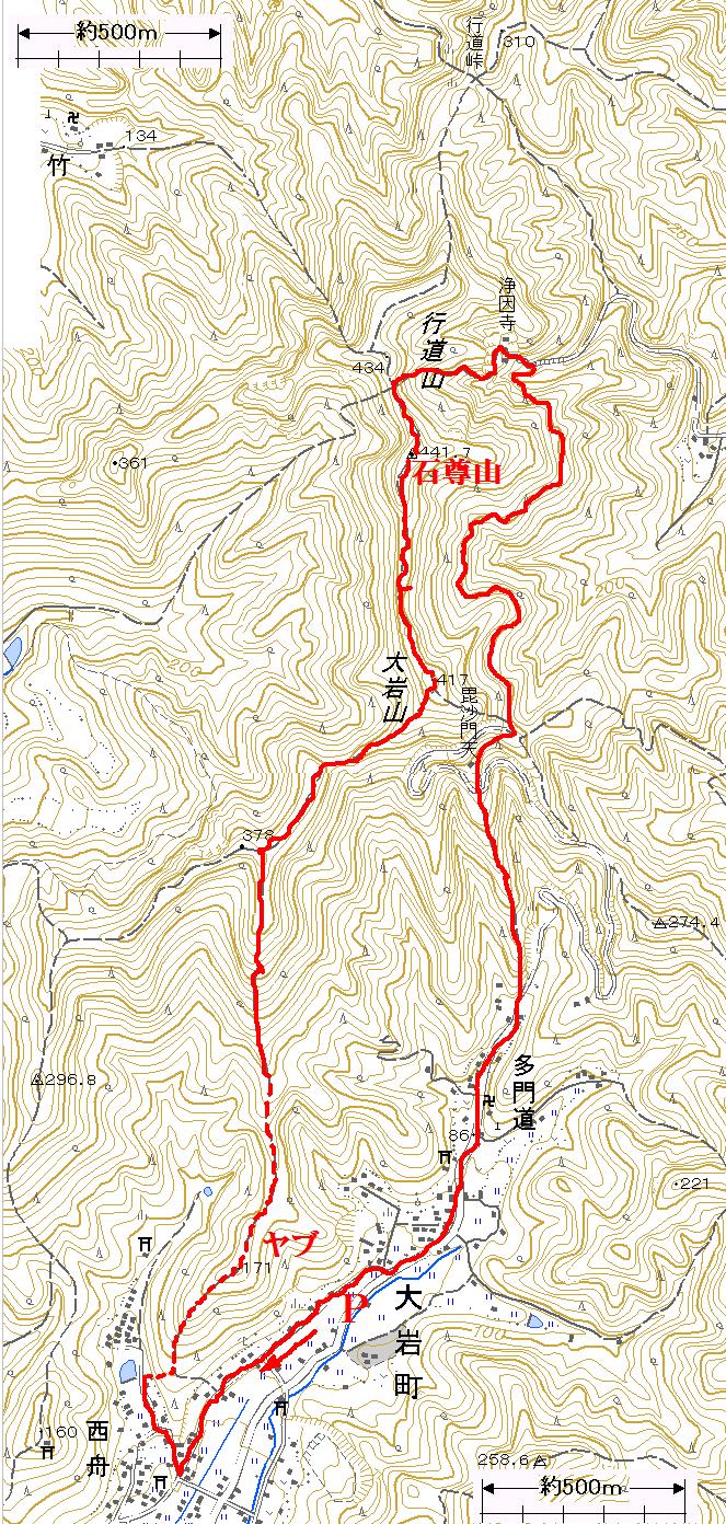 国土地理院1/25000地形図に赤色で付記