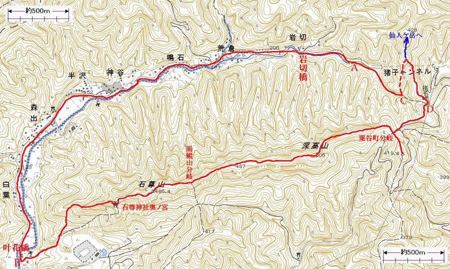 国土地理院1/25000地形図(公開)に赤、青色で付記