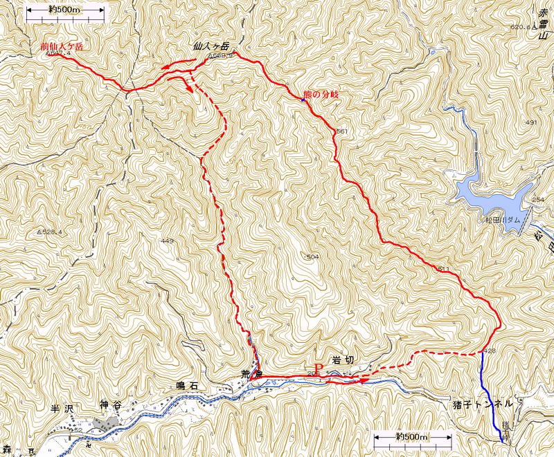国土地理院1/25000地形図(公開)に赤、青色で付記
