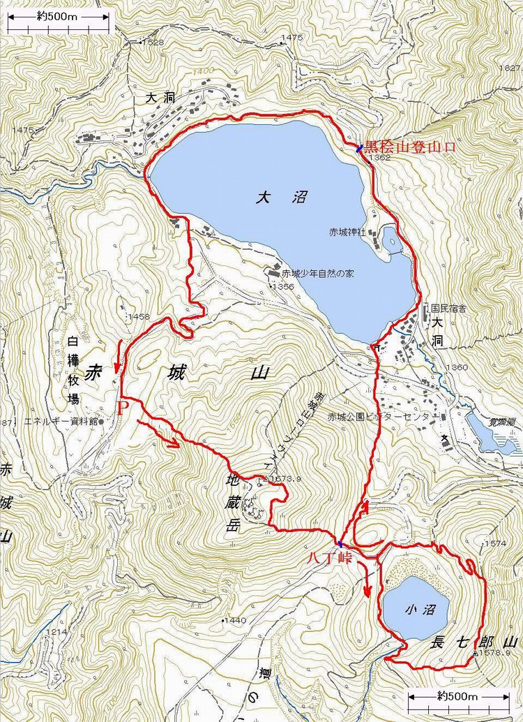 国土地理院1/25000地形図に赤、青色で付記