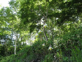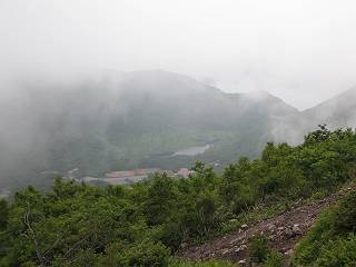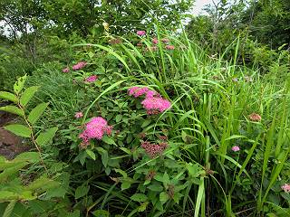 | 山行日 2006年7月23日 曇りのち晴れ 単独 コース 概略図はこちら 地蔵岳登山口(見晴下バス停)→地蔵岳→八丁峠→小沼尻→長七郎山→小沼→八丁峠→赤城大洞バス停→ 黒檜山登山口→大沼尻→地蔵岳登山口 梅雨明けまでにあと一週間とか、曇天予報の赤城山へ向う。牧場を過ぎ、少し下った左右に空きスペースがある、ここが地蔵岳の西の登山口である、山頂まで1.1km、標高差260mの道標あり、7:00出発。登山口一帯が整備中のようである、何が出来るのだろう。笹と白樺の道を牧場の有刺鉄線に沿って歩く、樹林帯を抜けると、低木と草原が広がると山頂の一角である、7:35一等三角点のある山頂、1673.9m着。 朝霧の中に、黒檜山の山頂部がポッカリ顔を出す、もしかしたら好天に。居合わせた男性と花を見ながら散策する。山頂部は、ハクサンフウロ、シモツケ、ヤマブキショウマで花盛り、ニッコウキスゲもポツンポツンと咲いている。昔は群生して真っ黄色に東斜面を染めていたが、鹿の害だろうか、笹に負けてしまったのだろうか、減ってしまった。でも花の品種は豊富だ、しばらくは咲き誇る花を楽しめそうだ、8:00、東方向に下る。 登山口付近は工事中 笹の間を抜けて行く ヤマブキショウマ シモツケ コメツツジ、右は拡大 キンポウゲ ハクサンフウロ ウスユキソウ、右は拡大 ノハナショウブとハクサンフウロ ニッコウキスゲ ヤマオダマキ、茶系とクリーム色系 黒檜山の山頂部が霧の中に 大沼も見え隠れ 覚満淵も霧の中に 山頂部も工事中、ケーブル山頂駅撤去跡付近 立止まっては花を眺め、また歩く、木道を下り八丁峠着8:30、小沼の南を回り長七郎山1578.9m着、8:53。時々、赤城の峰々が雲間より姿を現す、花はまだ少なかった。居合わせた袈裟丸の沢を登り尽くし、“袈裟丸山”を執筆しているというM氏と山の談義、尾根歩きの私には比較にならないが、興味ある話にいつもの山歩きから、そちらの話に熱中、9:15山頂をあとにする。 コアジサイ、小沼湖畔で トンボ、小沼尻で 小地蔵岳を西に回り、鳥居峠への分岐点でM氏と分かれ、再び八丁峠着9:35。地蔵岳を東から北へ巻きながら下り、赤城大洞バス停9:50、緑に包まれた赤城神社跡を抜け弁天宮へ、外輪山の鍬柄山を背景に深山の湖沼を思わせる雰囲気である。夏休みに入り人出を待つ湖畔のボートを横目に、道路へ出て10台ほど車の停まっている黒檜山登山口へ、10:12。ギラギラ照らす真夏の太陽に、カラマツソウ、ヤマアジサイ、ノリウツギ、シシウドなど白い花を撮るが、絞りはオーバーぎみ。シンボルのロープウエイのなくなった地蔵岳は何だか気が抜けたよう。早くもカッターの練習に挑む子供達を遠望、先生の大きな声が大沼狭しと響き渡る、赤城の夏の風物詩、いいもんだ、10:52大沼から分かれる。 赤城神社跡 湖にポツンと浮ぶ弁天宮 客を待つ、貸しボート屋さん 黒檜山、上空は夏の青空へ シシウド 赤城神社と鍬柄山 ヤマアジサイ カラマツソウ ノリウツギ シモツケと地蔵岳 沼尻付近から五輪尾根、黒檜山、駒ヶ岳 クガイソウと蛾?or 蝶? ホタルブクロと白樺の森 ヤマオダマキと白樺の森 白っぽい花のチダケサシ 真夏の日差しに白樺の映える道を歩いて出発点の地蔵岳登山口に、10:52戻って本日の山行を終えた。総所要時間は、3時間52分であった。梅雨明けの予想の難しい今年の天気、山はもう花盛りだろう、なのに・・・・・・。 |