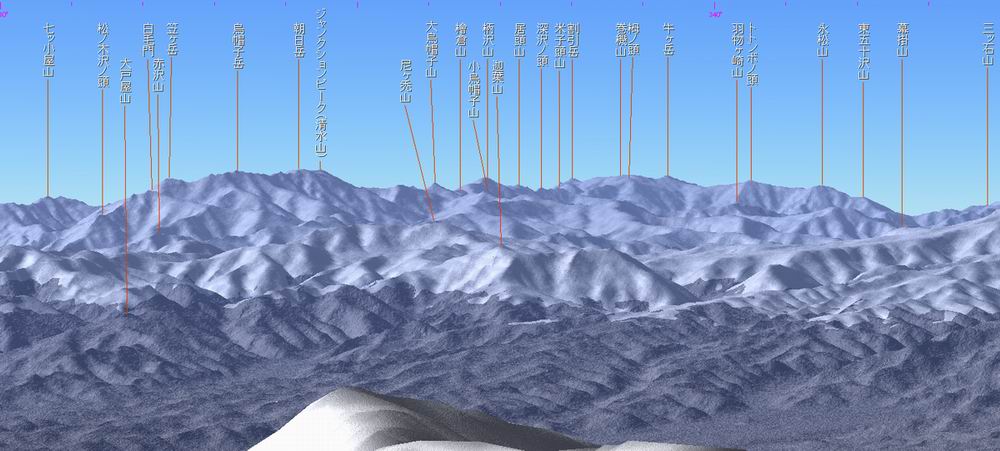 地蔵岳から朝日岳〜巻機山展望図(カシミール3D)