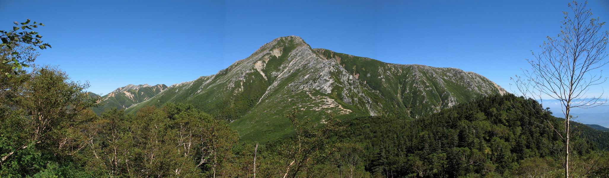 蝶ケ岳との鞍部、樹林帯から常念岳