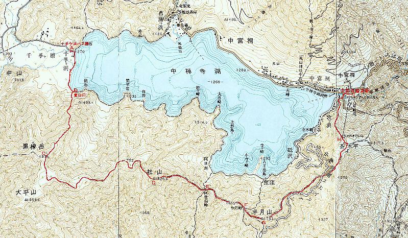国土地理院の1/50000 男体山・日光に赤色で追記したものです。
