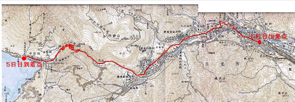 国土地理院1/50000地形図 日光、男体山に赤色で追記した