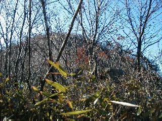 | 山行日 2003年1月31日 晴れ 単独 コース詳細はこちら 須花トンネル入口付近(駐車)→(ヤブコキで尾根)→名草山→鎧地蔵尊跡→須花坂峠→P264→P258→鉄塔 →P258→P264→須花坂峠→須花坂湿原→須花トンネル→八雲稲荷神社→桜沢公園→(ヤブコキで尾根)→浅間山 →岩割桜→名草山→(尾根からヤブコキで)→駐車地点 1月12日に出流川(佐野・足利境)から入り、大小山へ登り、越床峠から鳩峯山へ登り、稜線に沿って大綱林道の峠から須花トンネルより名草中町に下る予定であったが、変更して名草下町の大坂から利保町へ下った。本日は歩かなかった稜線の続きを逆方向から歩くことにする。 7:37須花トンネルの足利側入口付近に駐車し、西斜面の杉森をよじ登って稜線に出て、そのまま名草山に向かった、7:46着。一息入れて、7:51東へ下る。先ほど通った地点を通過し、トンネルの真上となる鎧地蔵尊跡、須花坂峠へ下る7:58。ここから目指す大綱林道の峠の西ピークに立つ鉄塔(電波の反射板)までが本日の目標である。稜線にははっきりした踏み跡はないが、歩いた形跡があり、獣道と区別しにくいが、まるきりヤブコキするよりはましだ。小さいピークを越え標高264m無名峰に着く、8:09。 ![]() 名草山 鎧地蔵尊跡 小さなピークをまた越え鞍部に出る、両サイド結構急斜面なのでルートを見失うことはない。更にアップダウンが続く、3つほど過ぎると人工的に溝が作られたような所を2箇所通過する、そして北斜面が伐採されたピークに着く。下彦間の集落を撮る、ここから下ってV字地形を登ると、そこにはお地蔵さんと船形の観音様が祀られていた、8:33。 ![]() 下彦間の集落 お地蔵さんと船形の観音様 ここから少し登ると、左からの小さい尾根と合流した。正面に大きいピーク、そこから西南に張り出した尾根、前回辿った尾根だろうか、目に入った。平坦な尾根を東方向に進むと、大きなサカキの木があって根元に小さい祠が祀られていた。下りにかかると、稜線は篠のヤブで行く手を遮る。このまま進むと北側の少し下がった所に道らしきものを発見、これを辿る。ほとんど獣道だろうが、ヤブを直進するより楽だ。 次のピークに近づいているが、なかなかはっきりと見えない、でも着実に接近している。丸みががった山頂にある鉄塔がついに目に入った、目的地である、右手の先日下った小尾根もはっきりしてきた。岩場のあるピークに出た、9:07。東の寺久保山、南西に大岩山〜行道山の山並み、浅間山、そして赤城山を眺める。このピークから再び篠竹のヤブだ、鞍部へ出て登り返す、全く視界が利かない、ただ上へ上へと急斜面を篠をかき分けて前進する。20分ほど奮闘が続き、前回迷い込んだ地点に出た。東へさらに30mほど進み、反射板のついた鉄塔に到着した、9:23。 ![]() 浅間山遠望 赤城も見えた ![]() 大岩山〜行道山の山並み 目指す鉄塔のあるピーク 山頂からは、南の檜の間から富士山が見える、あとはヤブと樹木に遮られて視界はきかない。鉄塔は柵があって登れない。一応目的は達したので早々に引き返す。またヤブをこぐ、ここで気づいたのだが、鉄塔のある所は若干東に下がっている感じだ。今、立っている所がこの山頂のようである。山頂部よりヤブをこぎ分け、急降下する。鞍部に出て若干左へ、西方向をルートが曲がる。下る目印は西方向に見える数本の松の木である。そして次は岩場のピークだ、これも写真にした。ここまで来ればあとは枝尾根に気をつければ、須花坂峠まで難しいことはない、10:25須花坂峠着。ここで家路に着くのはちょっと早いので、須花周辺の散策をする。 ![]() 岩のあるピーク、東側より見る 鉄塔のある山頂部、岩の西側より見る 須花坂峠を1、2分田沼方面に下ると、道端に須花坂湿原の案内板がある。わずかに残った雪が見える、杉木立で日陰となった100坪ほどの緩い斜面で、柵の周りを一回りしたが、夏はサワギキョウが咲くとか聞いているが今は何も無い。北西の階段を下って金網で封鎖された古いトンネルが目に入る、これが大正トンネルである。ここから20,30m田沼よりに進むと道路に出て、現在使われているトンネルが目に入る。また道端には往時の馬頭観音など石碑がある。道路を渡ると、3つ目のトンネルの案内板があり、140m先まで遊歩道がついている。このトンネルは明治時代に手掘りされたそうである、内部は崩壊しているらしく通行止めの柵がある。でも向こう側は明るく見えていた、10:42道路を下る。 ![]() 須花坂湿原 大正トンネル ![]() 馬頭観音 現在の昭和トンネル ![]() 田沼側から左より、明治、昭和、大正の順、案内板より 明治トンネル ![]() 左より明治、昭和、大正の順 のどかな飛駒集落 ![]() 八雲稲荷神社 桜沢公園 ![]() 桜沢公園の際にある虚空蔵菩薩 イノシシの糞 八雲稲荷神社を参拝する、そして民家の裏手より桜沢公園に入る、11:05。ここで山を見上げる、どうやらここから南の尾根づたいに行けば名草山へ行けるとみる、地図で確認する。道はないの