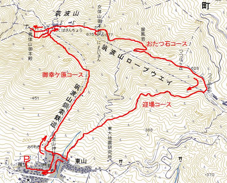 詳細図:国土地理院、1/25000地形図の赤色で付記