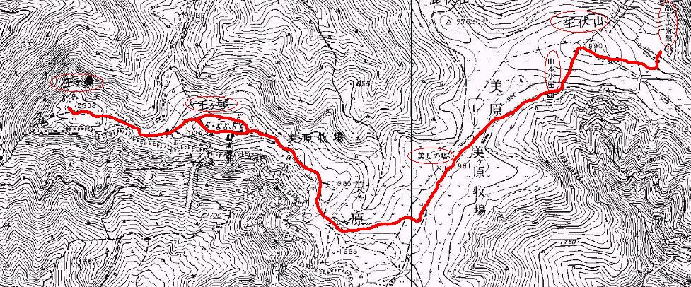 コース:美ヶ原高原美術館→牛伏山→山本小屋→美しの塔→王ケ頭→王ケ鼻(復路は同じコースを戻る)