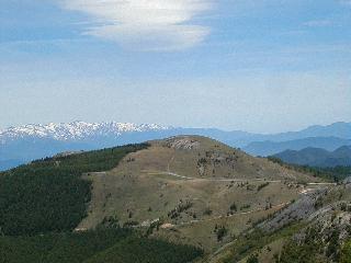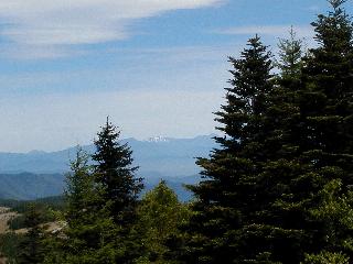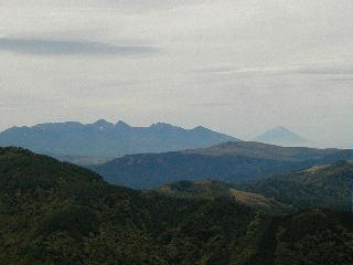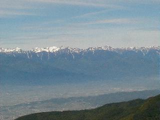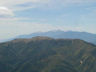 頸城山塊 一番右が妙高山、その左残雪は火打山、