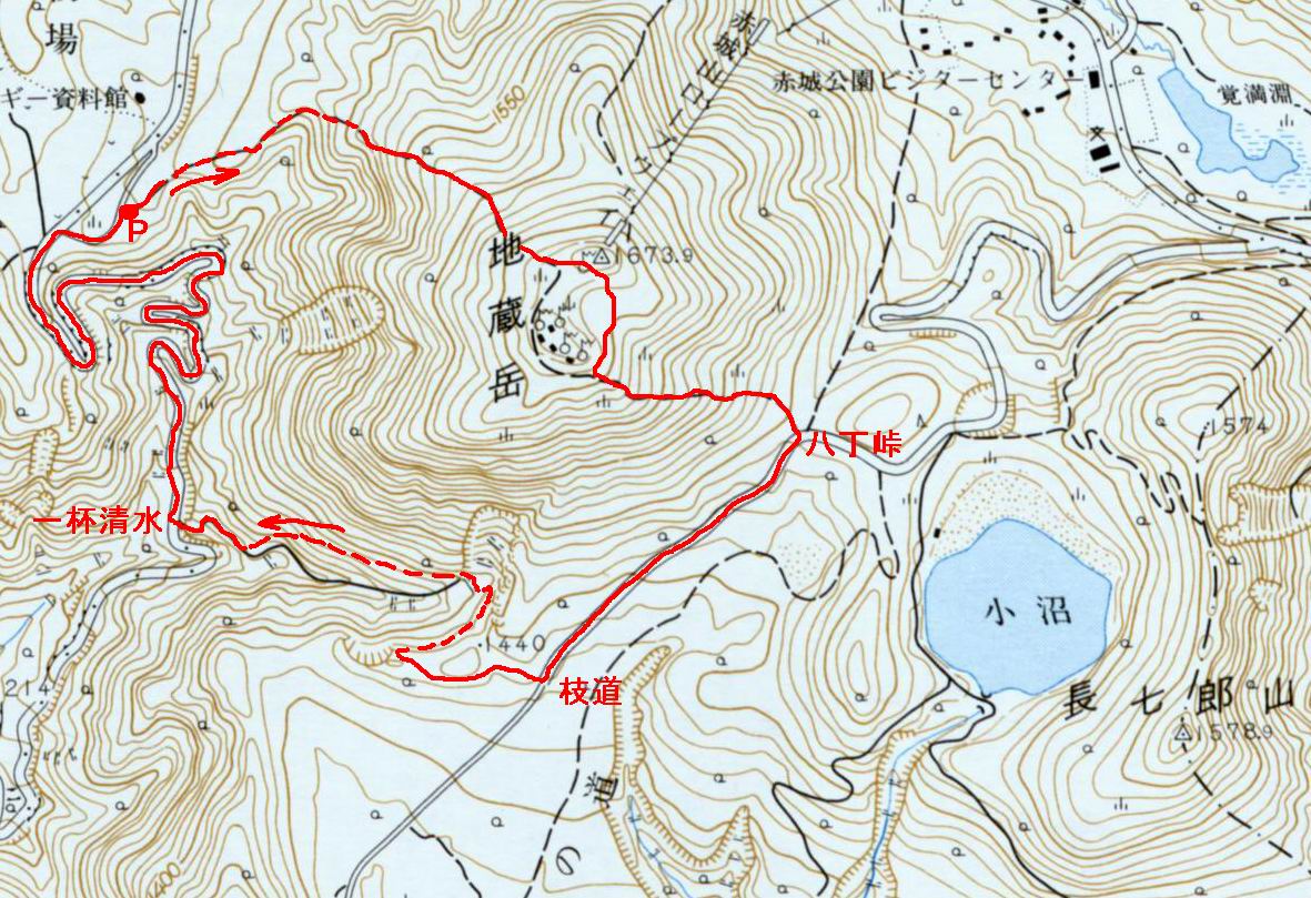国土地理院1/25000地形図 赤城山を使用し赤色で付記