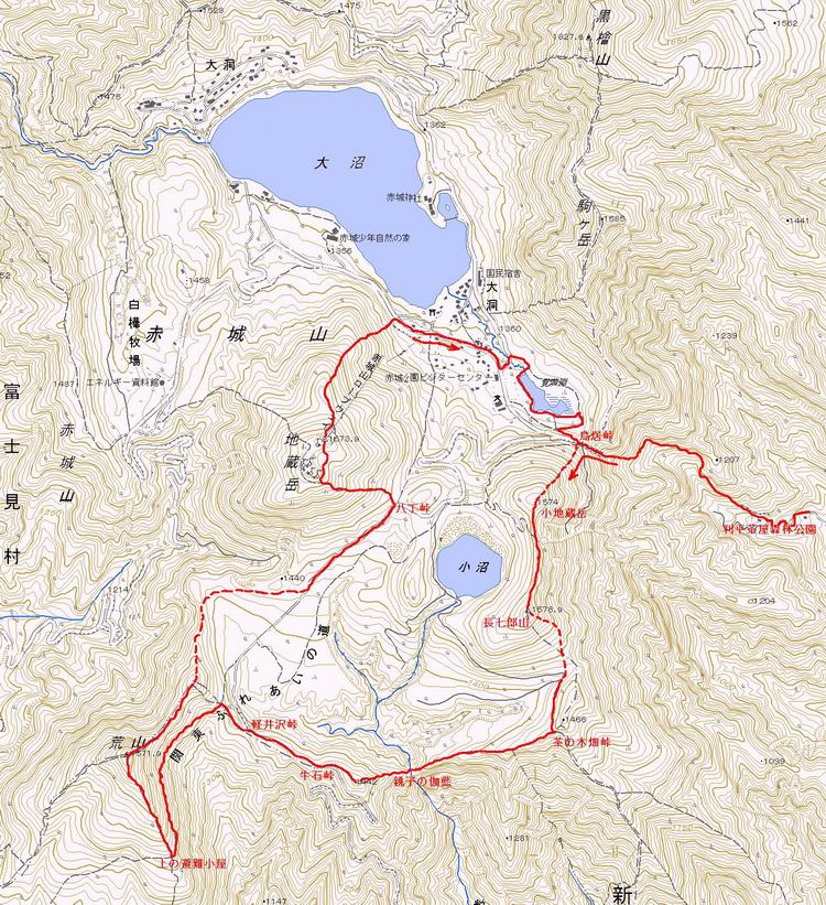国土地理院1/25000地形図(公開)に赤色で付記 破線はヤブコギ