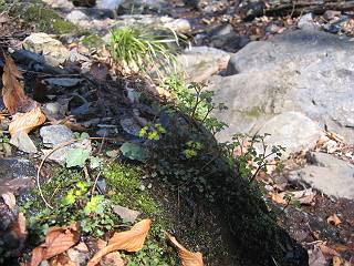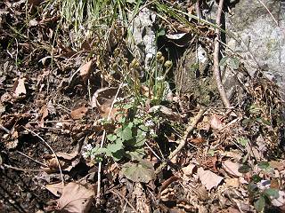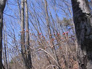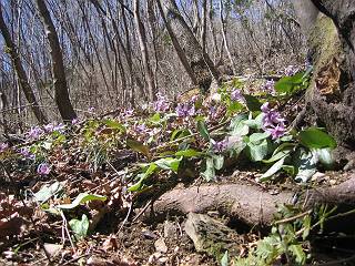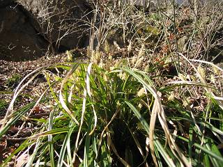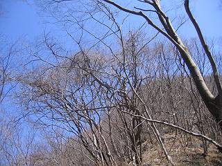 | 山行日 2005年4月1日 晴れ 単独 コース 詳細はこちら 岩切→生満不動→(岩切沢南尾根経由主稜線)→仙人ケ岳→熊ノ分岐→山火事跡鞍部→(岩切沢へ下降)→ 生満不動→岩切 この近辺では、桜の開花もあと3日ほどかかりそうな感じ、仙人ケ岳のヤシオツツジが気になり出かける。岩切の駐車場を8:12出発、ウイークデーのせいか先客はないようだ。狭い林道を最奥まで、岩切沢を渡り山間に入る。ヤブツバキの花は進み、地面を赤く染める、沢沿いのセキショウも緑を増す、周辺からはヤブウグイスの透き通った鳴声、山里も春を迎えたようである。 岩切沢、最初の橋 セキショウ 岩切沢 ユリワサビ ネコノメソウ カンスゲの花 沢筋では、ヤマメがゆったりと泳ぎ、ネコノメソウ、ユリワサビ、カンスゲが咲き、落葉樹の斜面ではカタクリの花が風に揺れていた。ニリンソウ、エンレイソウも葉を伸ばし、開花準備中というところ、8:47生満不動着。ここから5分ほど歩くと、沢が2つに分かれる、登山道は本沢を直進するが、南の尾根を目指して、ここから枝沢に入る。鉱山跡に張られた金網の間を通り、小さい杉森に入ると勾配を増す。ここを抜けると雑木林となる、点々とダンコウバイが咲き、沢を介した北の尾根が姿を現す。尾根直下では、更に勾配を増し、若木に掴まりながら尾根に這い上がる、9:12。尾根筋はツツジ、リョウブ、ナラなど等、まだ芽が硬い。点々と咲くハンノキ、マンサク、ダンコウバイの花が、賑わいを見せる、9:26主稜線の登山道に出る。 ダンコウバイ 尾根直下 尾根から北の尾根 尾根筋 例年だとこの辺で、ヤシオツツジが咲く頃であるが、今年は10日以上先だろう。枝間に、春の待ち遠しい、袈裟丸と日光の山々をみて、ほどなく仙人ケ岳山頂、663mに着く、9:38。時々風速15mもあろうか、強風が吹きぬける、東の斜面で腰をおろし小休止。前仙人側から、タオルを被った男性1人到着、少し離れた所で休憩していた、果物、駄菓子を食して9:50帰路につく。 マンサクの花 仙人ケ岳山頂、桐生方面から1人到着 山頂から赤城山 同じく、袈裟丸山 同じく、日光白根山 同じく男体山と女峰山 熊ノ分岐10:04、主稜線を東へ進む。風を避けて、山火事の跡の鞍部から右手に入り、落ち葉の積もった小さな沢に沿って降下、6,7分で岩切からの沢沿いの登山道に出た、10:25。往路南尾根に入った僅か下だった。生満不動10:30、登山道沿いに咲くカタクリの花を眺めて、11:07岩切に戻る。 ダムを一望、山火事跡 同じく、鞍部より、ここから右手へ 陽だまりに開花近いヤマツツジ 沢に沿って降下 落ち葉が腰まで・・・・ 岩切沢に出た地点 岩切沢 ヤマメ1尾、わかりますかね(真中) 斜面にカタクリの小群落 同、アップ 総所要時間は、2時間55分、芽吹きも遠くはないと思うが、平地の桜が開花しないと、目覚めないようだ。上の写真のカタクリの小群落、よく見ると盗掘の跡々、保護柵が造られる前にやめて頂きたいものだ。 ★気ままな男の山歩きHOME 山行記録(日付順 ) 山行記録(山域別) 走れ!“忠治”★ |
