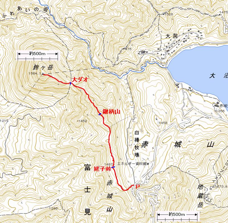 国土地理院1/25000地形図(公開)に赤と青で付記